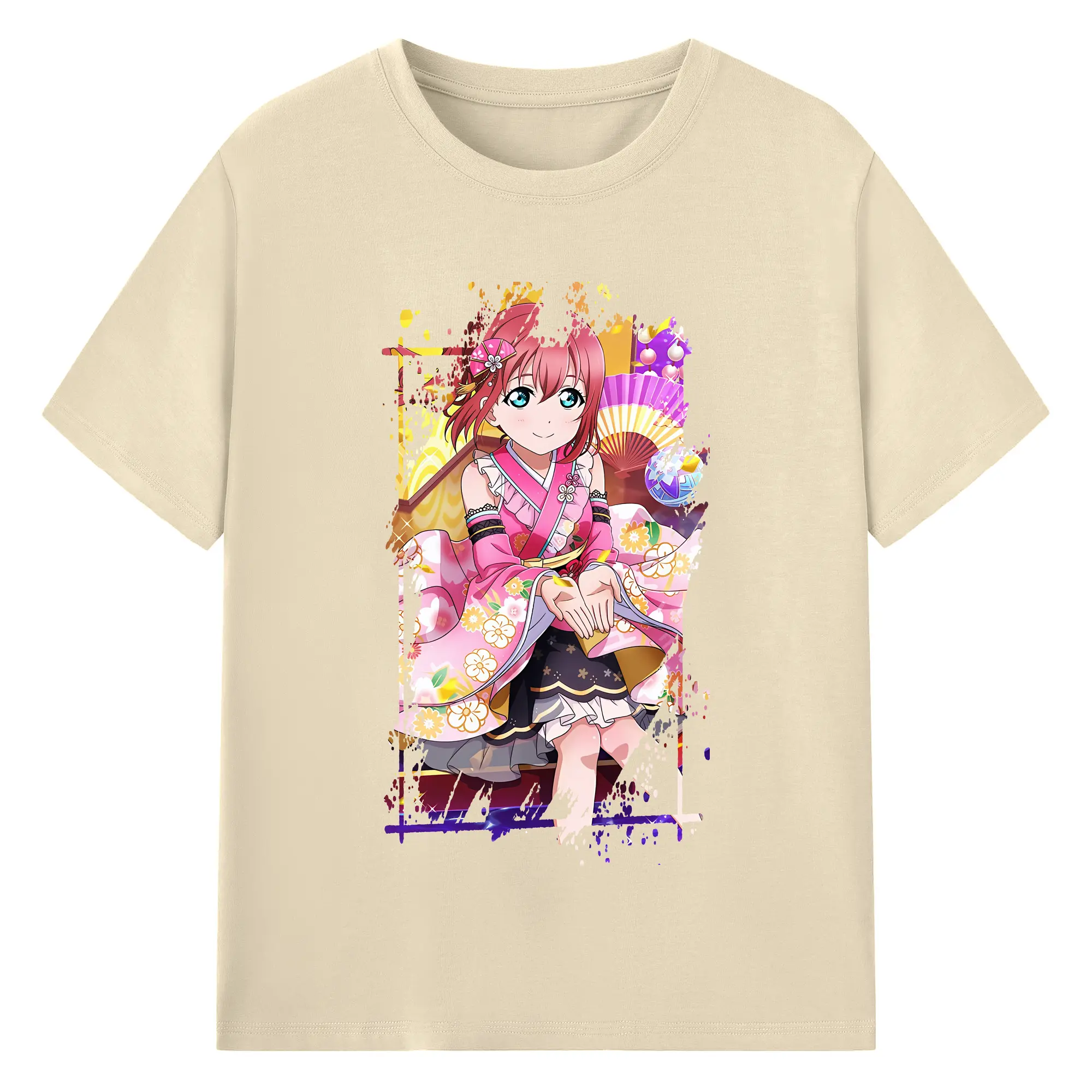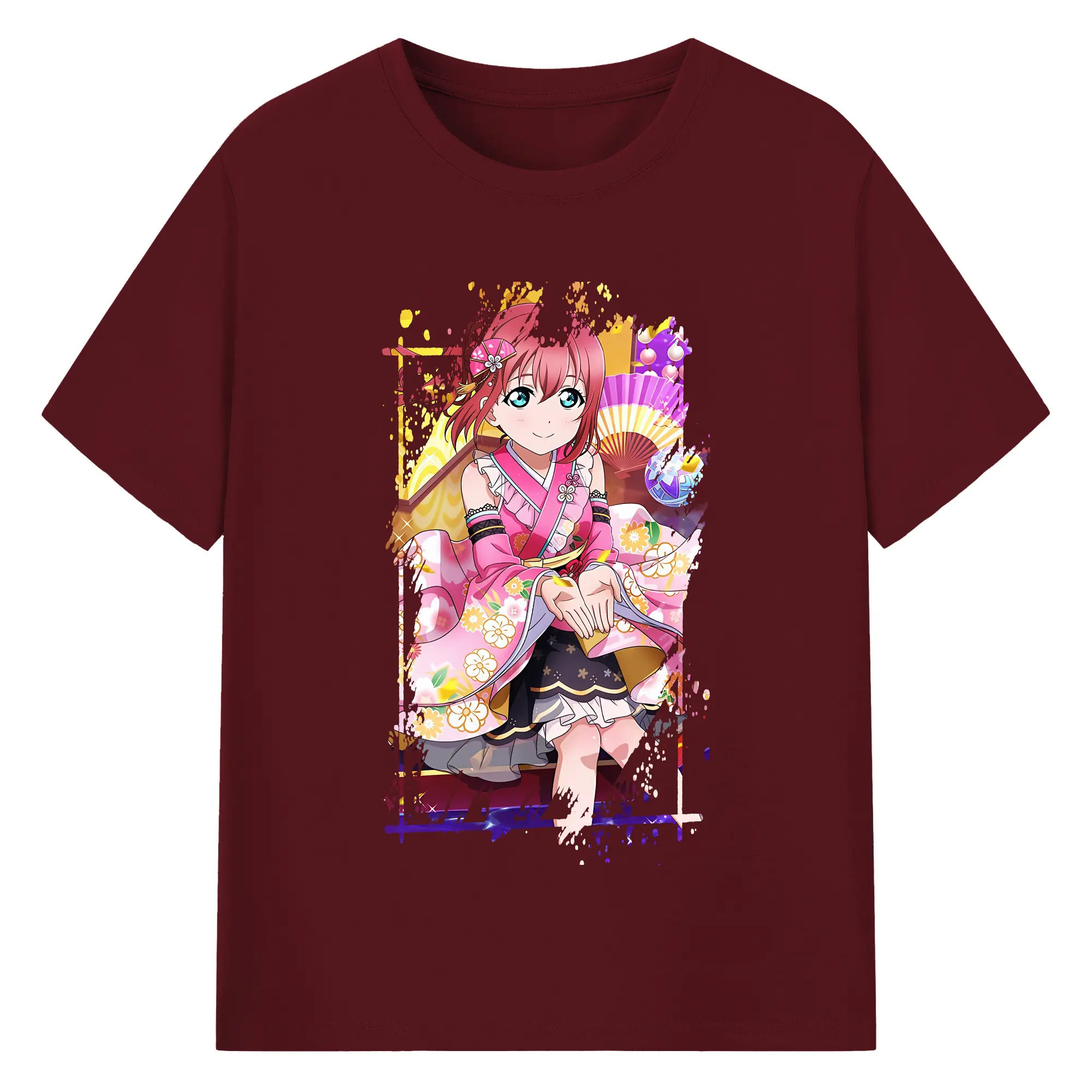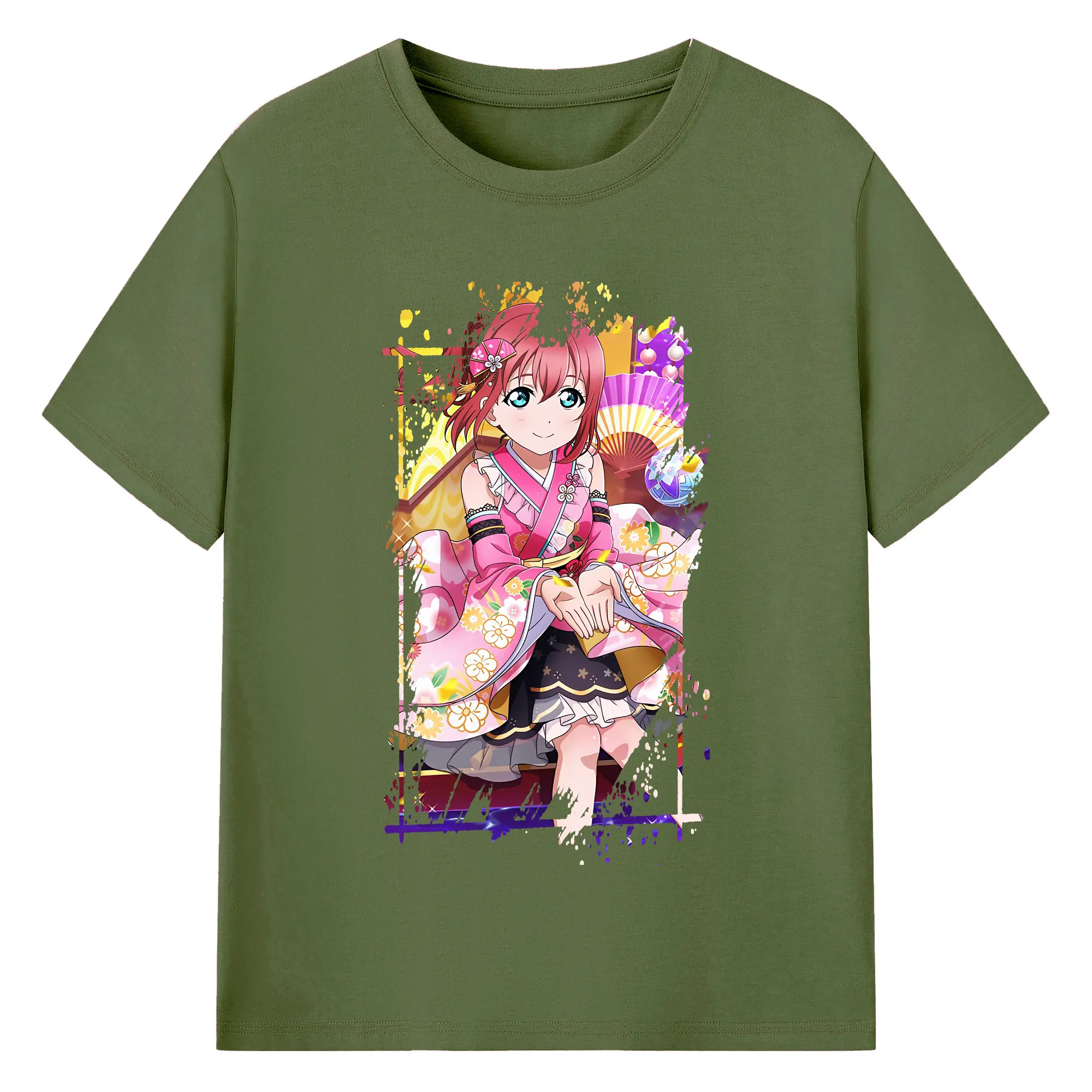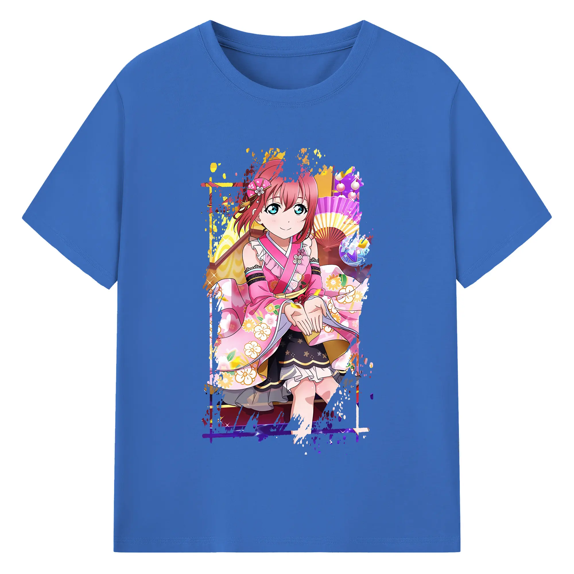 Love Live! グッズ,黒澤ルビィ - 綿100% ヴィンテージ風 半袖Tシャツ ・ フロントプリント ・ 柔らか肌触り ・ 通気性 快適 ・ スポーツ カジュアル 外出用