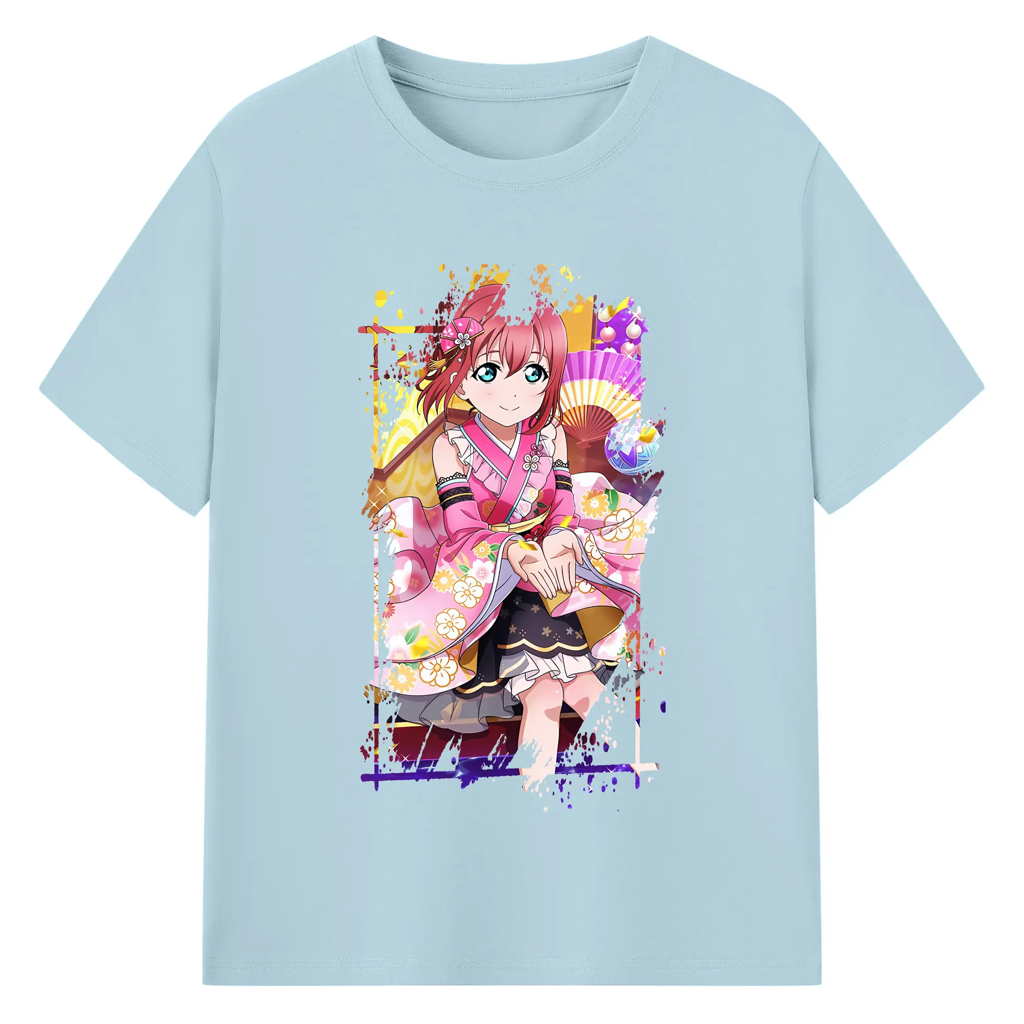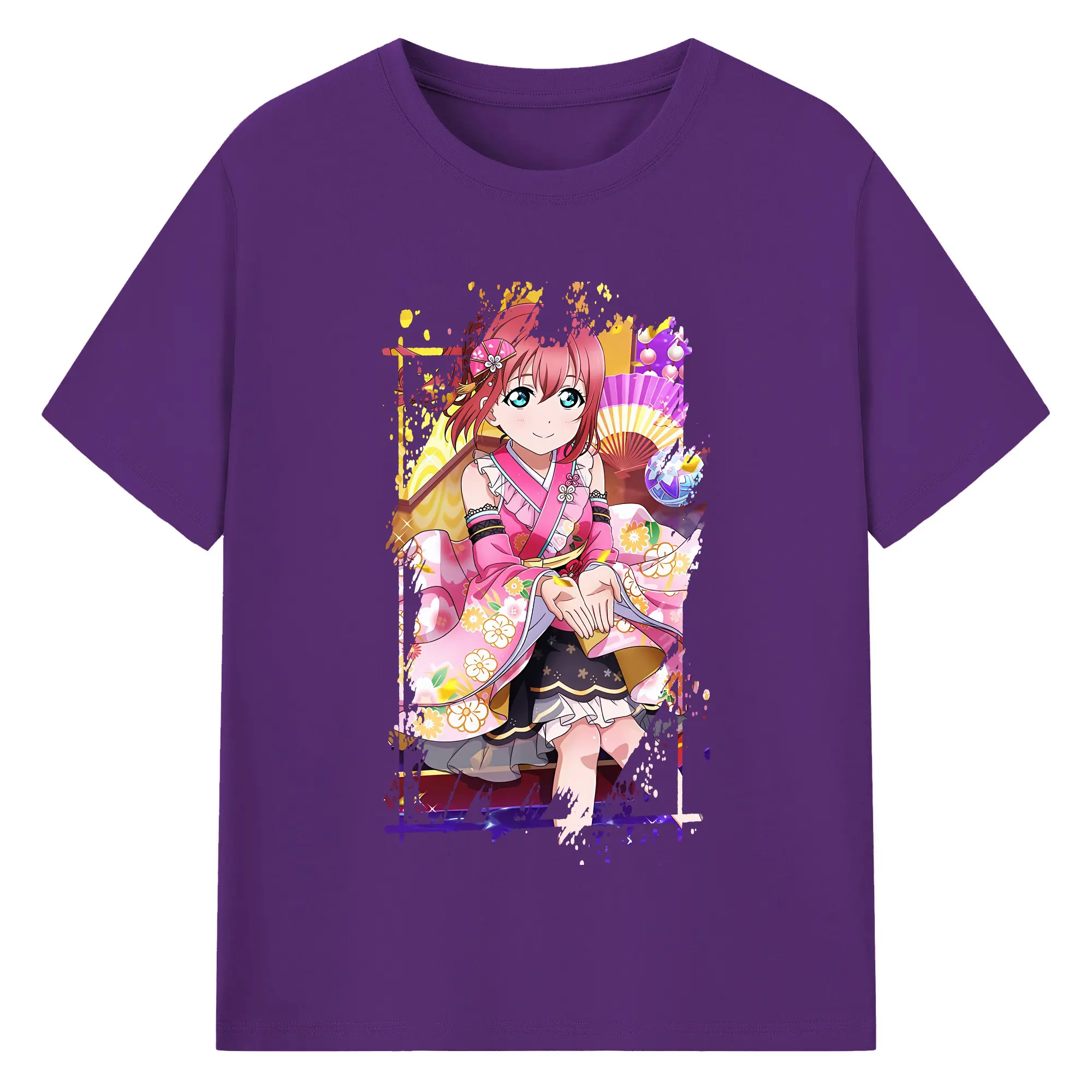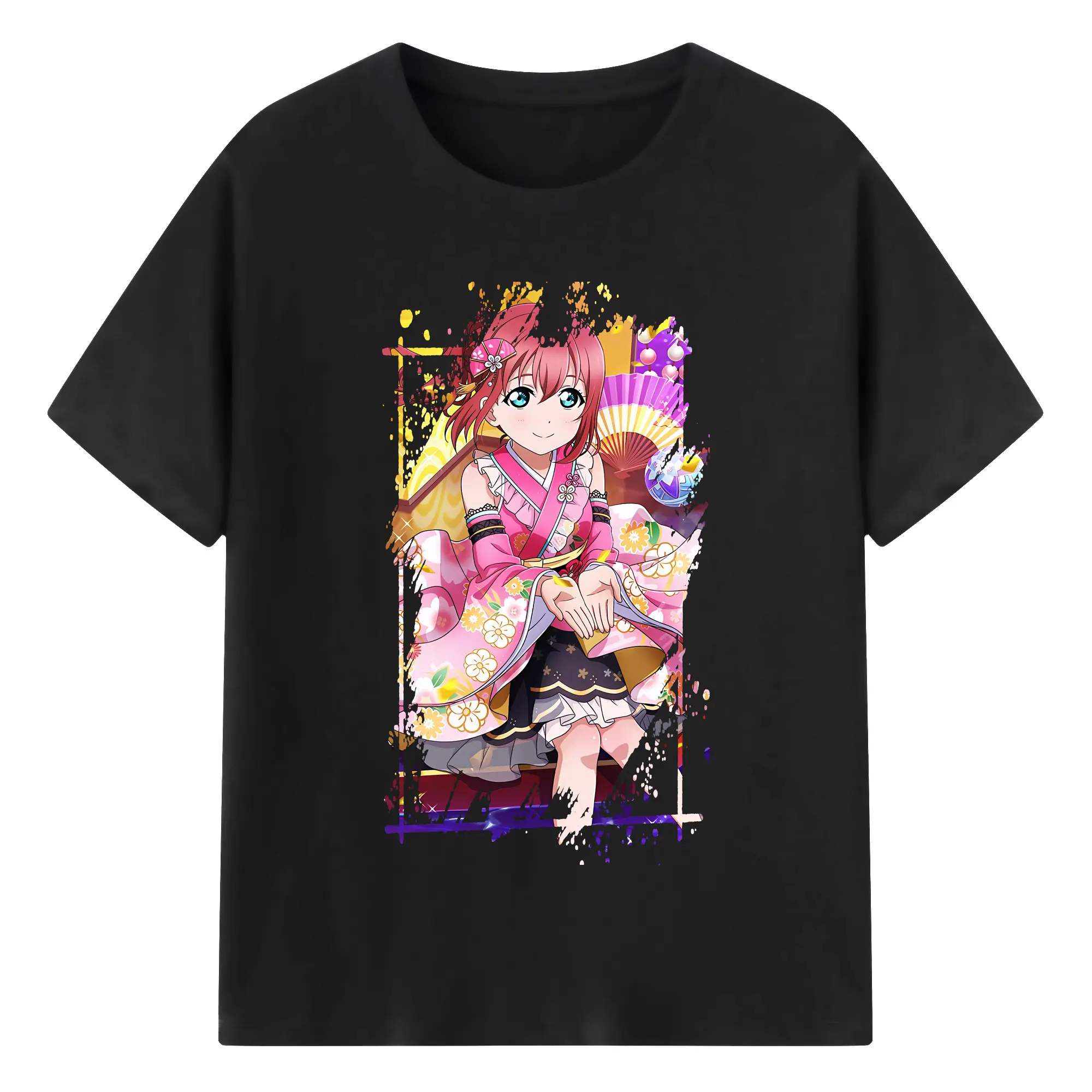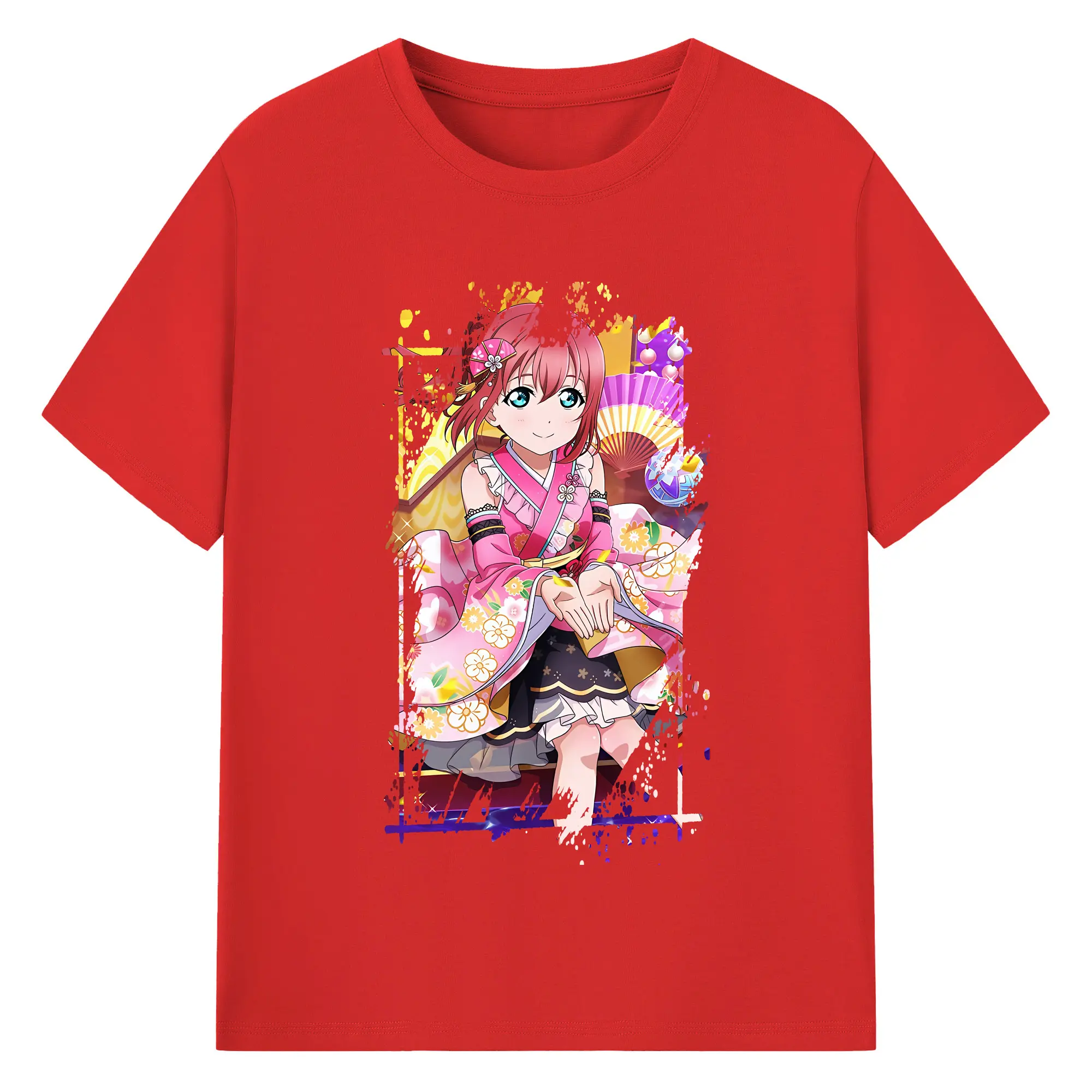 Love Live! グッズ,黒澤ルビィ - 綿100% 半袖Tシャツ ・ バックプリント ・ 快適 通気性 ・ 日常使い 散歩 スポーツ用