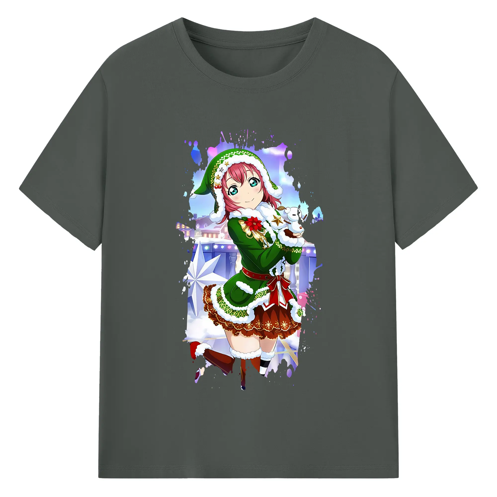 Love Live! グッズ,黒澤ルビィ - 綿100% ヴィンテージ風 半袖Tシャツ ・ フロントプリント ・ 柔らか肌触り ・ 通気性 快適 ・ スポーツ カジュアル 外出用