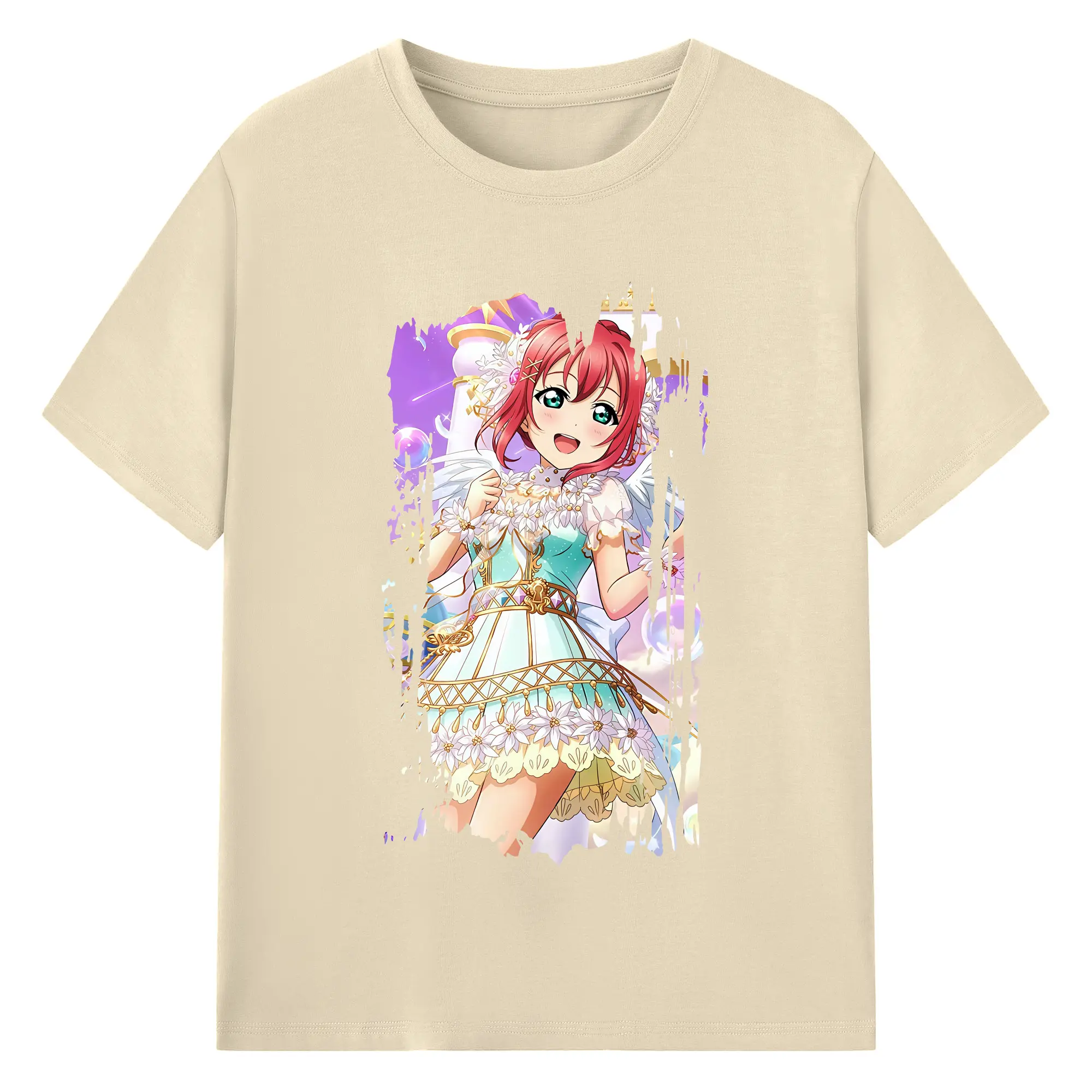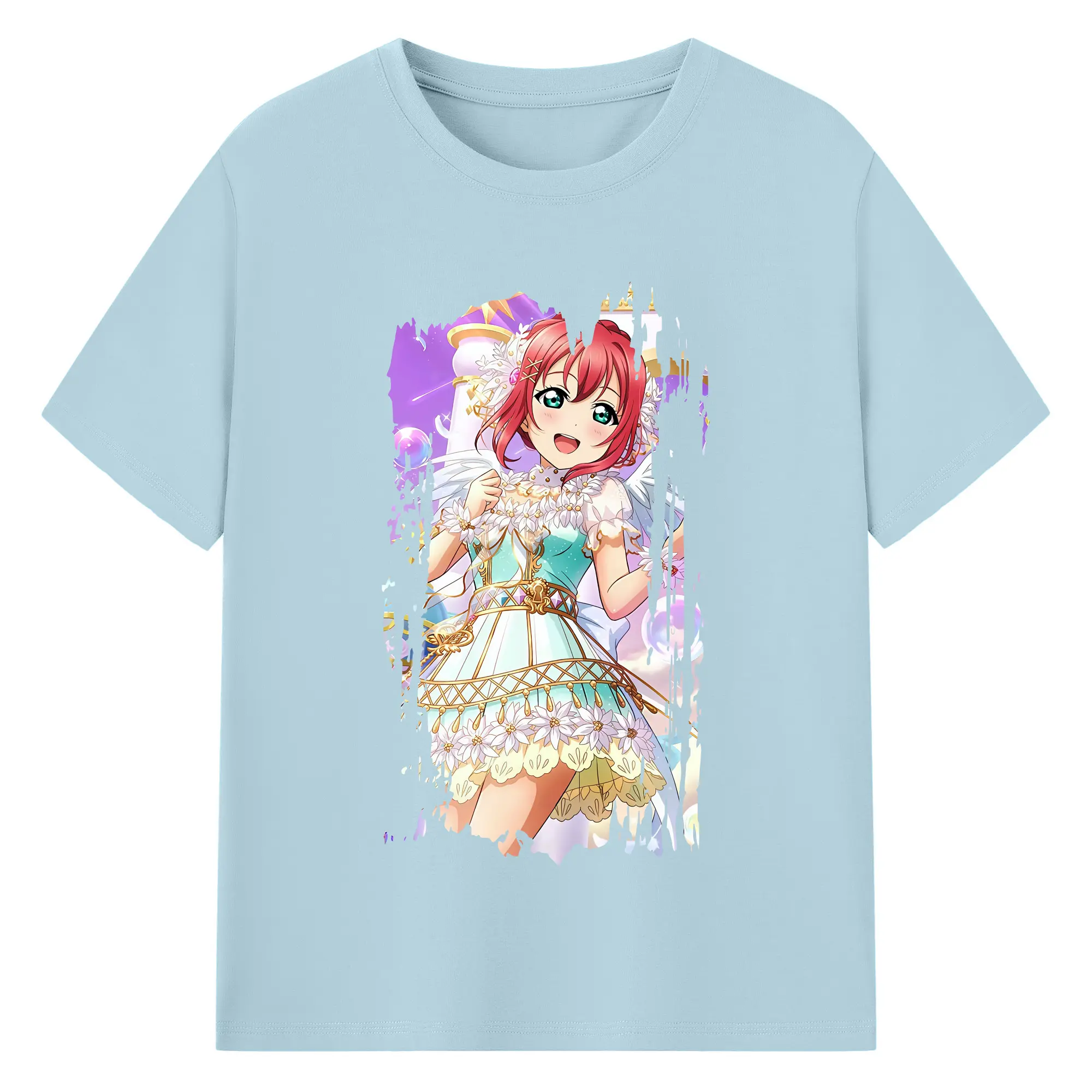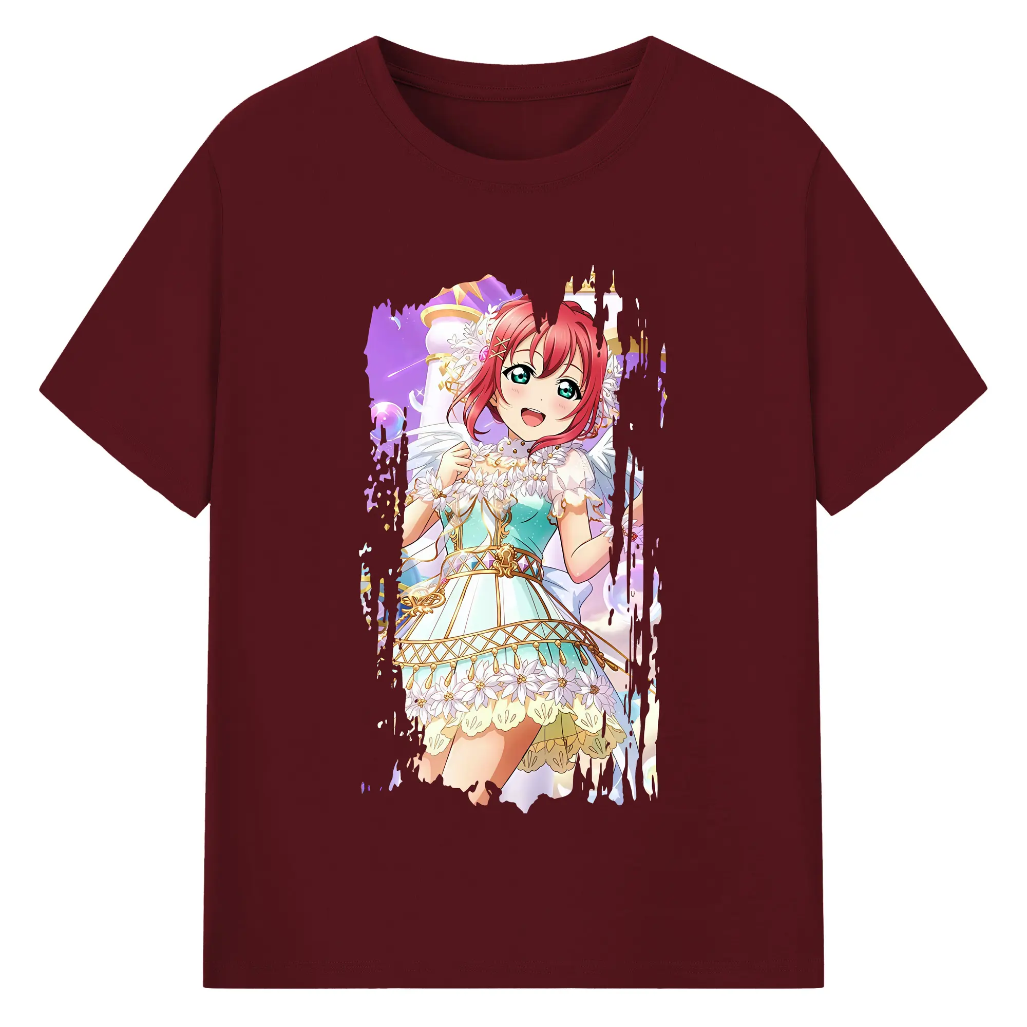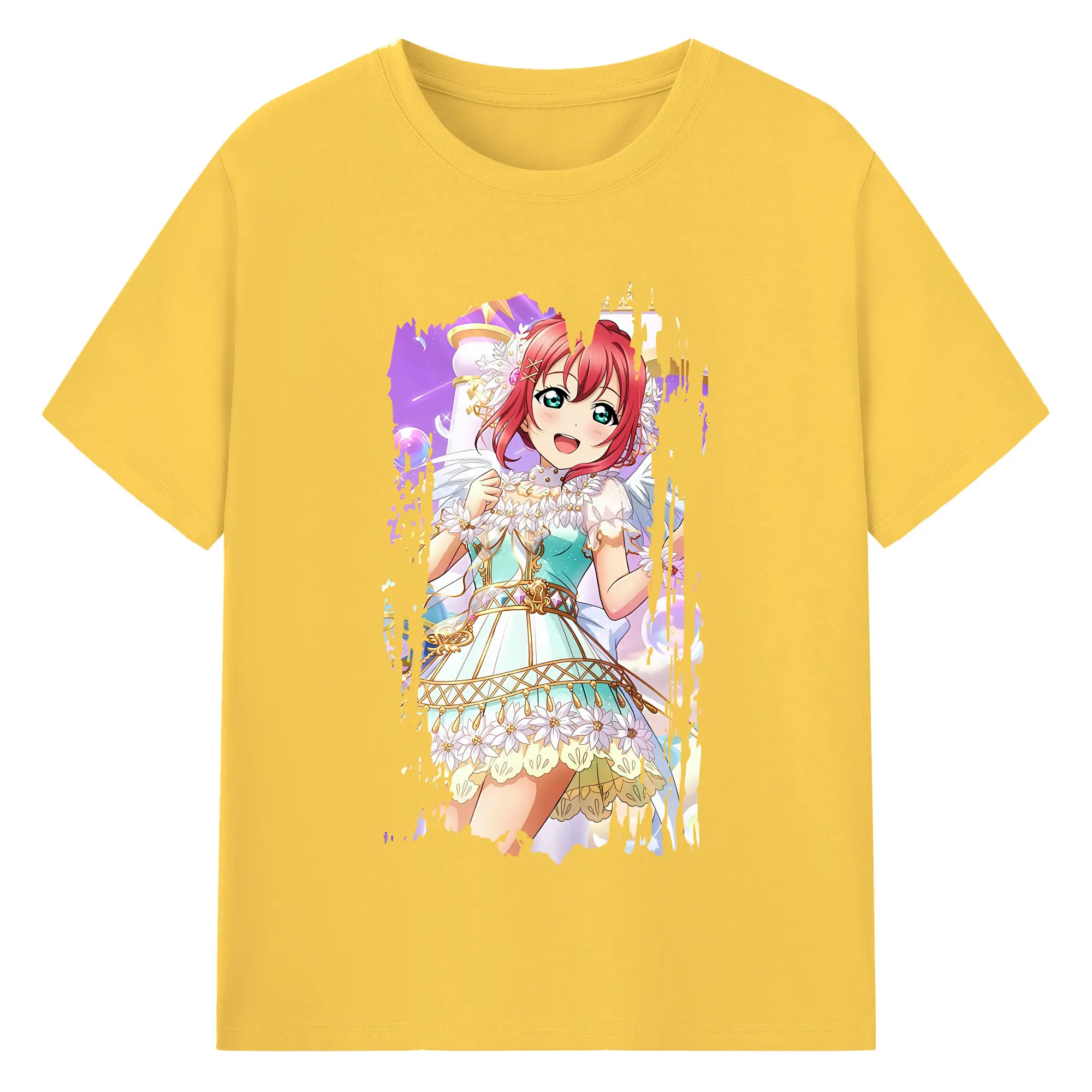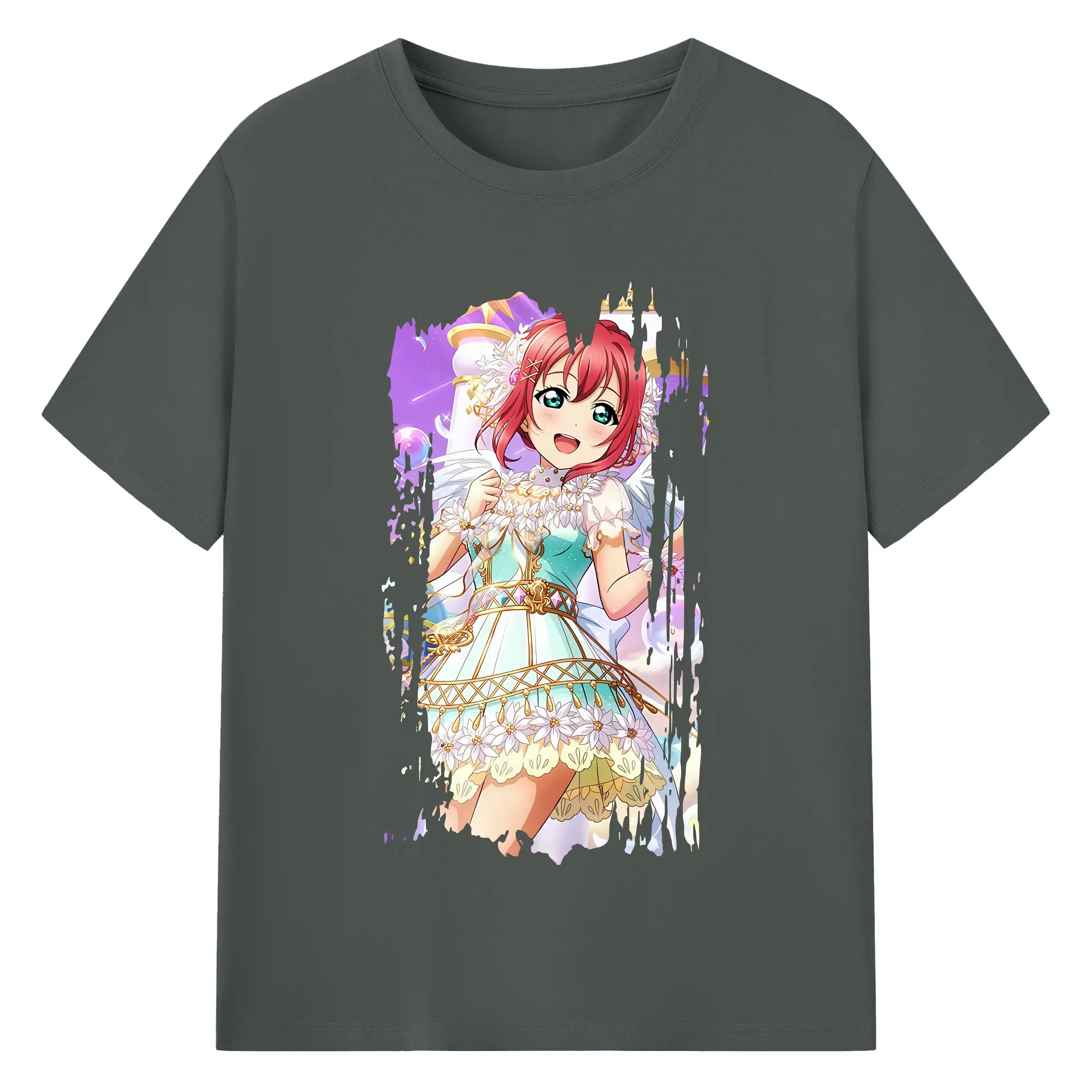 Love Live! グッズ,黒澤ルビィ - 綿100% ヴィンテージ風 半袖Tシャツ ・ フロントプリント ・ 柔らか肌触り ・ 通気性 快適 ・ スポーツ カジュアル 外出用