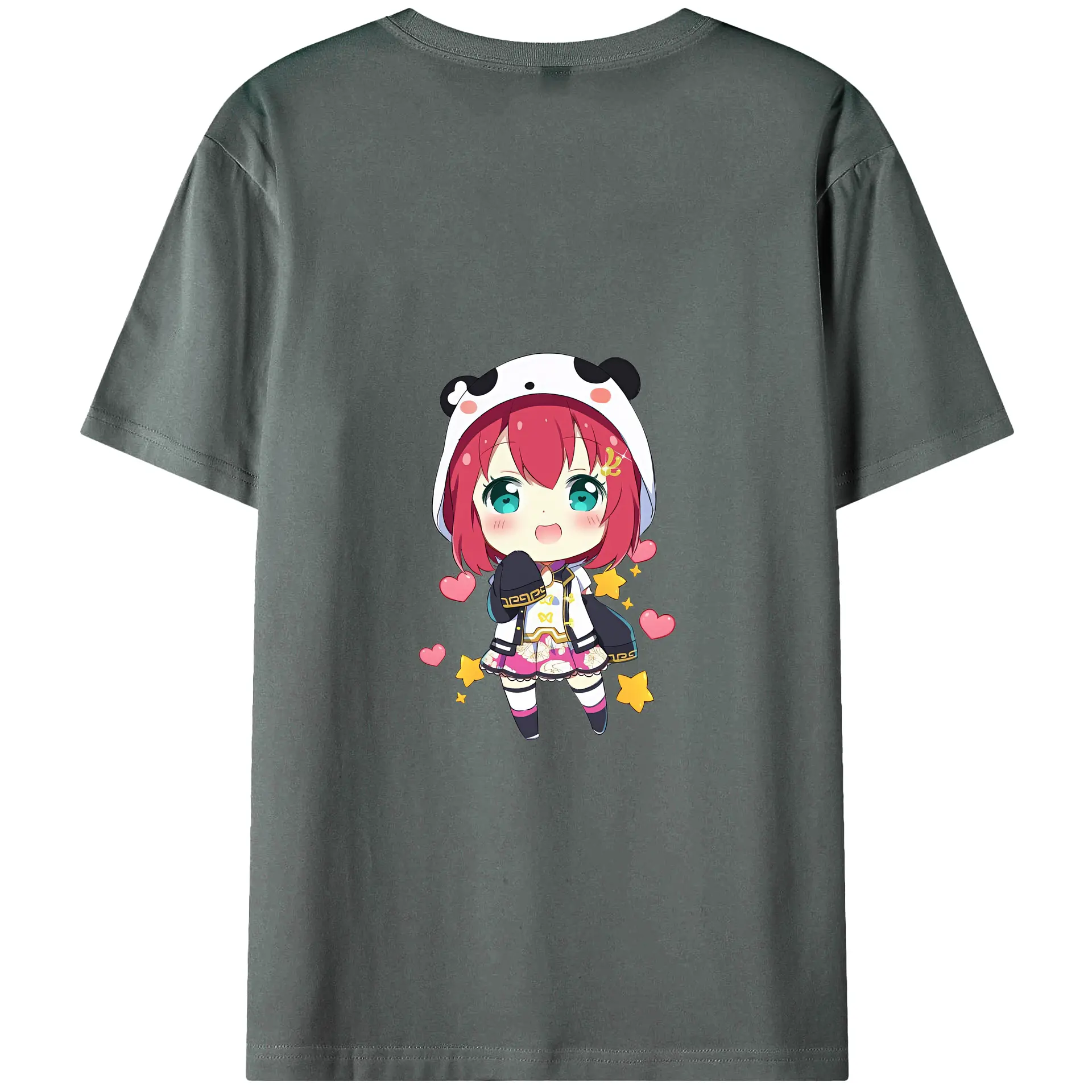 Love Live! グッズ,黒澤ルビィ - 綿100% ヴィンテージ風 半袖Tシャツ ・ 背面プリント ・ 柔らか肌触り ・ 通気性 快適 ・ スポーツ カジュアル 外出用