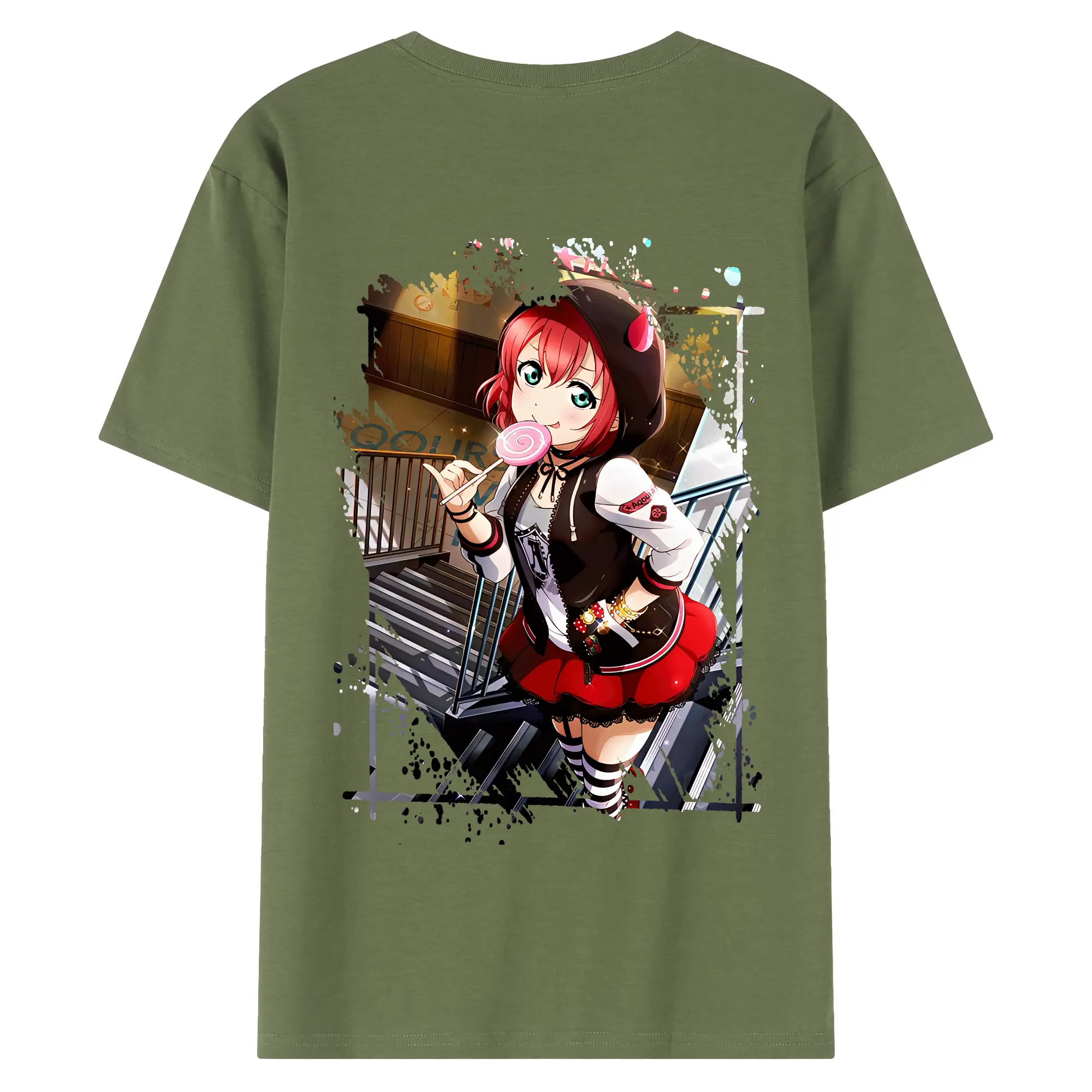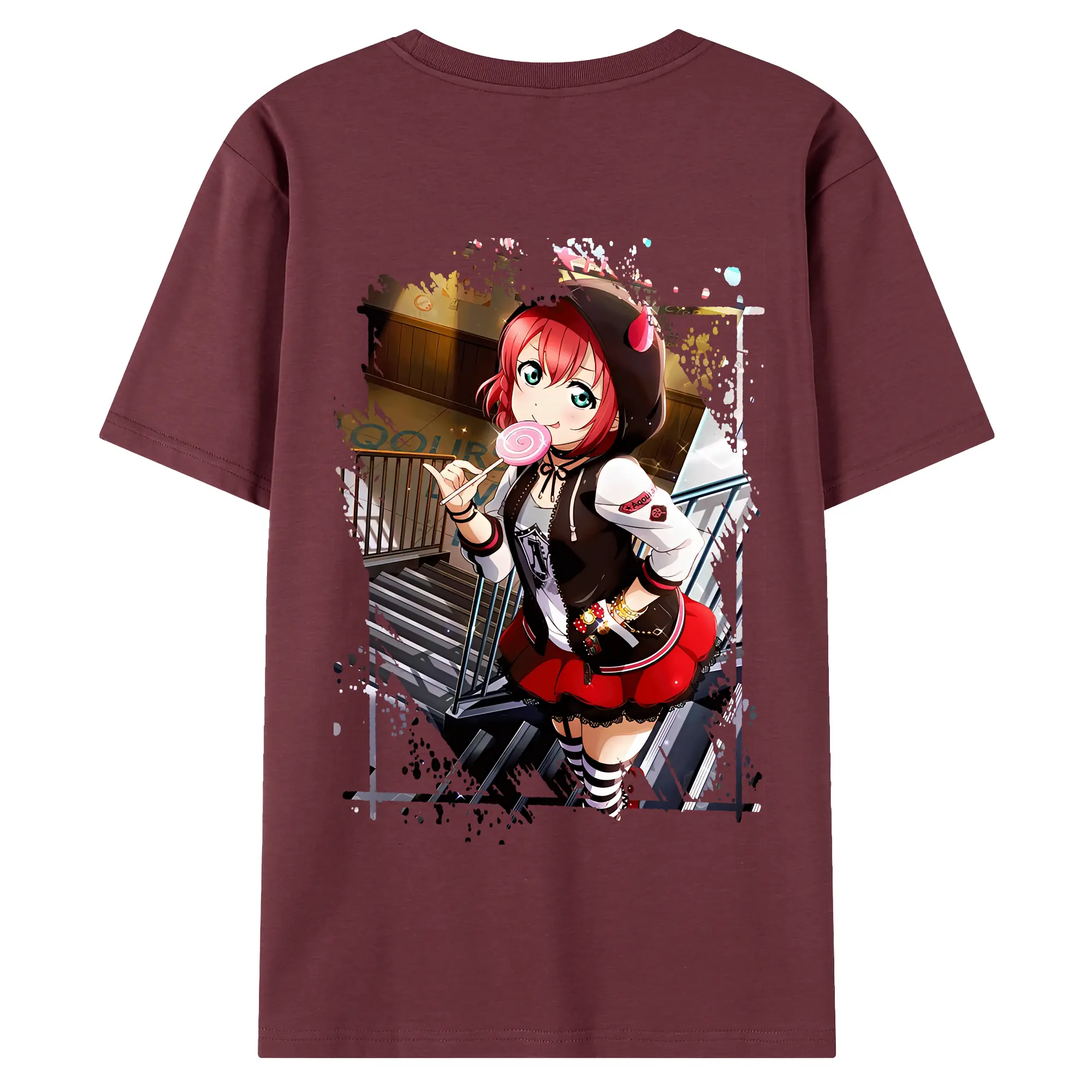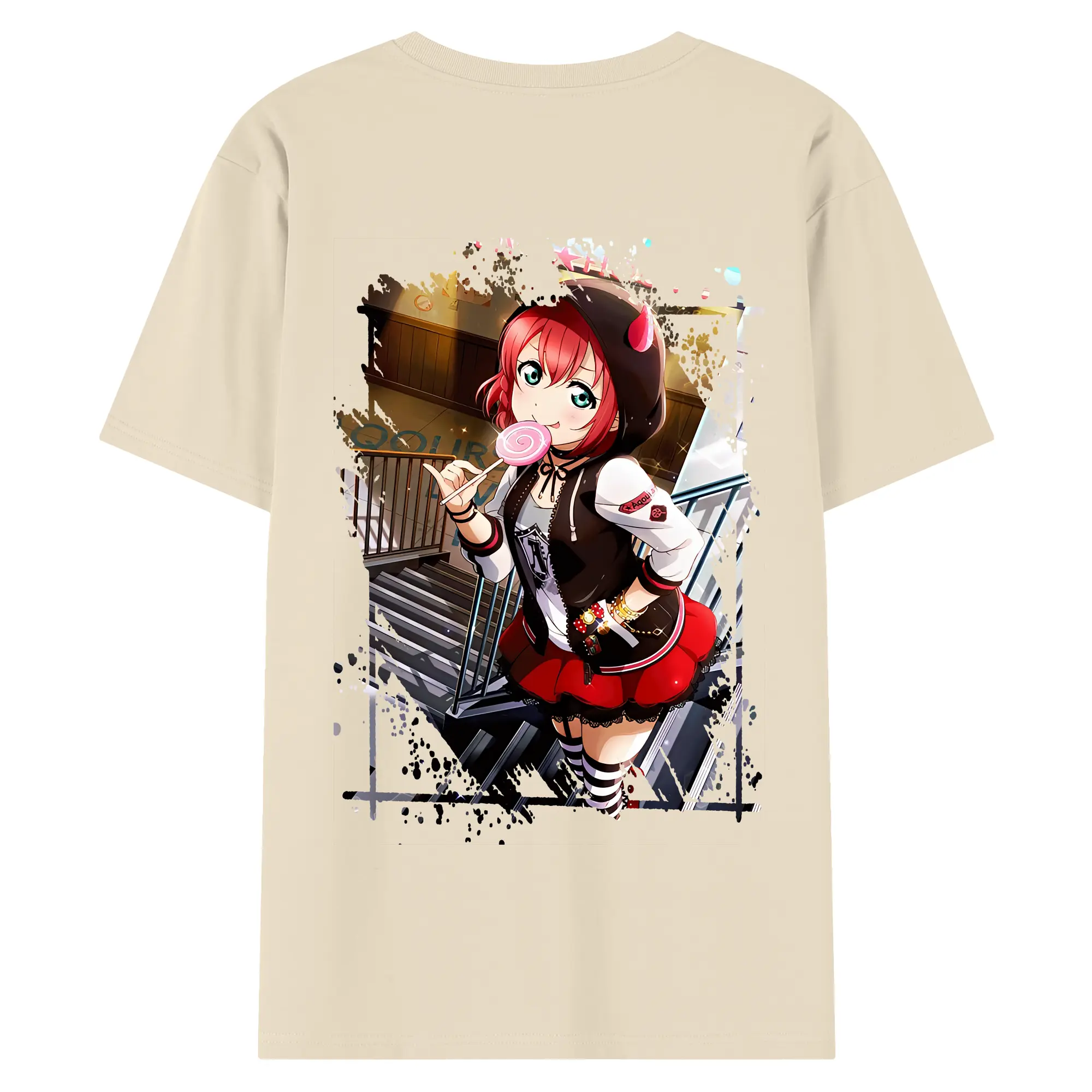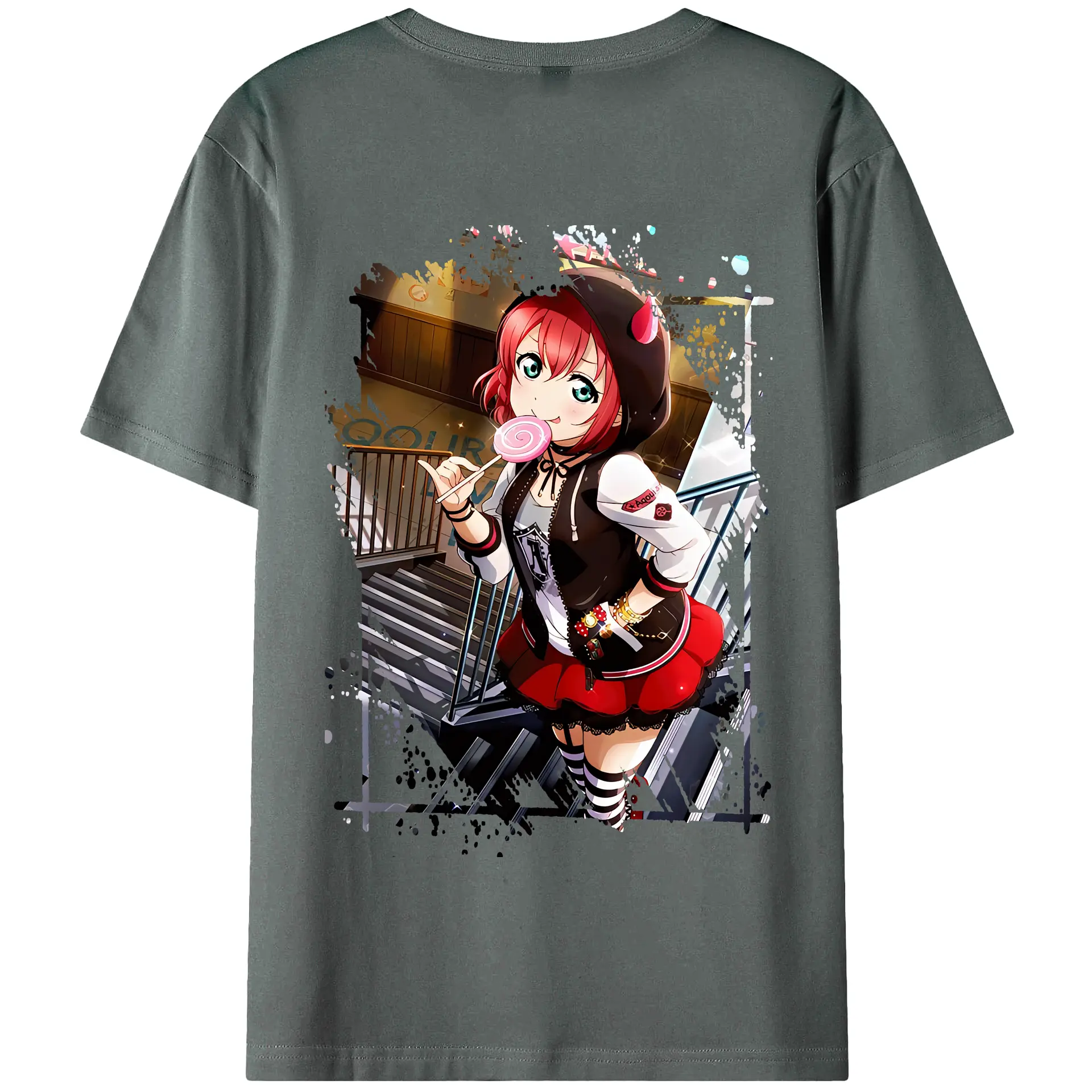 Love Live! グッズ,黒澤ルビィ - 綿100% ヴィンテージ風 半袖Tシャツ ・ フロントプリント ・ 柔らか肌触り ・ 通気性 快適 ・ スポーツ カジュアル 外出用