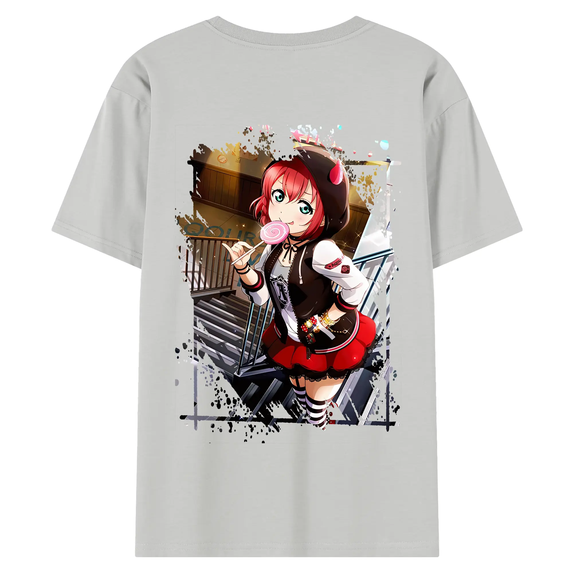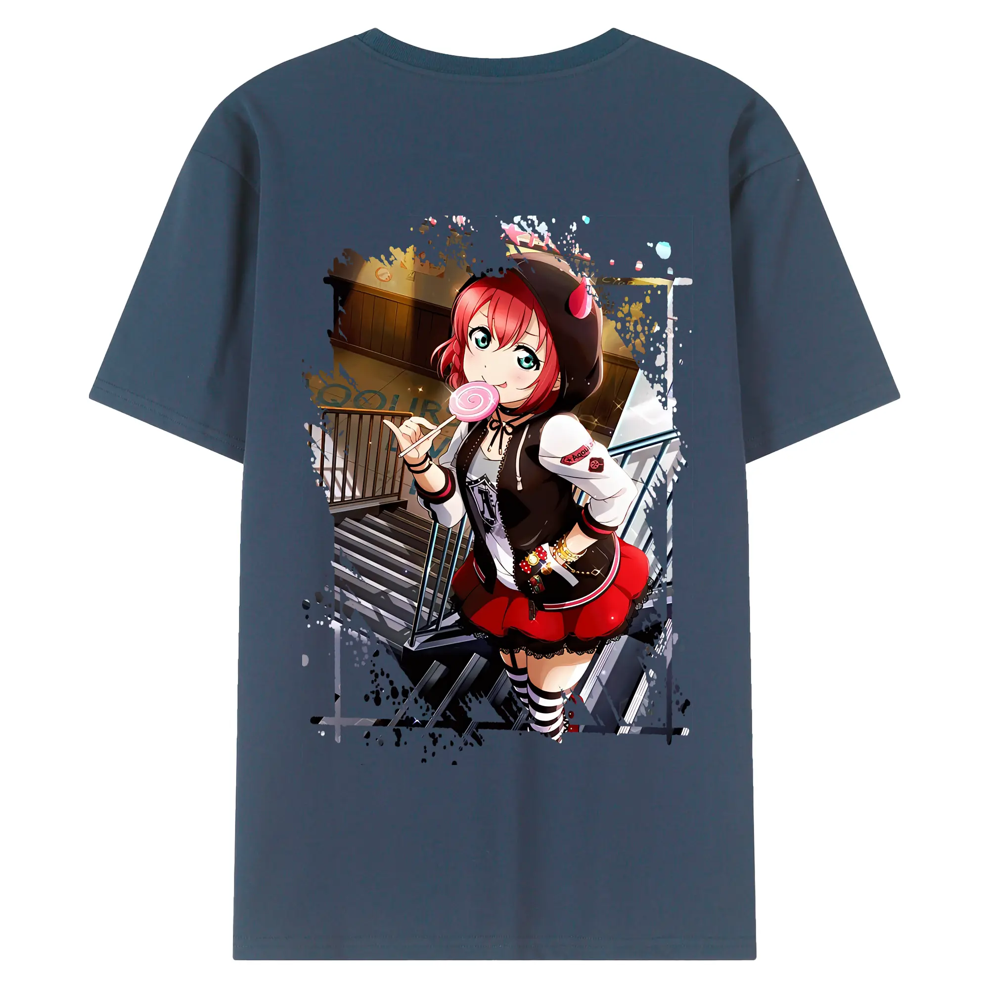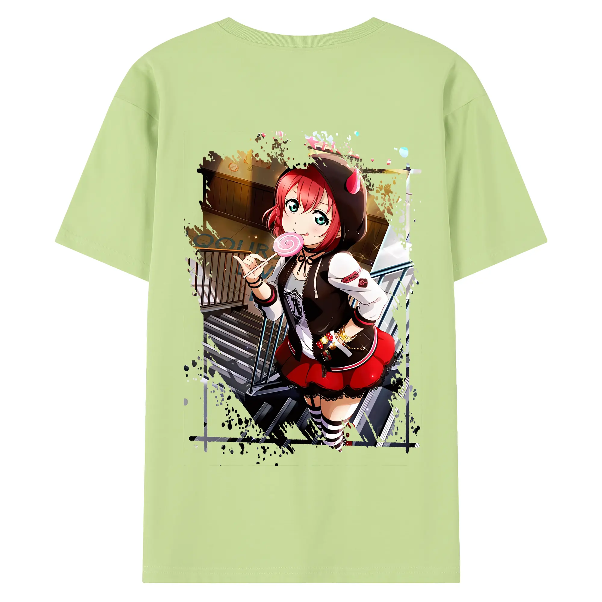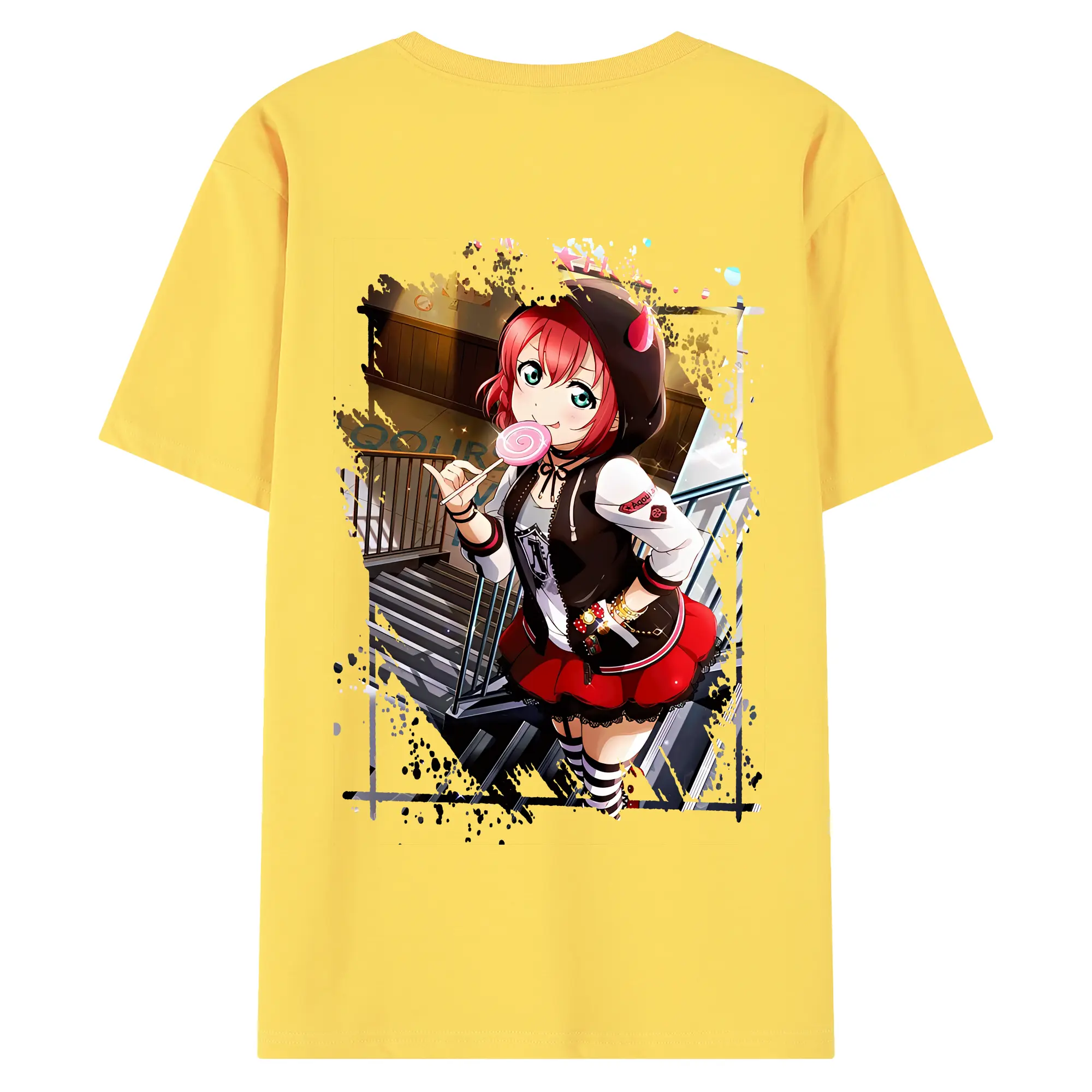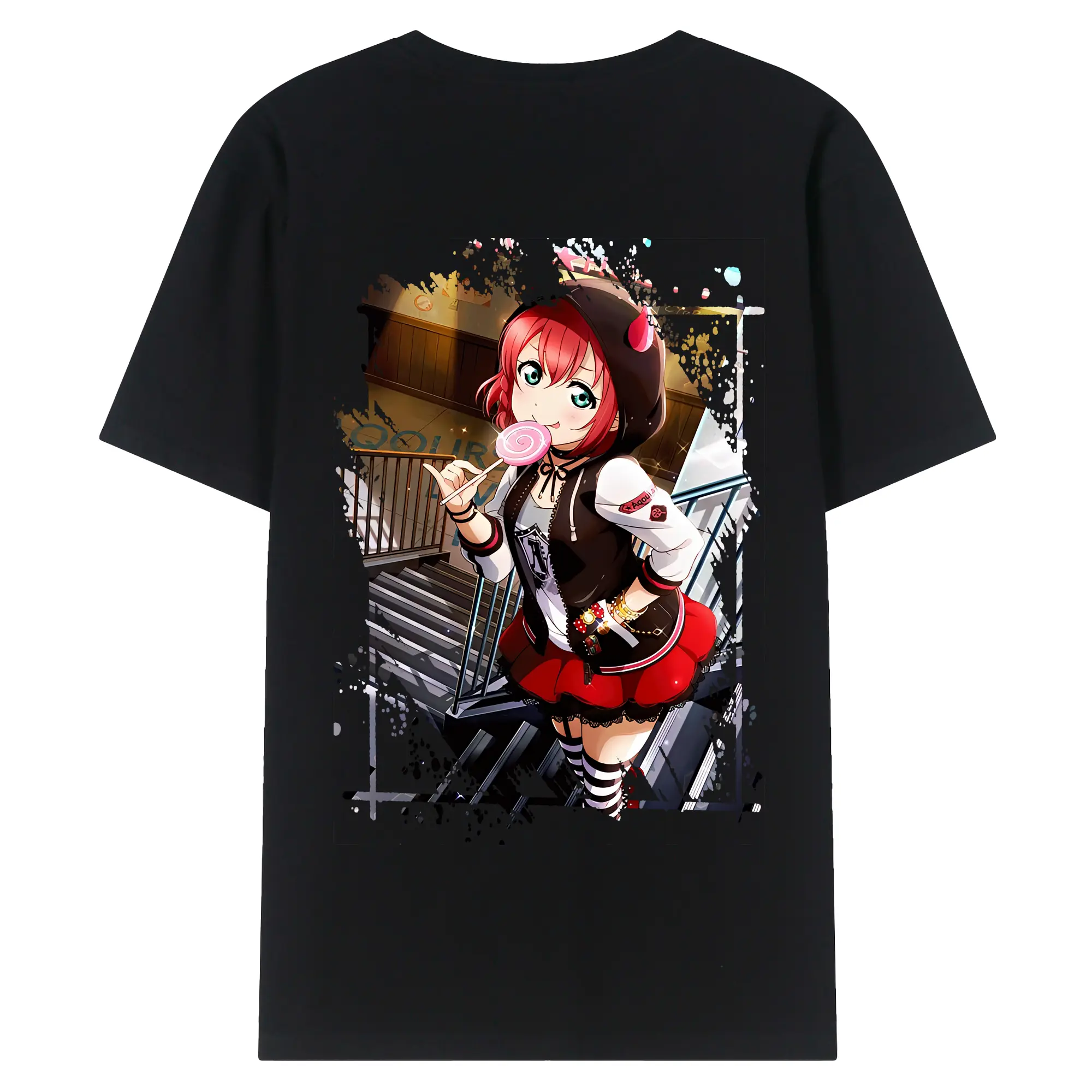 Love Live! グッズ,黒澤ルビィ - 綿100% ヴィンテージ風 半袖Tシャツ ・ 背面プリント ・ 柔らか肌触り ・ 通気性 快適 ・ スポーツ カジュアル 外出用