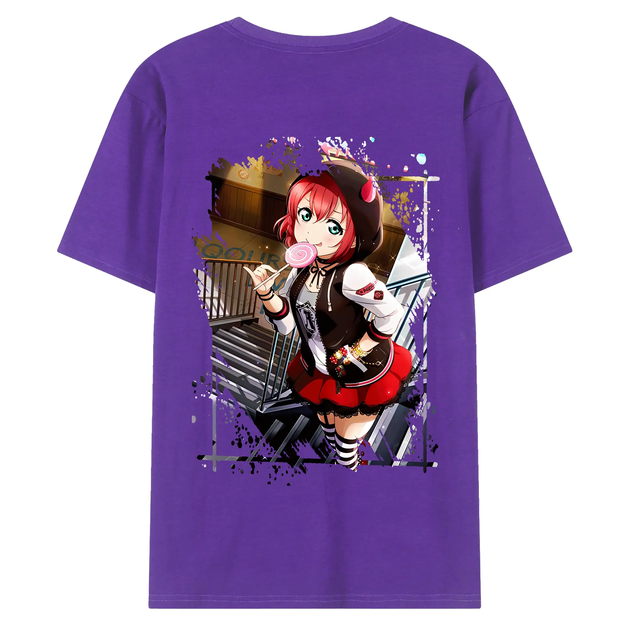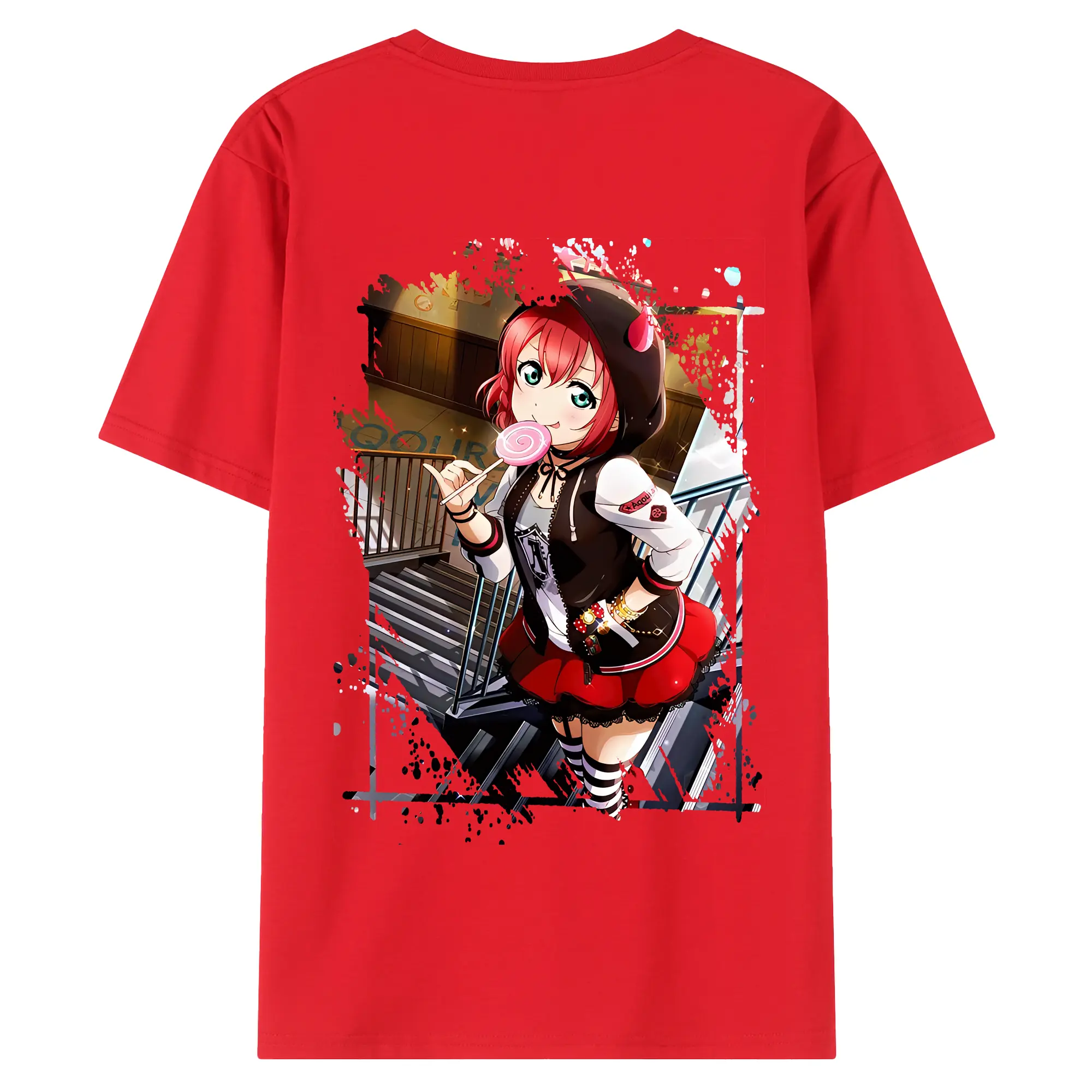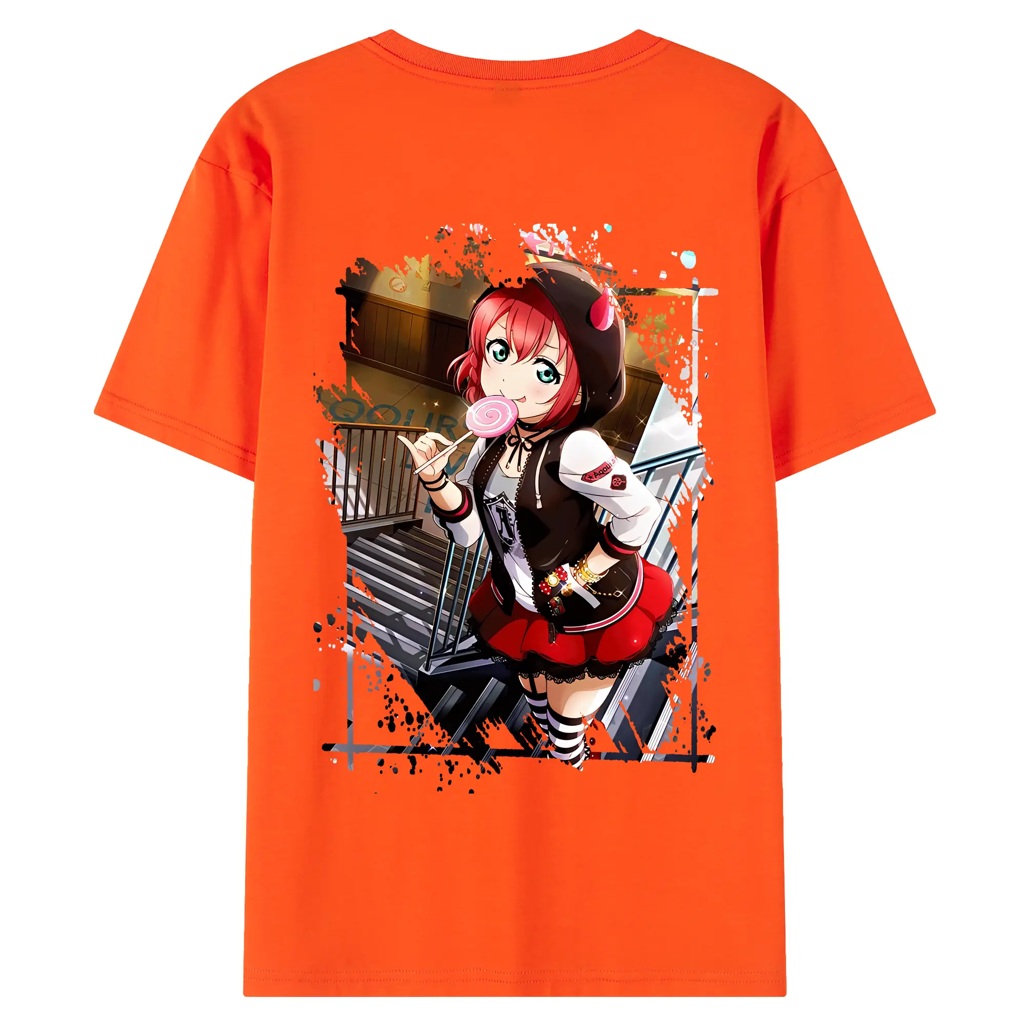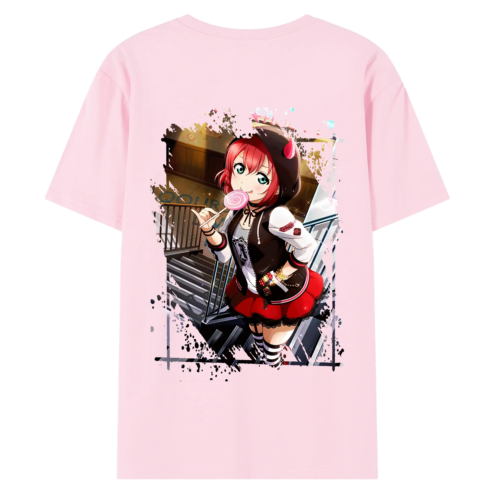 Love Live! グッズ,黒澤ルビィ - 綿100% 半袖Tシャツ ・ フロントプリント ・ 快適 通気性 ・ 日常使い 散歩 スポーツ用