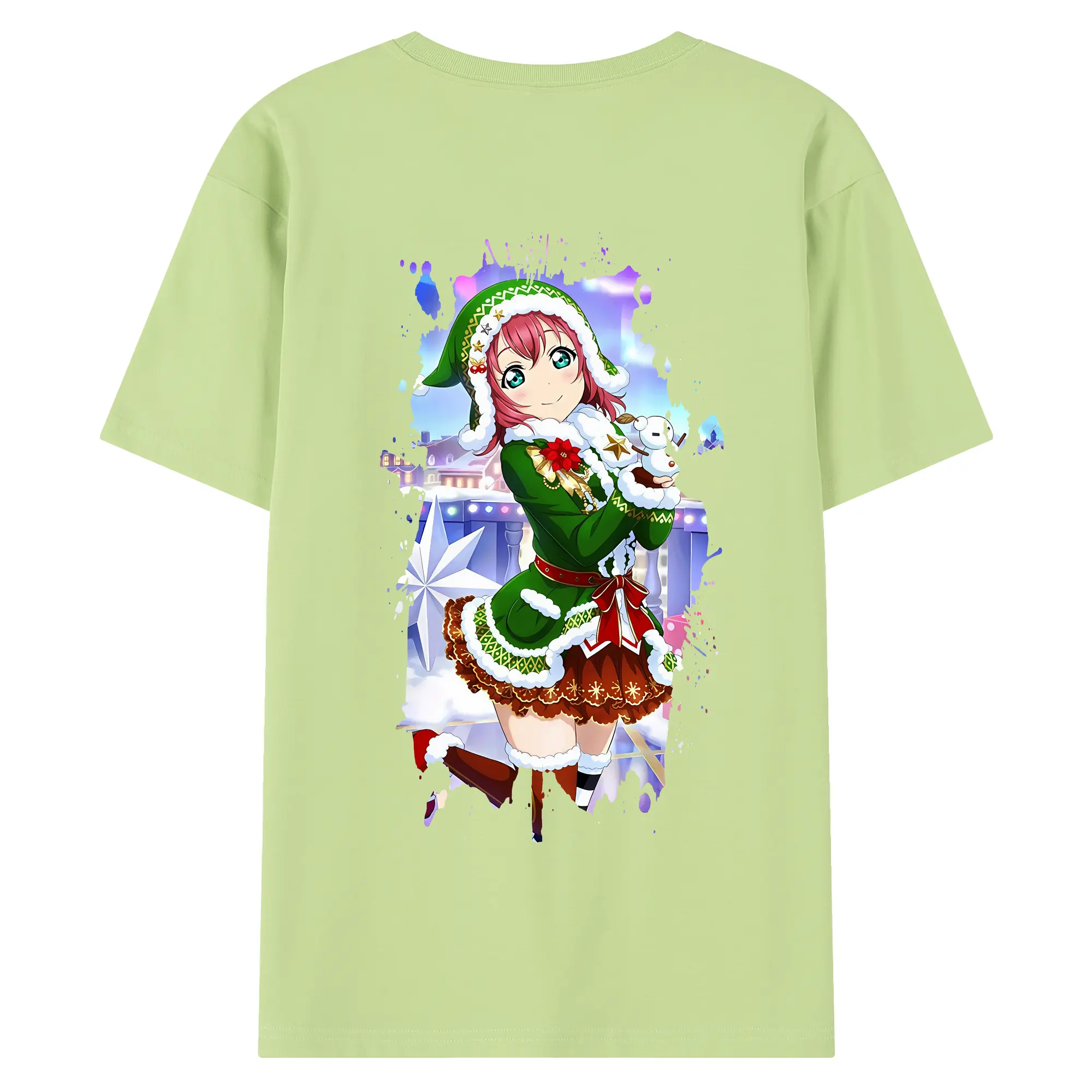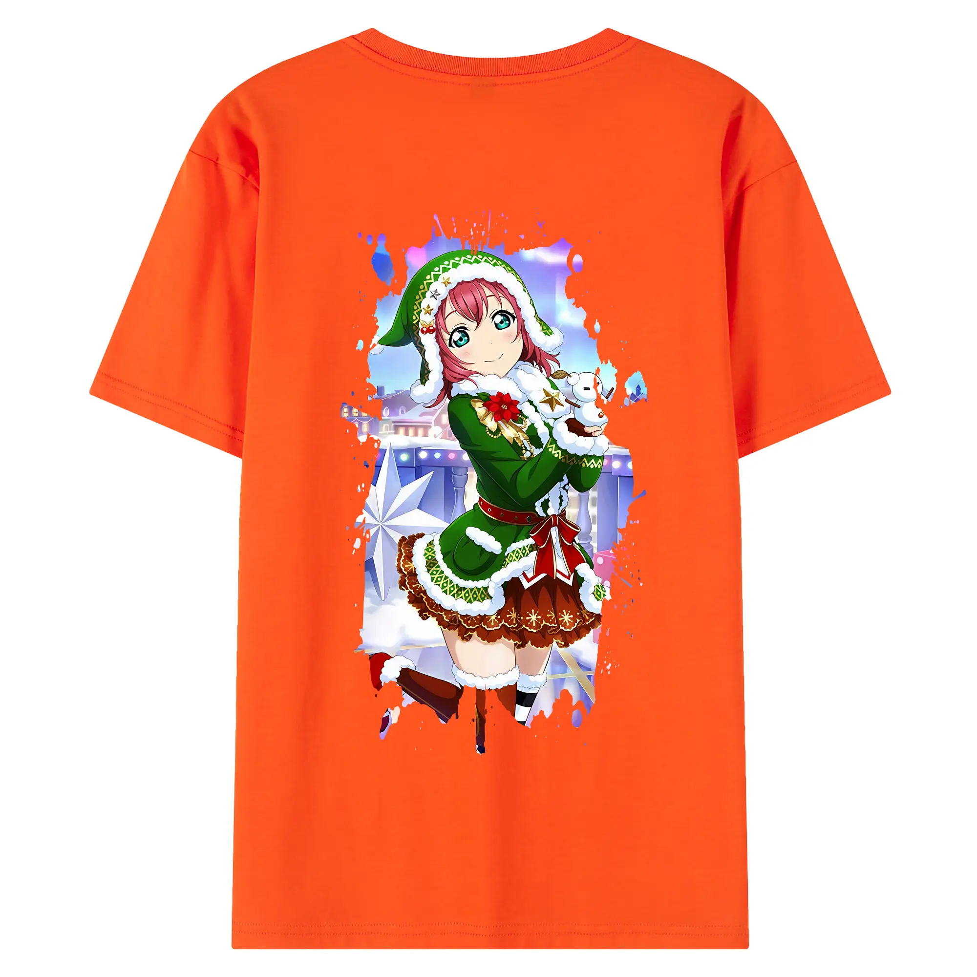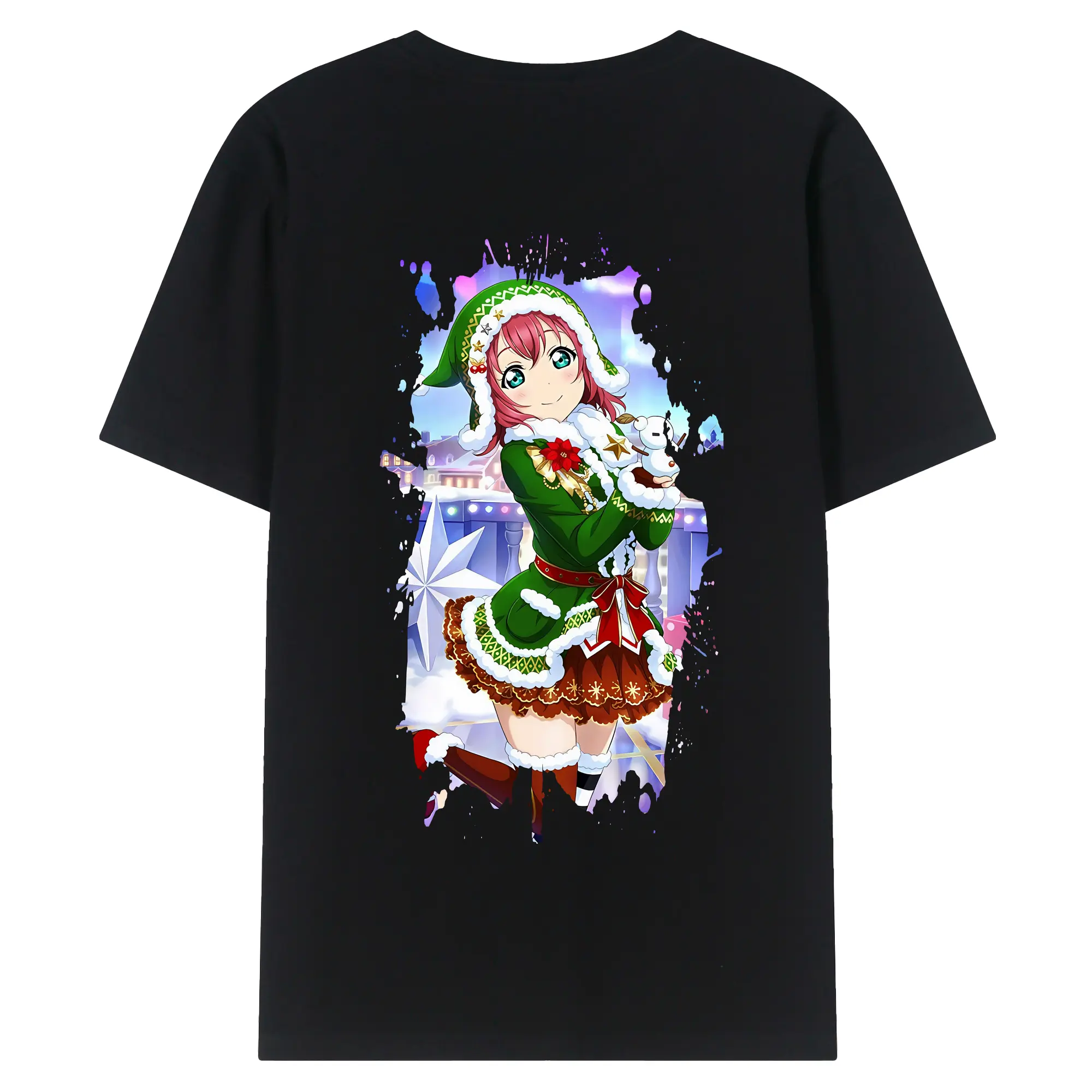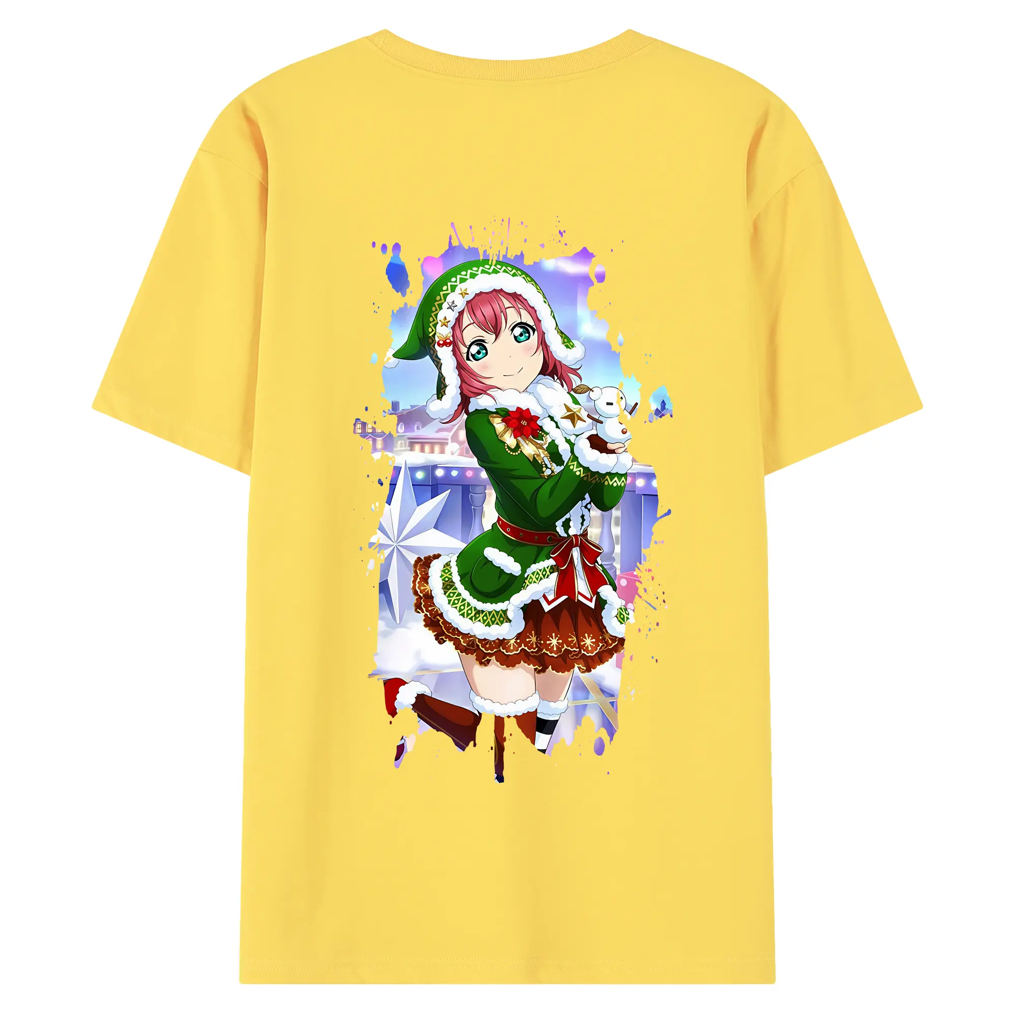 Love Live! グッズ,黒澤ルビィ - 綿100% ヴィンテージ風 半袖Tシャツ ・ 背面プリント ・ 柔らか肌触り ・ 通気性 快適 ・ スポーツ カジュアル 外出用