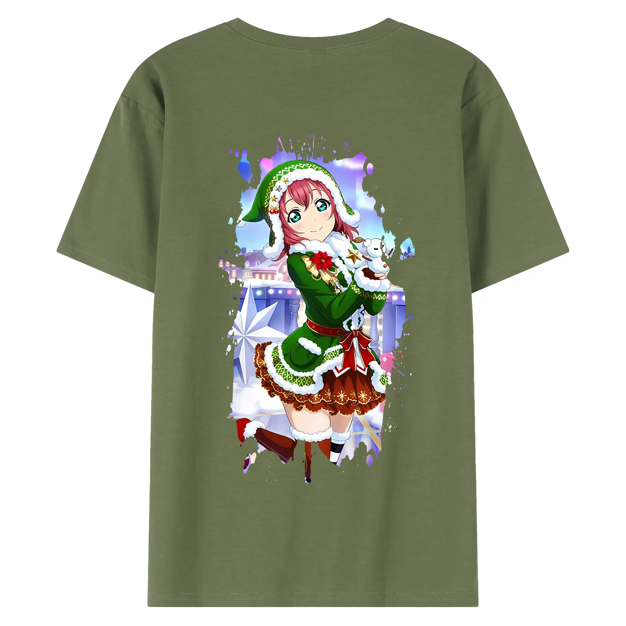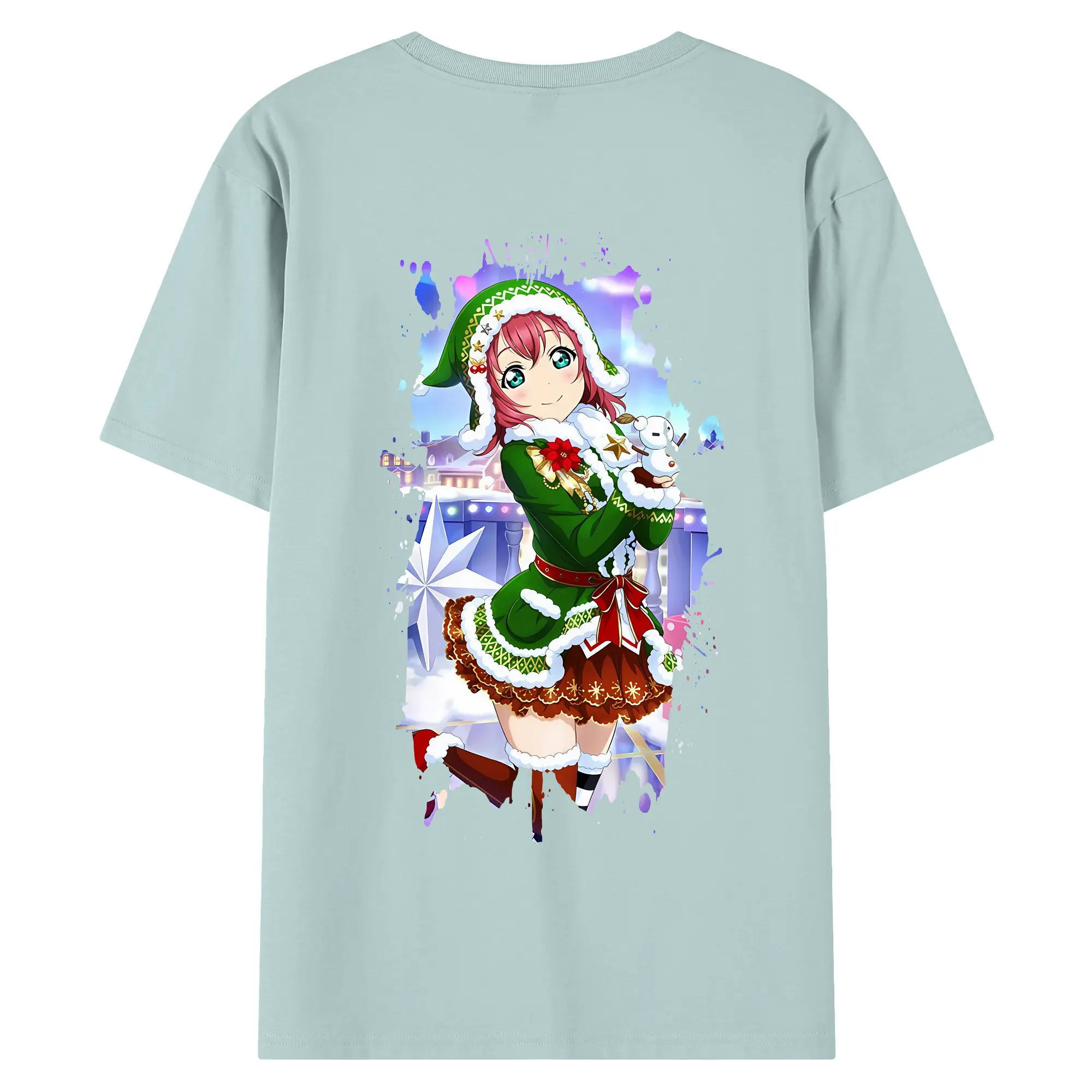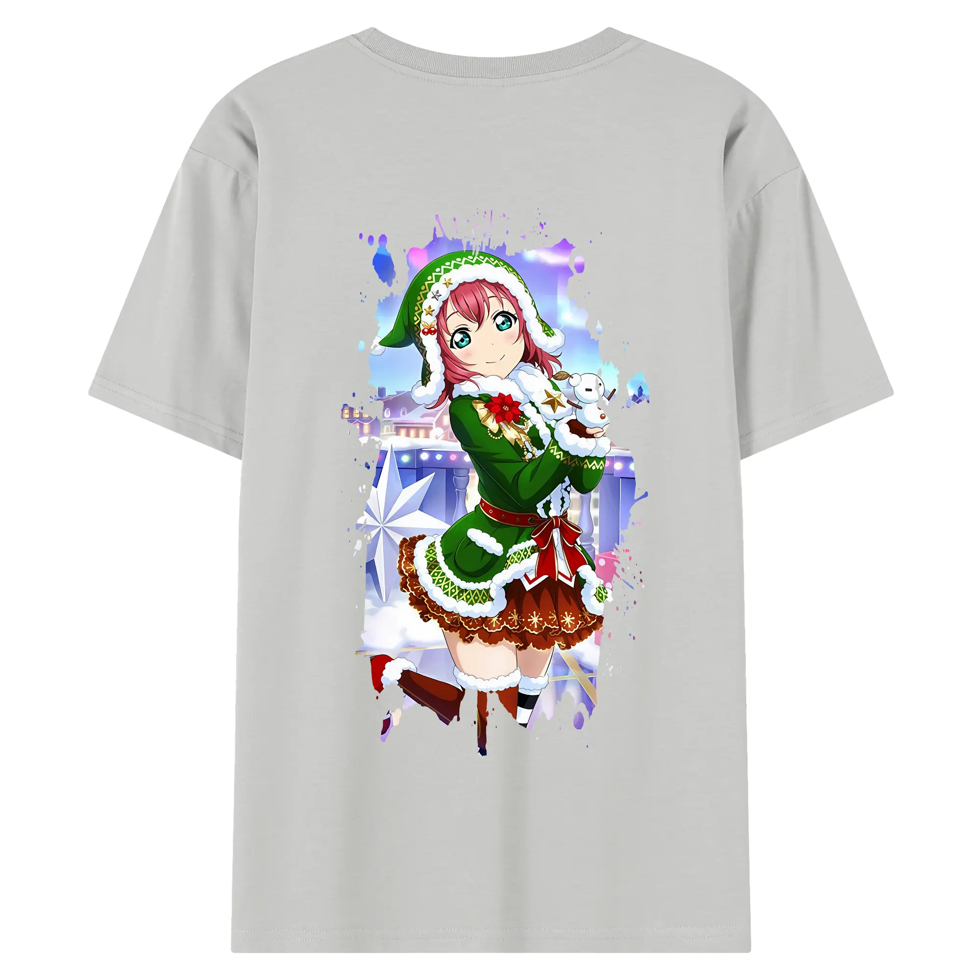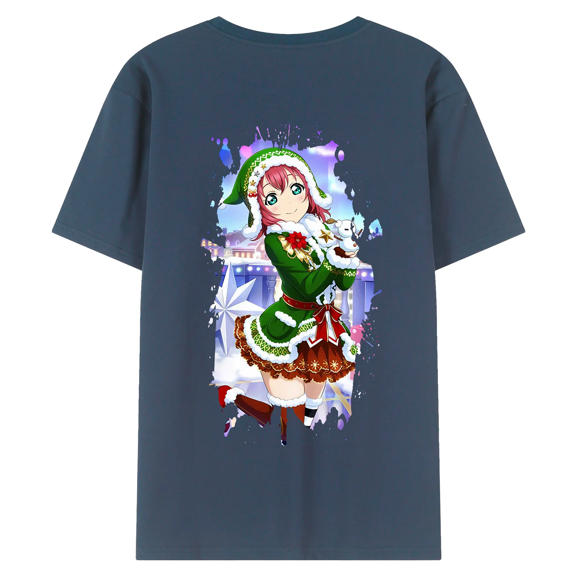 Love Live! グッズ,黒澤ルビィ - 綿100% ヴィンテージ風 半袖Tシャツ ・ 背面プリント ・ 柔らか肌触り ・ 通気性 快適 ・ スポーツ カジュアル 外出用