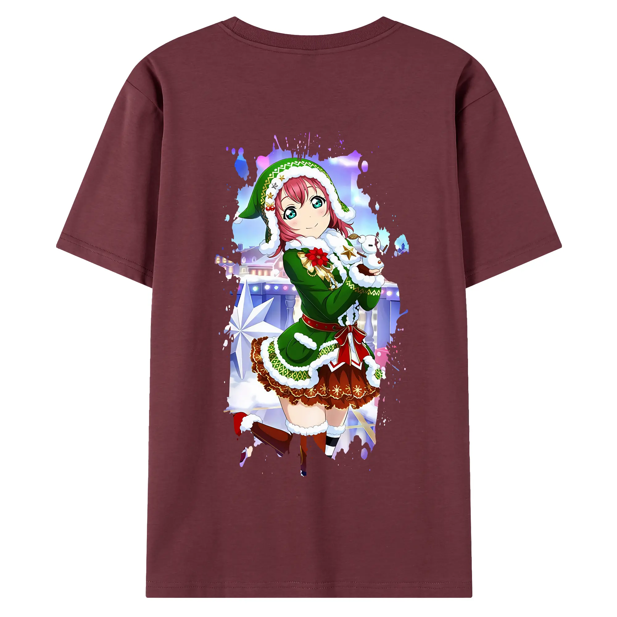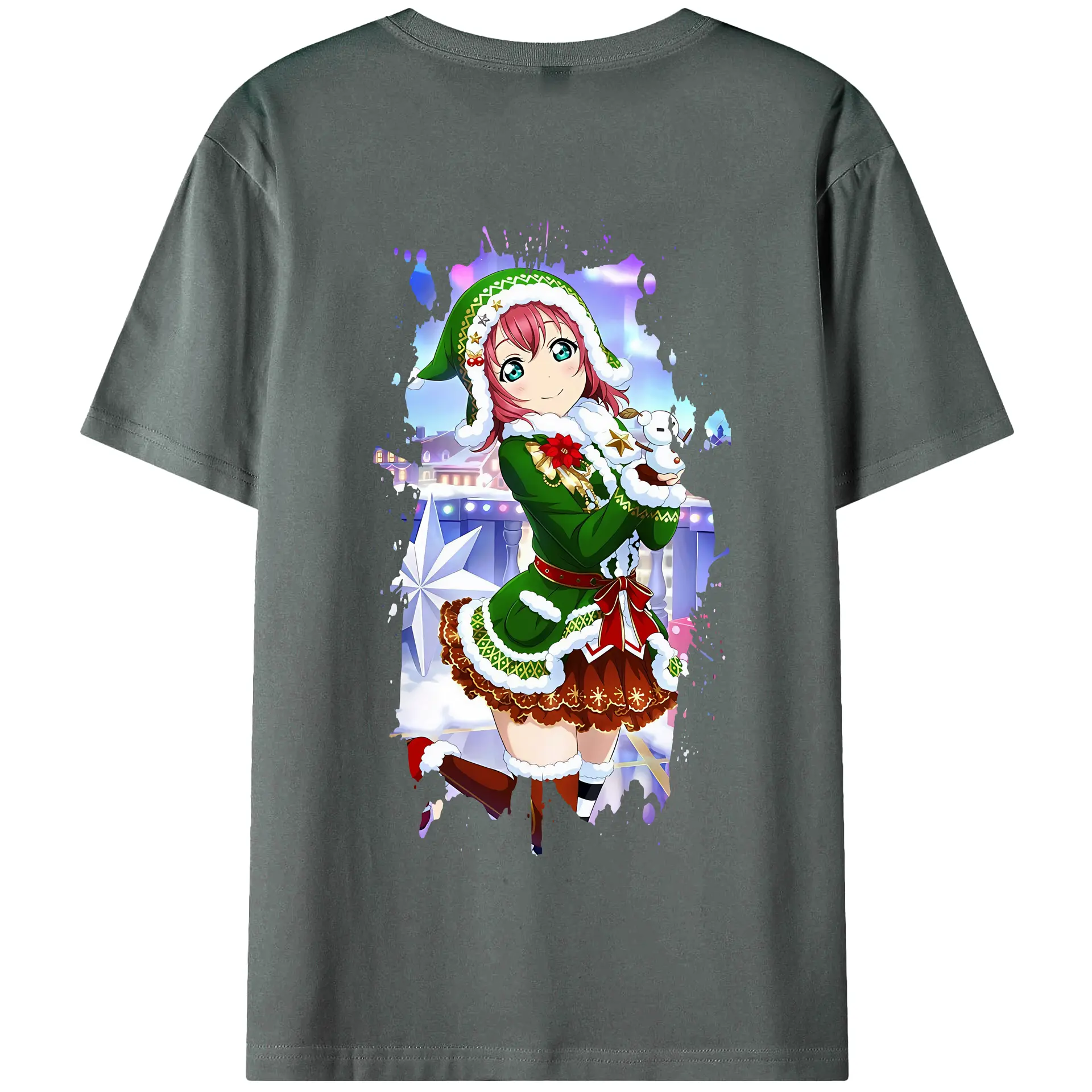 Love Live! グッズ,黒澤ルビィ - 綿100% ヴィンテージ風 半袖Tシャツ ・ フロントプリント ・ 柔らか肌触り ・ 通気性 快適 ・ スポーツ カジュアル 外出用