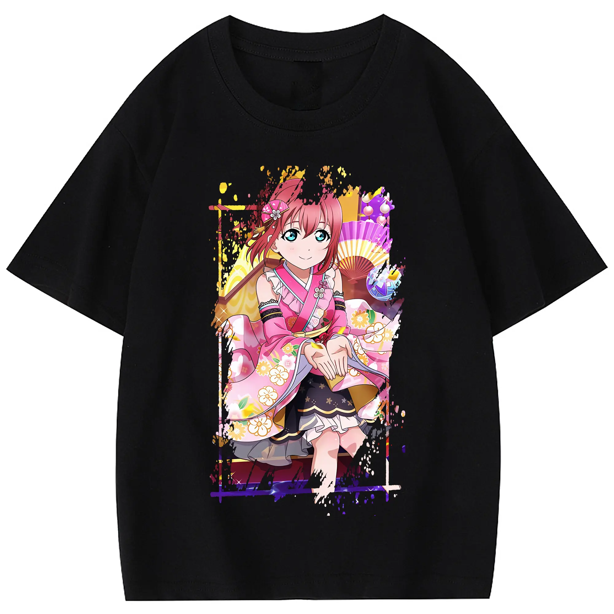 Love Live! グッズ,黒澤ルビィ - 綿100% 半袖Tシャツ ・ バックプリント ・ 快適 通気性 ・ 日常使い 散歩 スポーツ用