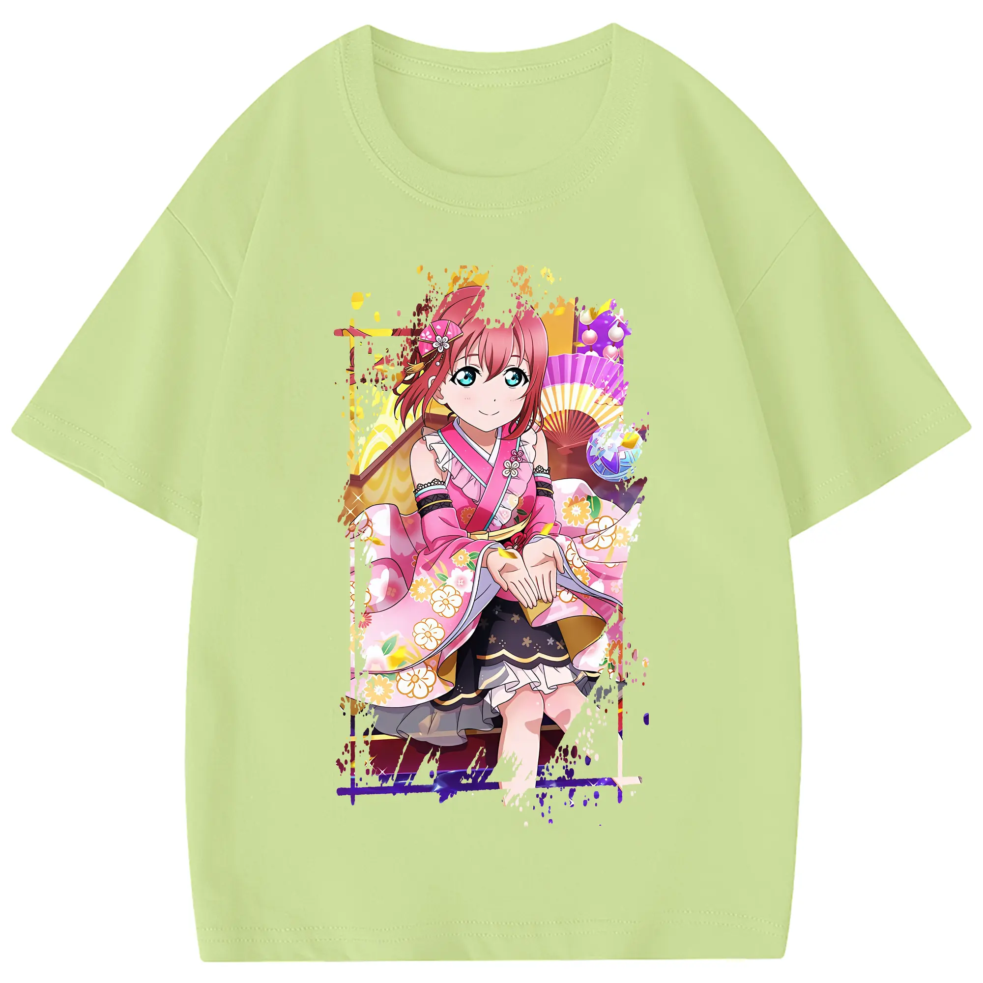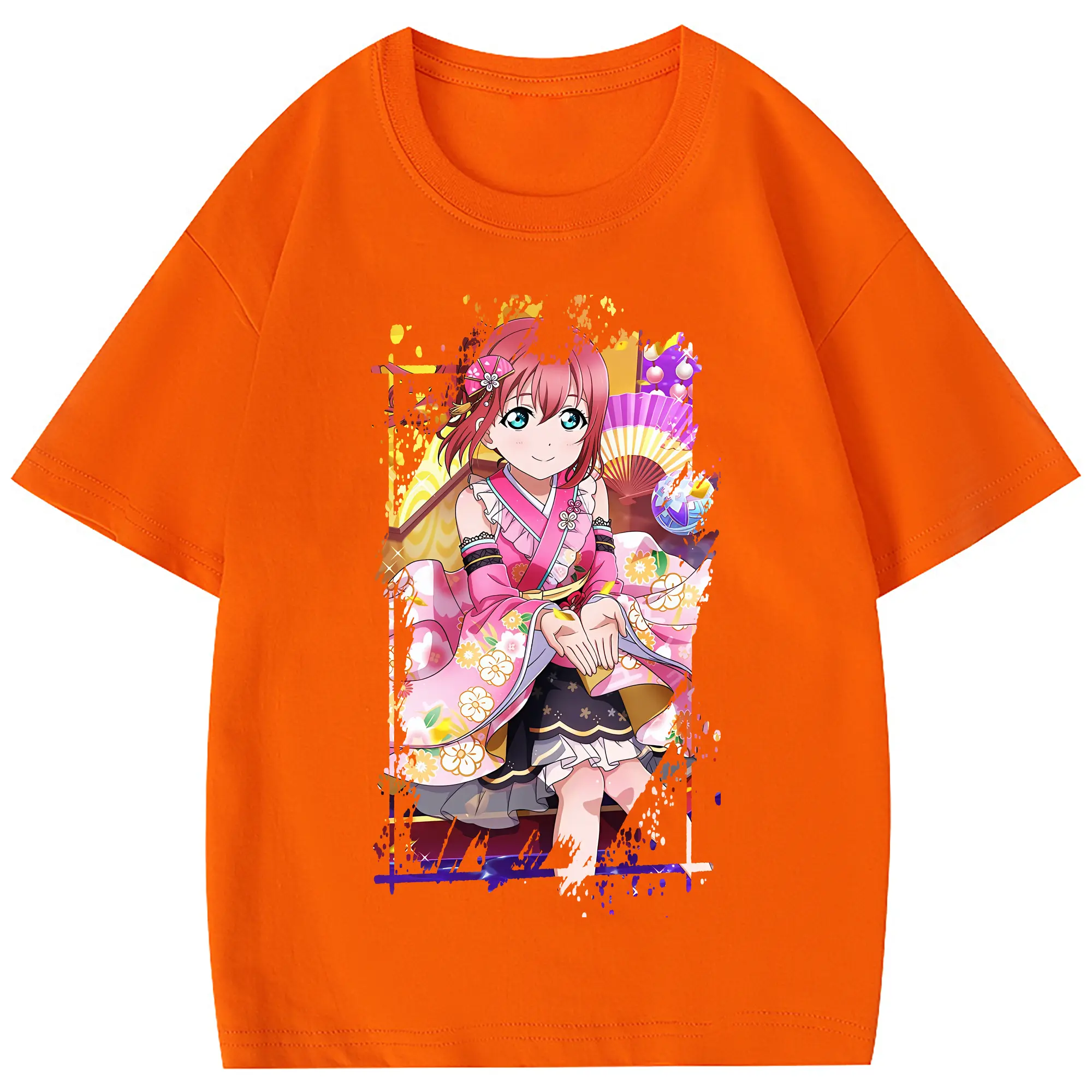 Love Live! グッズ,黒澤ルビィ - 綿100% ヴィンテージ風 半袖Tシャツ ・ フロントプリント ・ 柔らか肌触り ・ 通気性 快適 ・ スポーツ カジュアル 外出用