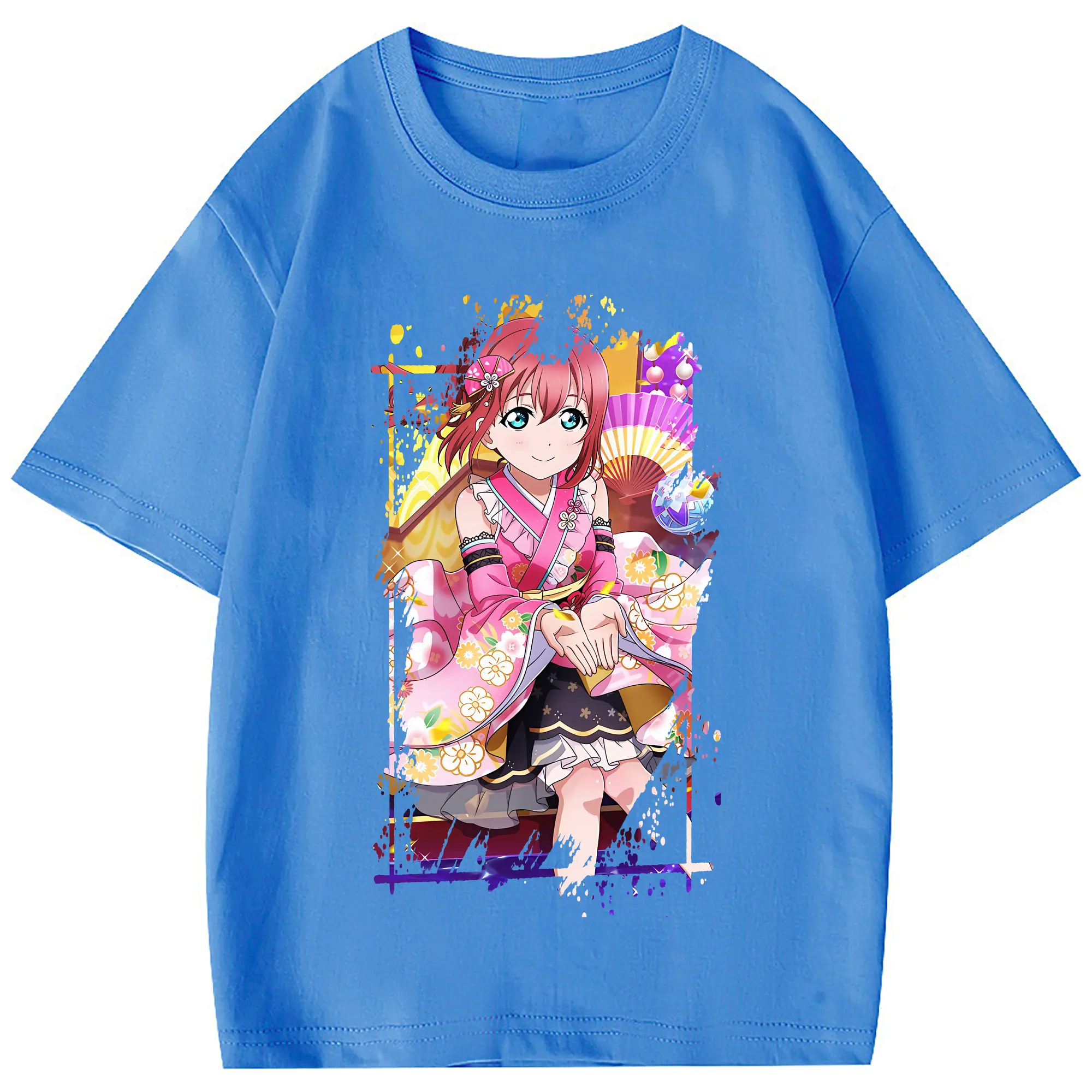 Love Live! グッズ,黒澤ルビィ - 綿100% 半袖Tシャツ ・ フロントプリント ・ 快適 通気性 ・ 日常使い 散歩 スポーツ用