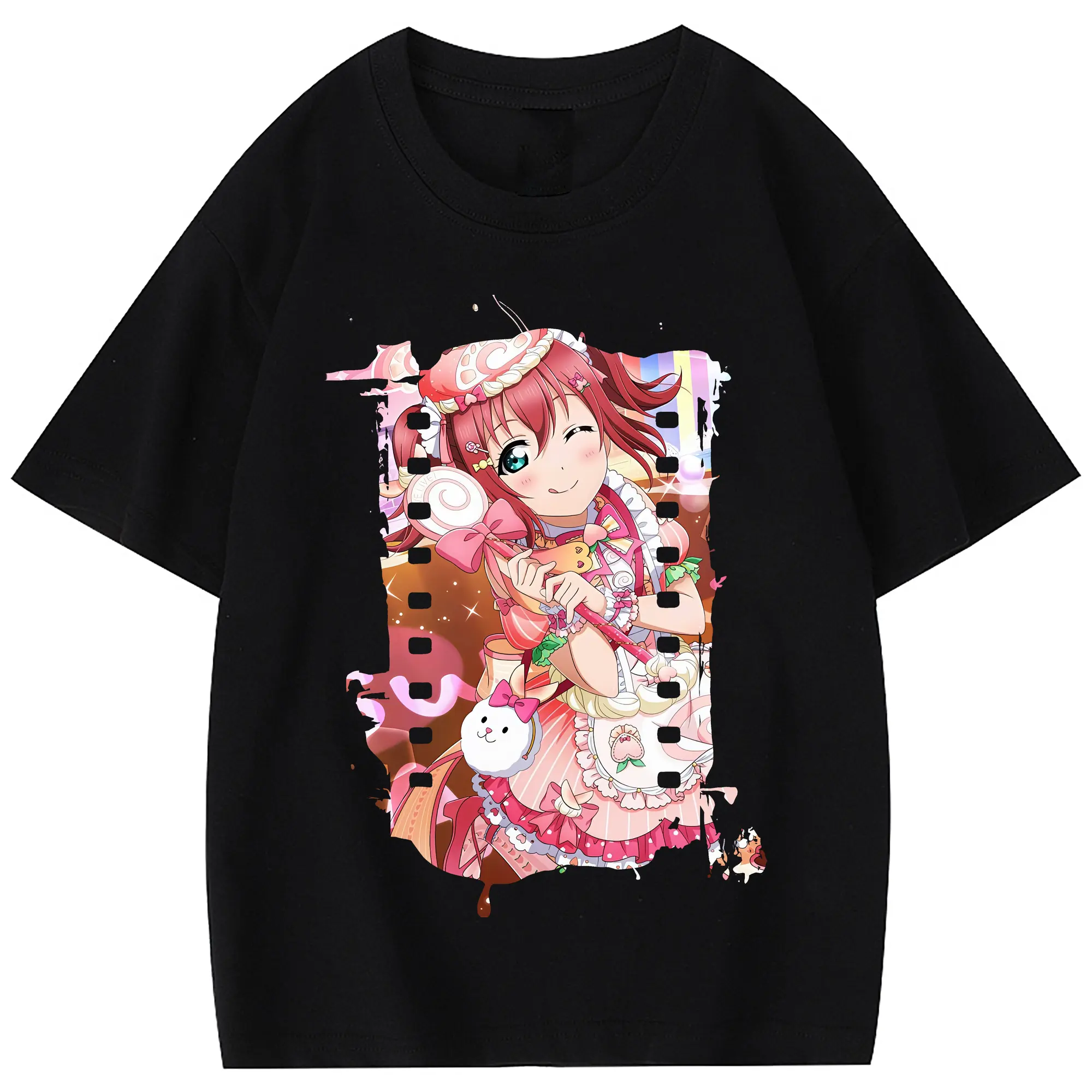 Love Live! グッズ,黒澤ルビィ - 綿100% 半袖Tシャツ ・ フロントプリント ・ 快適 通気性 ・ 日常使い 散歩 スポーツ用