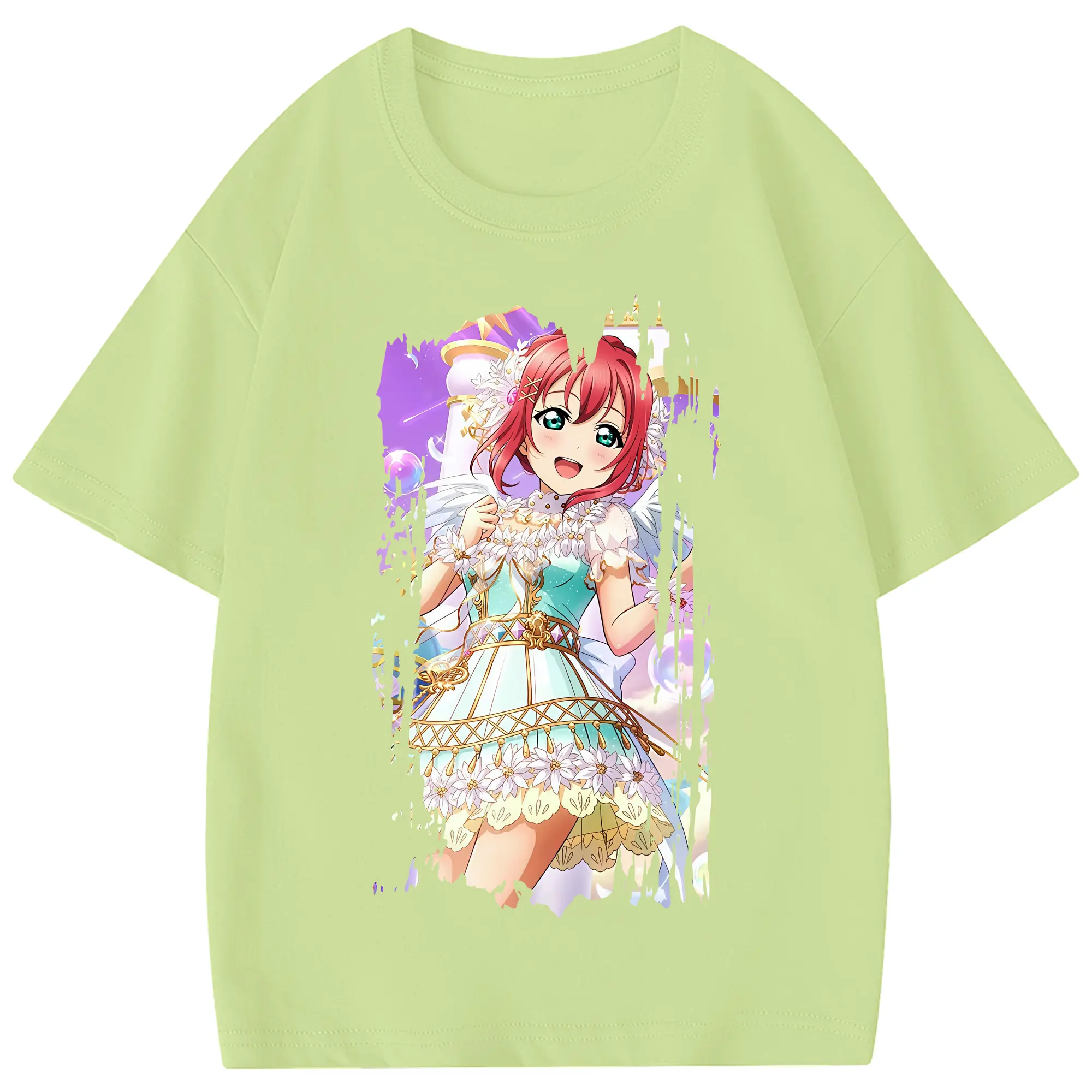Love Live! グッズ,黒澤ルビィ - 綿100% ヴィンテージ風 半袖Tシャツ ・ フロントプリント ・ 柔らか肌触り ・ 通気性 快適 ・ スポーツ カジュアル 外出用