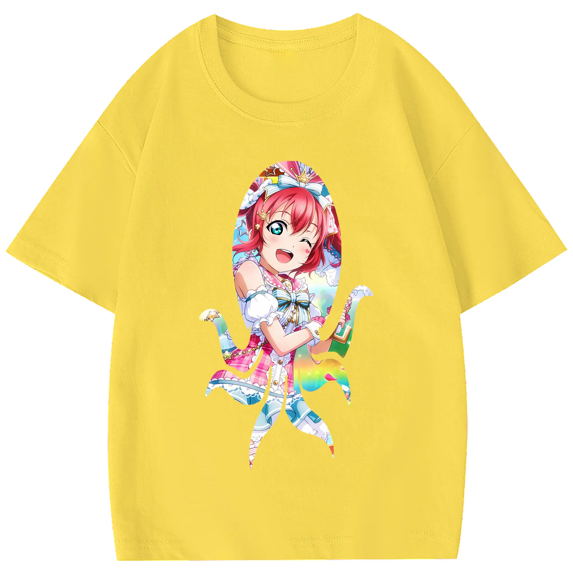 Love Live! グッズ,黒澤ルビィ - 綿100% 半袖Tシャツ ・ フロントプリント ・ 快適 通気性 ・ 日常使い 散歩 スポーツ用