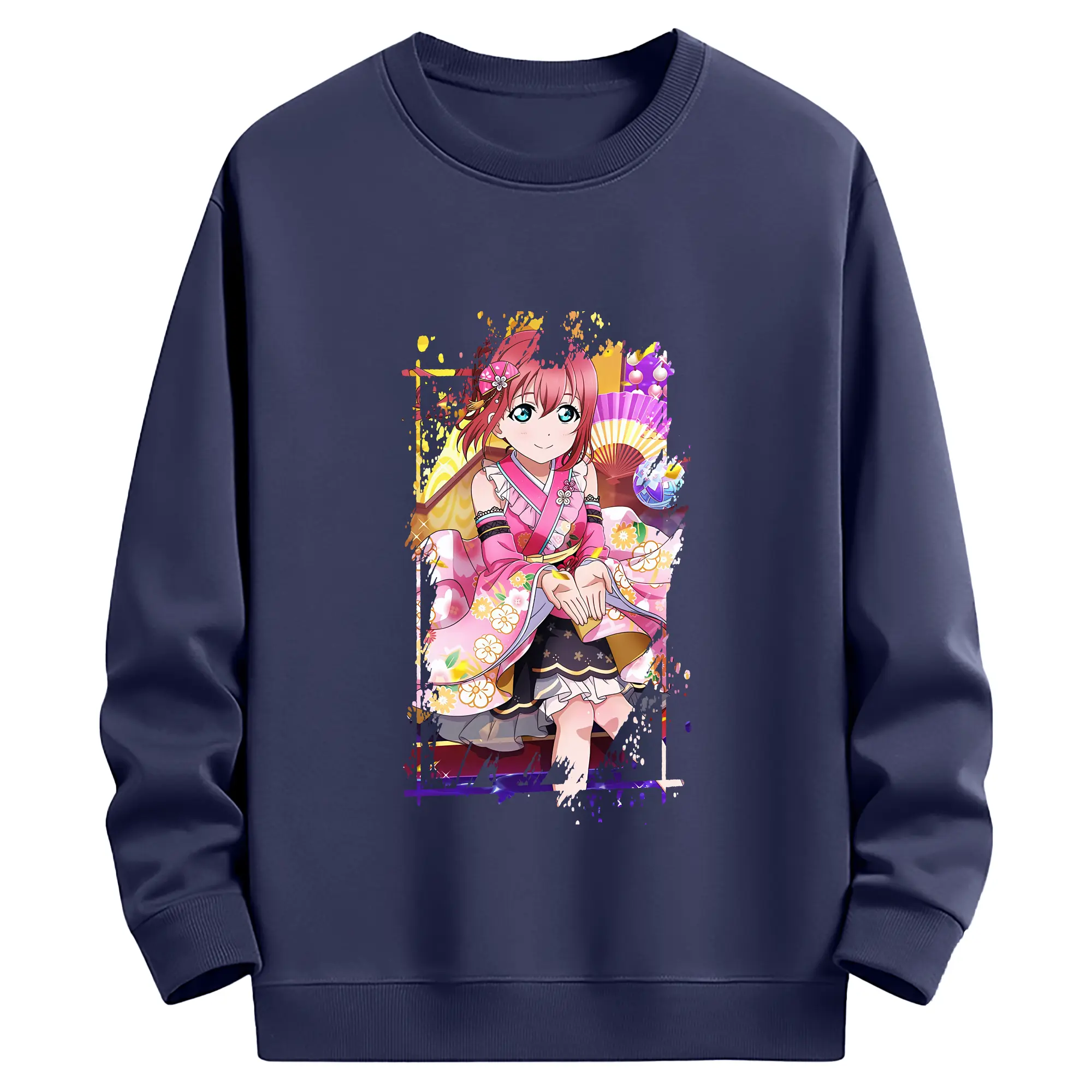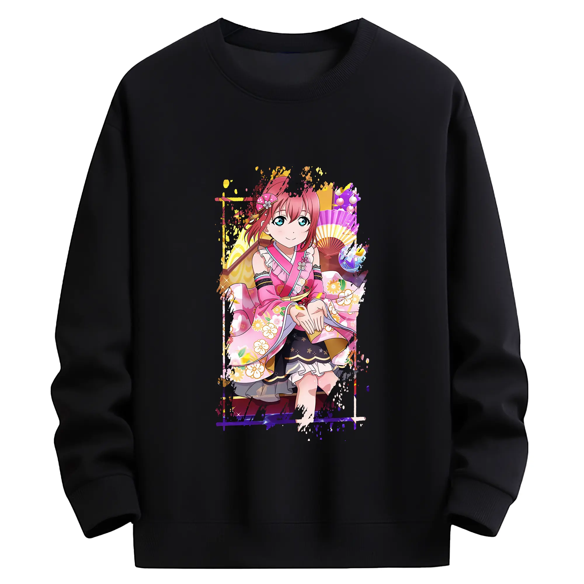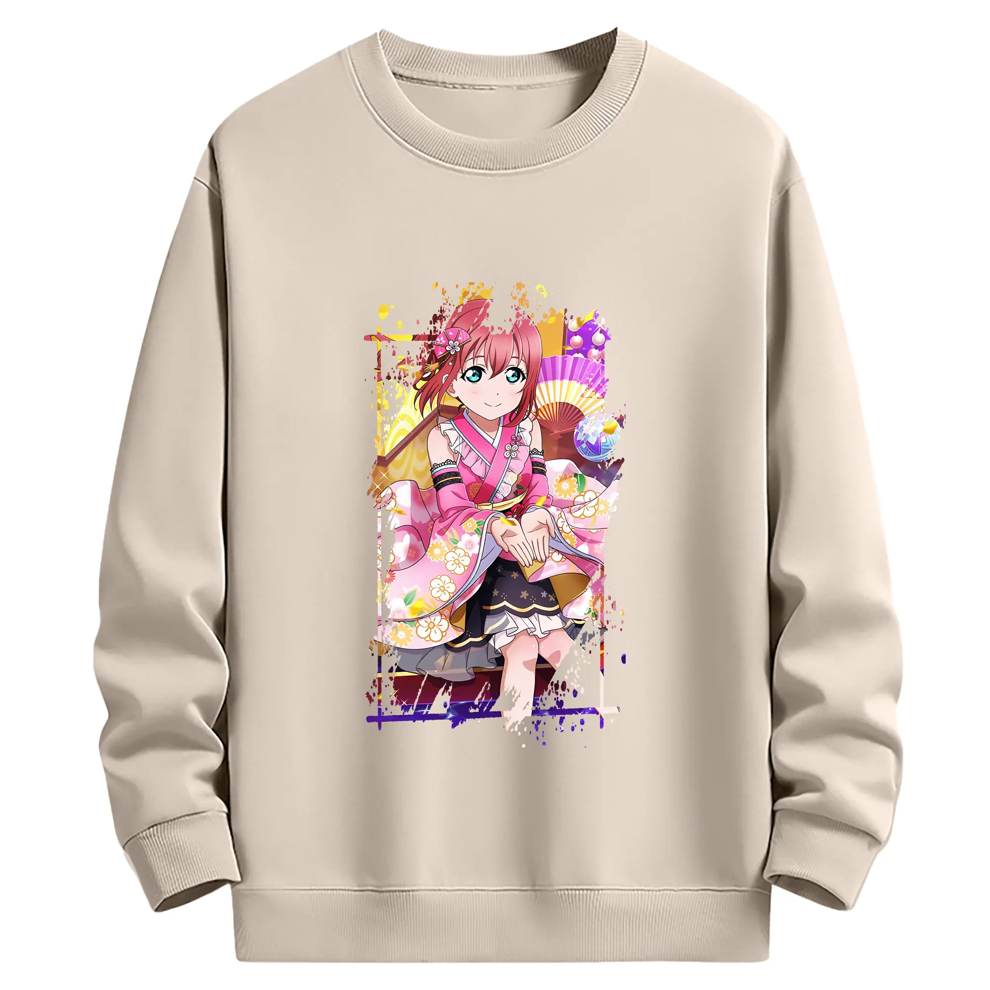 Love Live! グッズ,黒澤ルビィ - 薄手 クルーネック スウェット 裏毛260g · ポリエステル 春秋向け カジュアル 男女兼用 · トレーナー デイリー スポーツ 散歩に最適