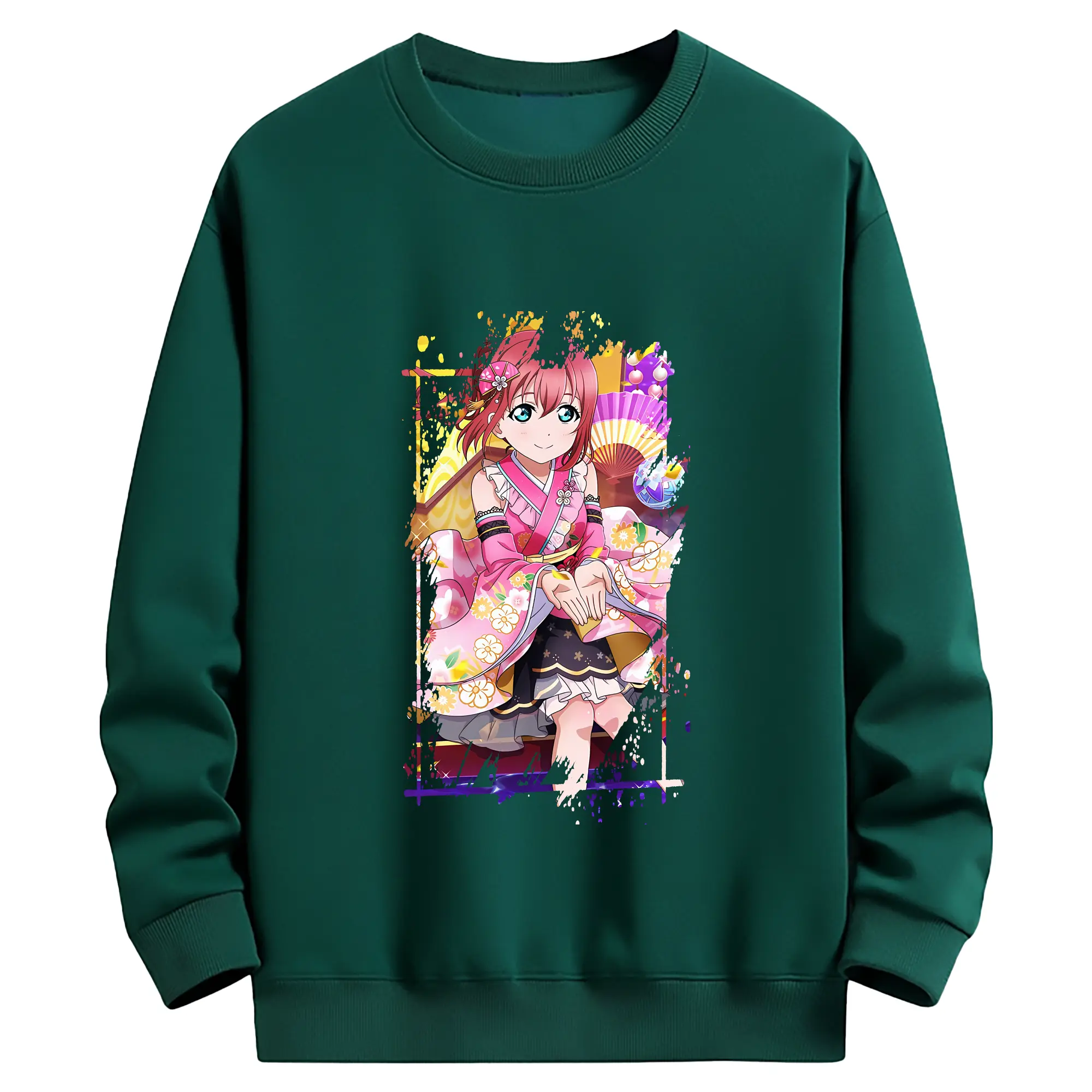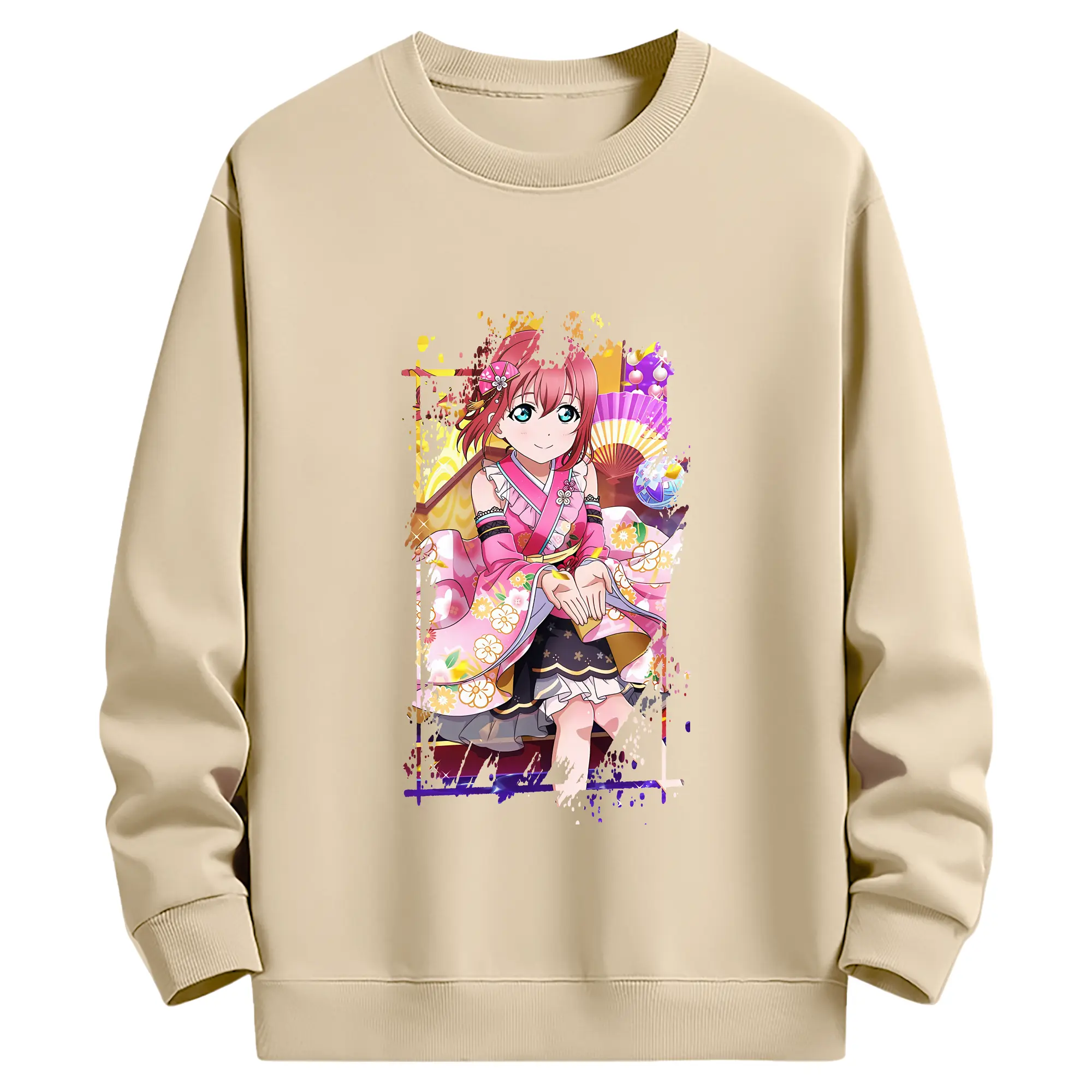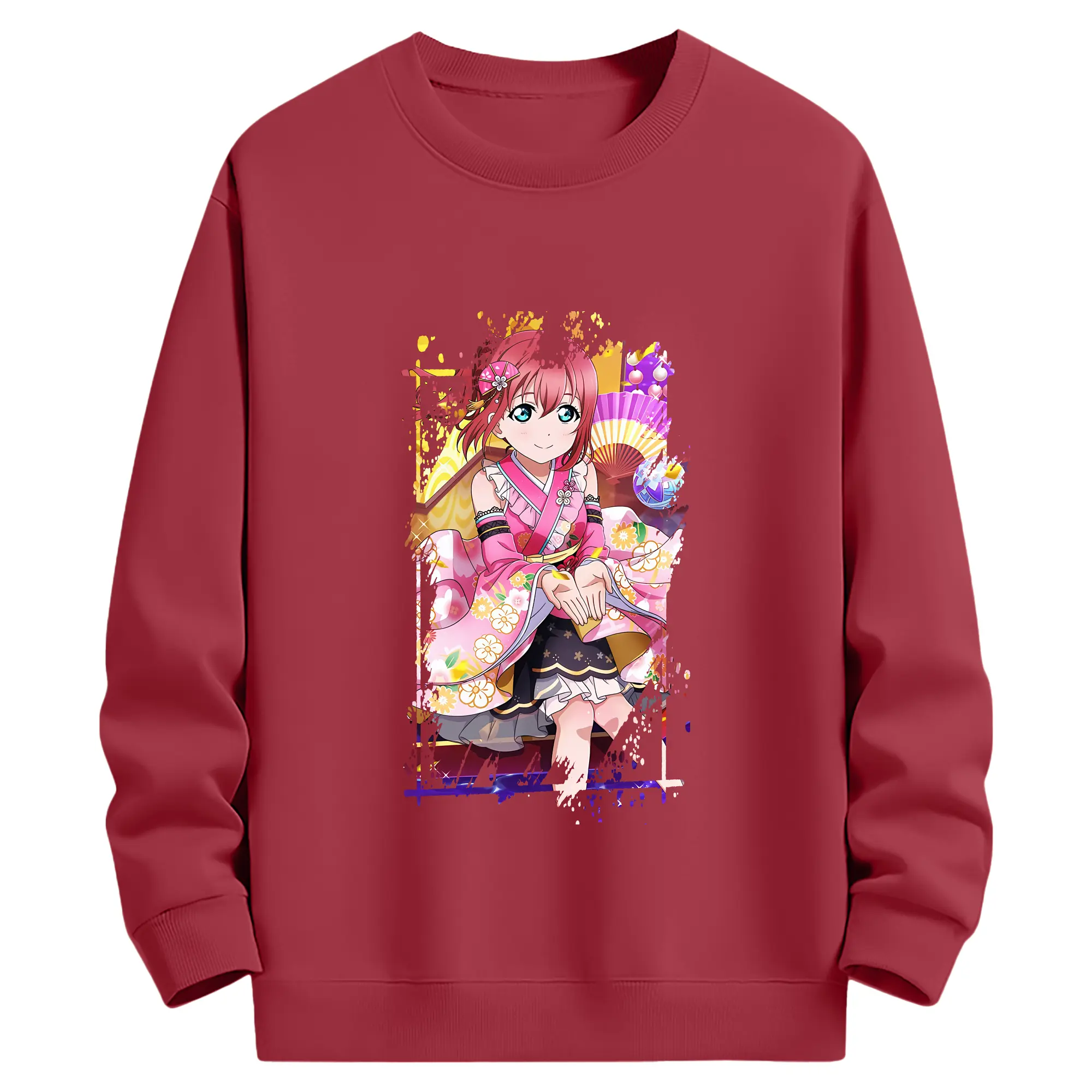Love Live! グッズ,黒澤ルビィ - 薄手 クルーネック スウェット 裏毛260g · ポリエステル 春秋向け カジュアル 男女兼用 · トレーナー デイリー スポーツ 散歩に最適
