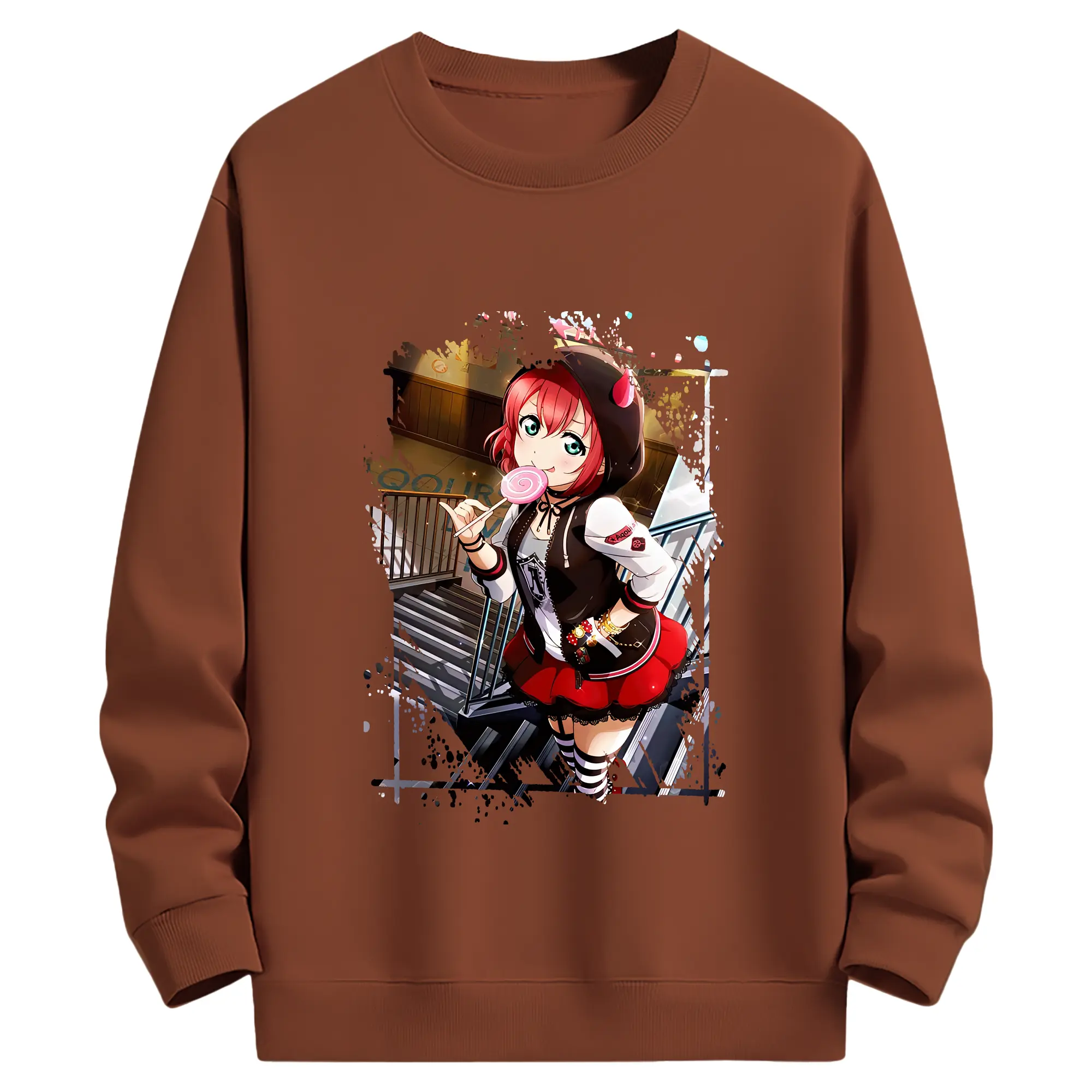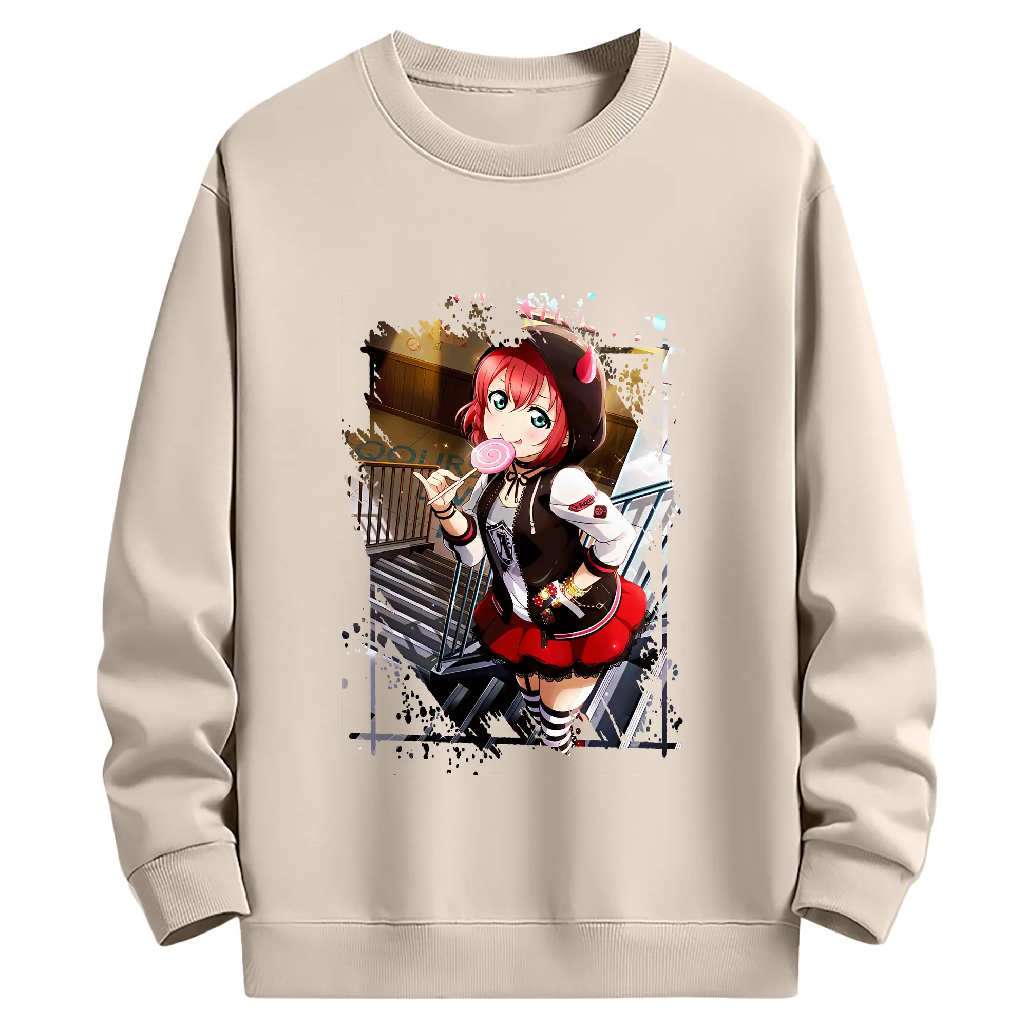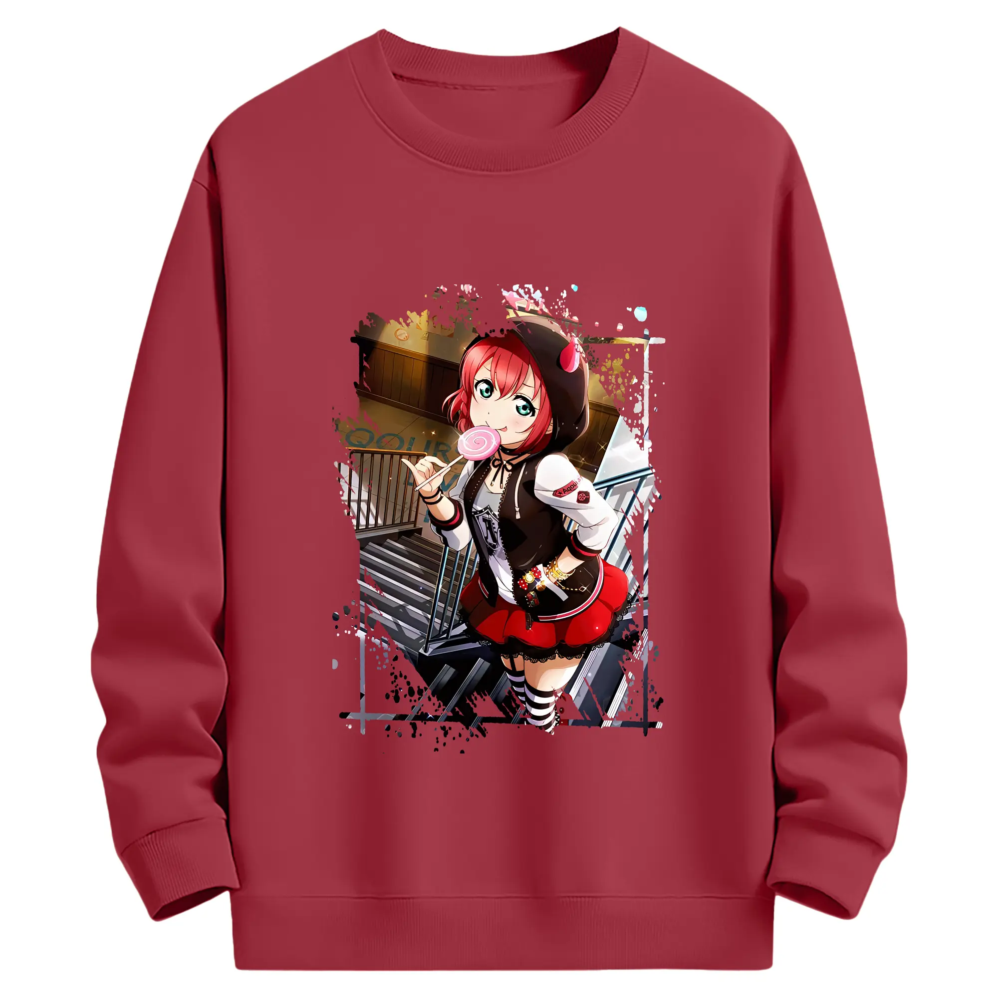 Love Live! グッズ,黒澤ルビィ - 薄手 クルーネック スウェット 裏毛260g · ポリエステル 春秋向け カジュアル 男女兼用 · トレーナー デイリー スポーツ 散歩に最適