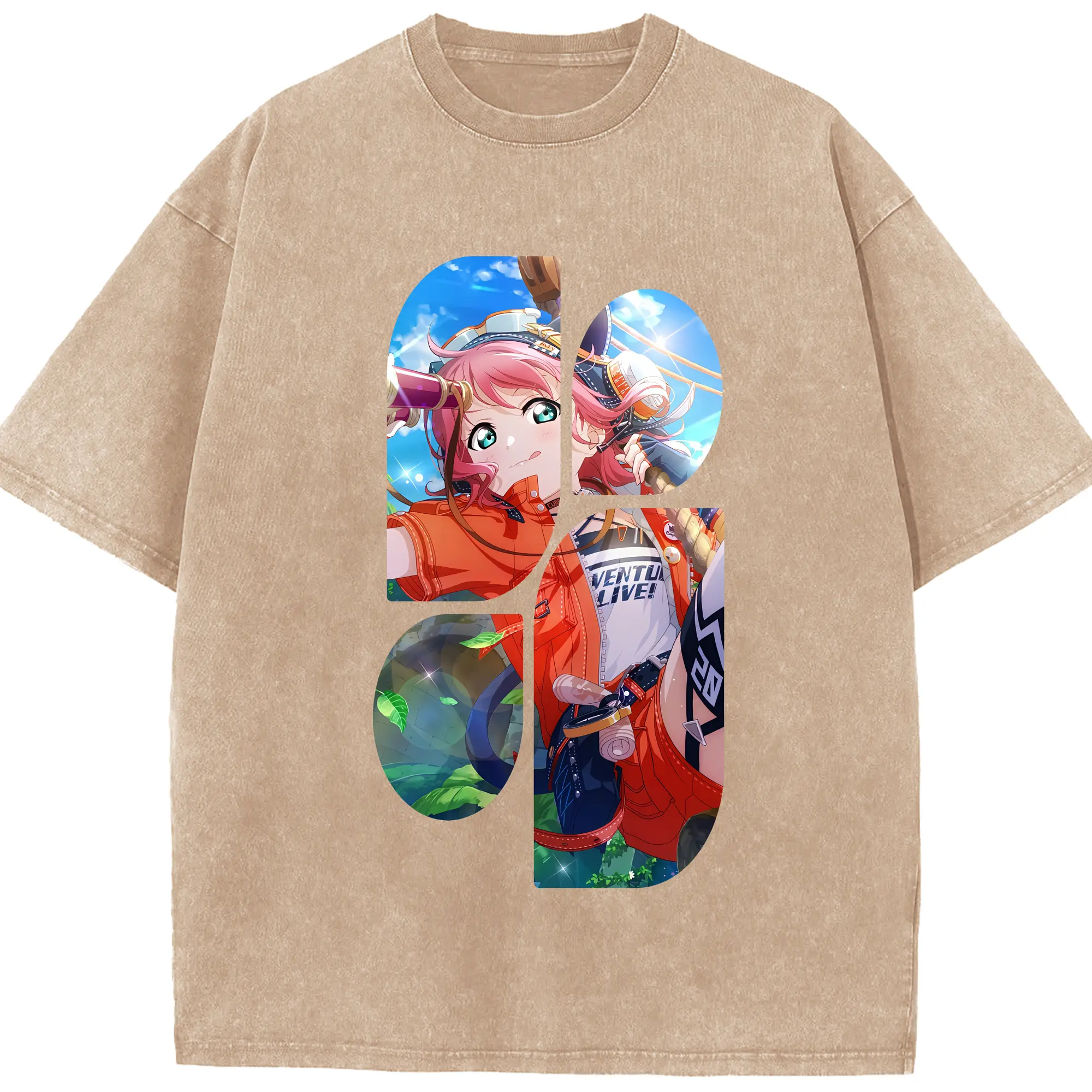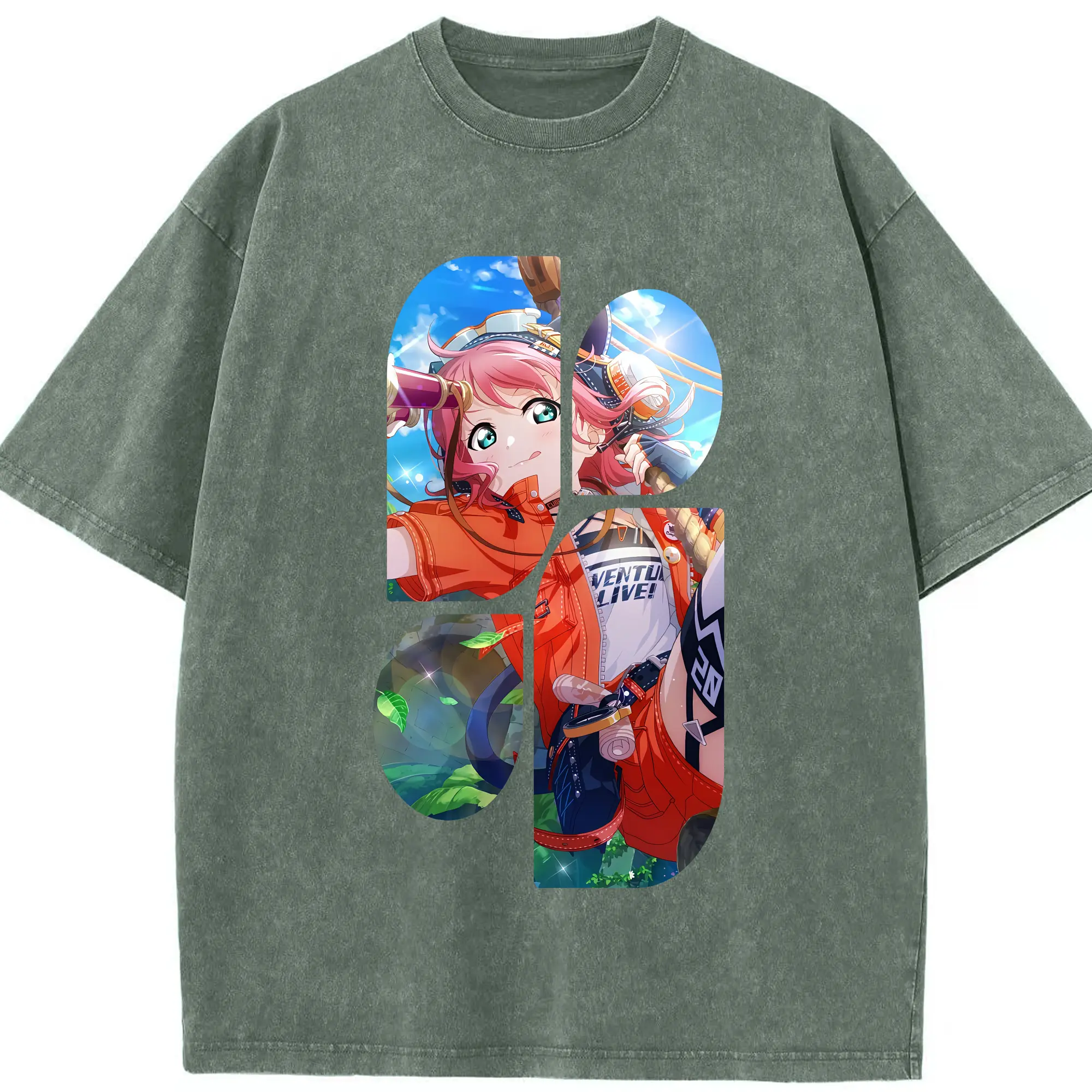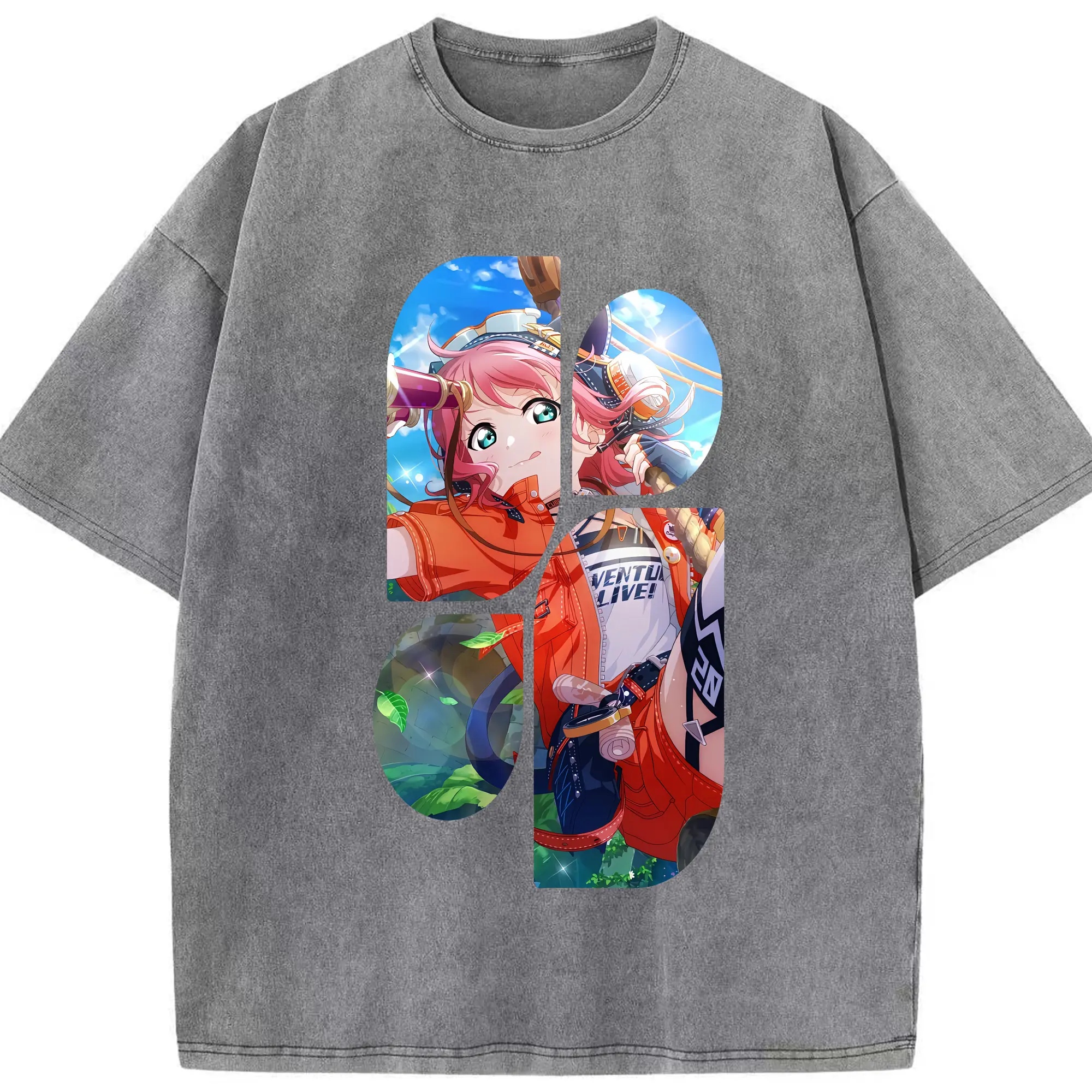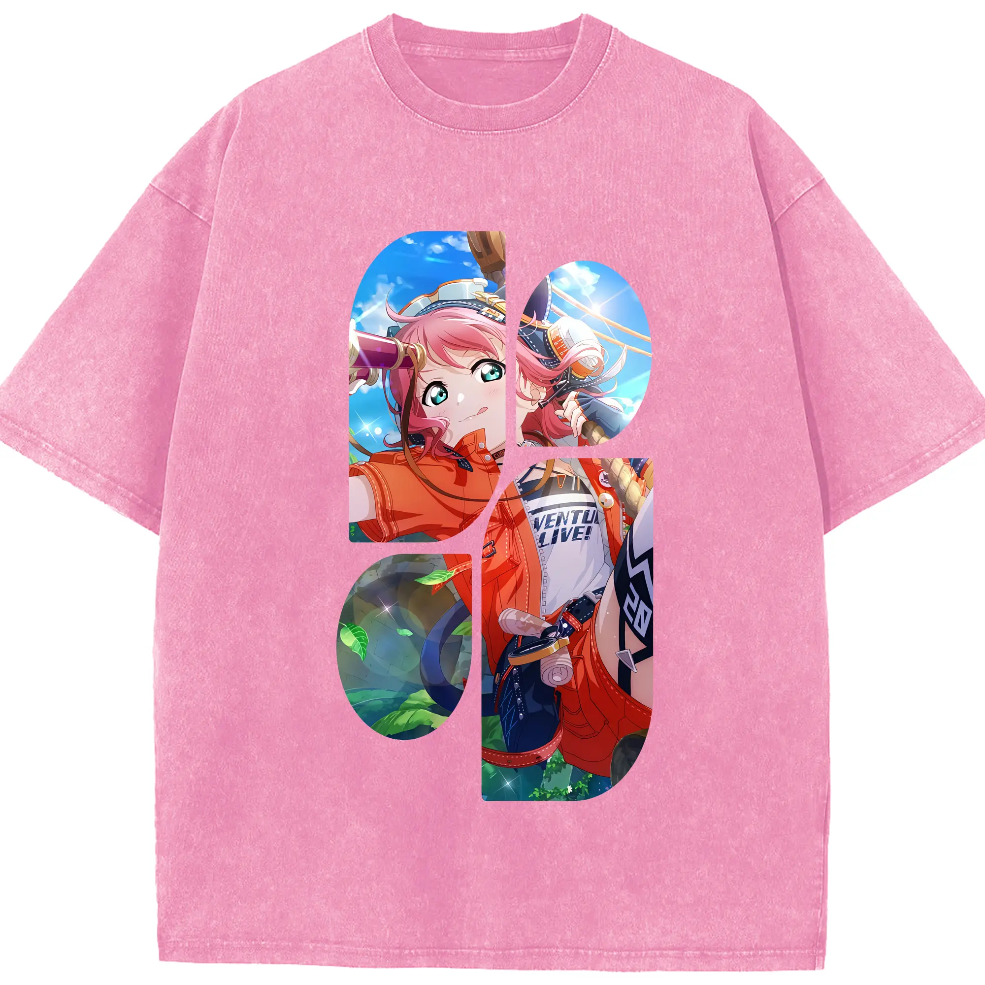 Love Live! グッズ,黒澤ルビィ - 綿100% ヴィンテージ風 半袖Tシャツ ・ 背面プリント ・ 柔らか肌触り ・ 通気性 快適 ・ スポーツ カジュアル 外出用