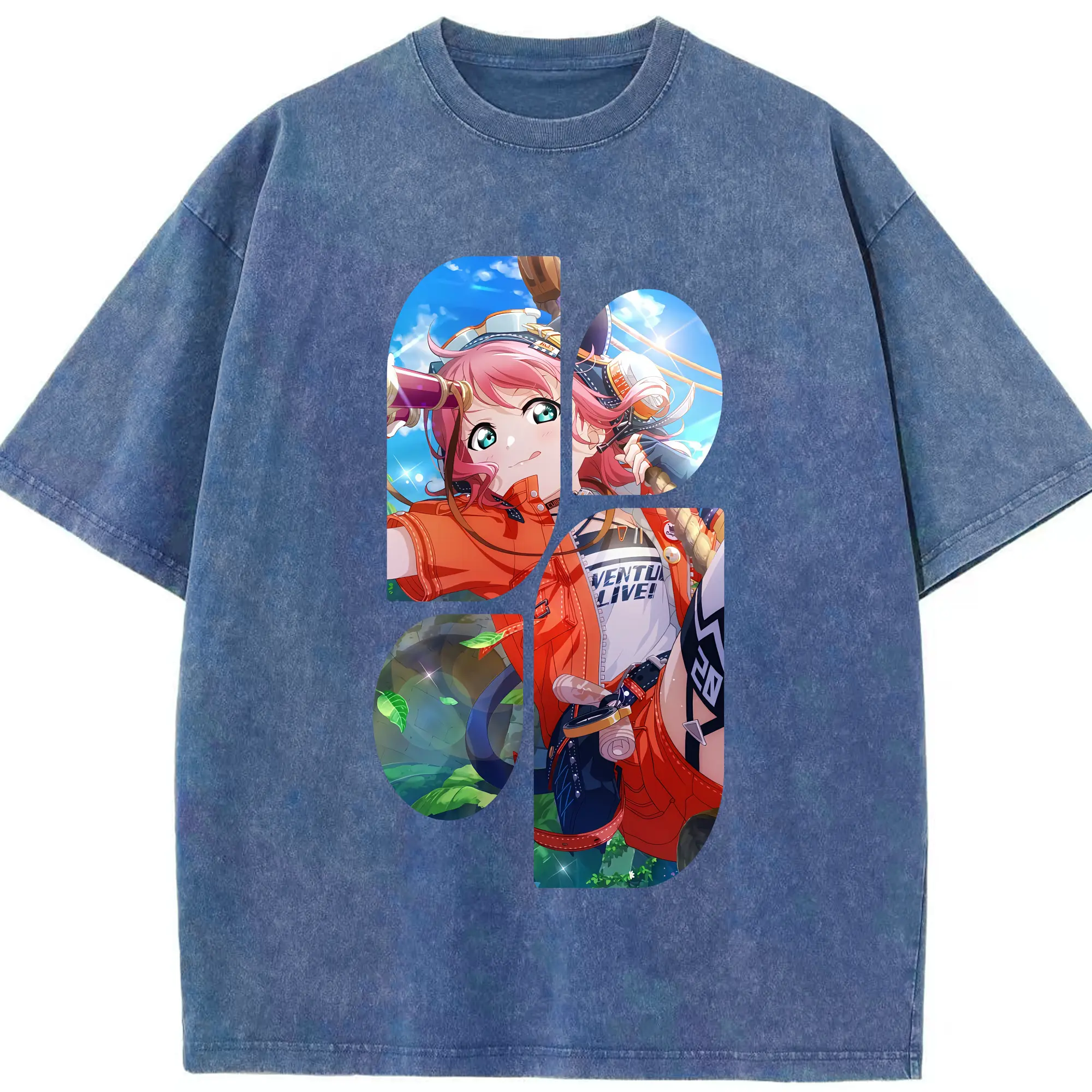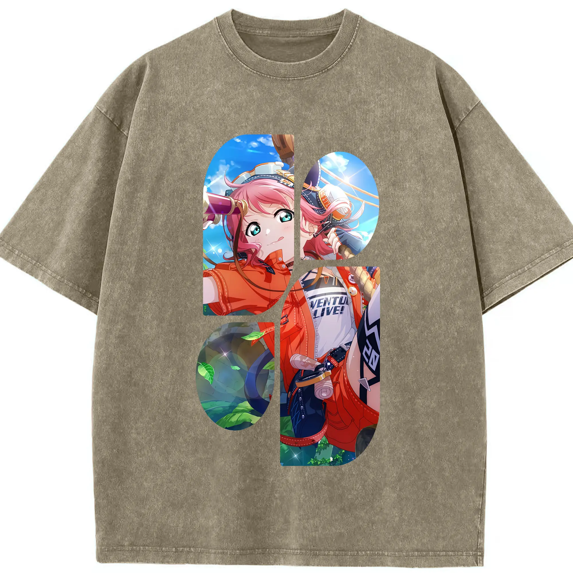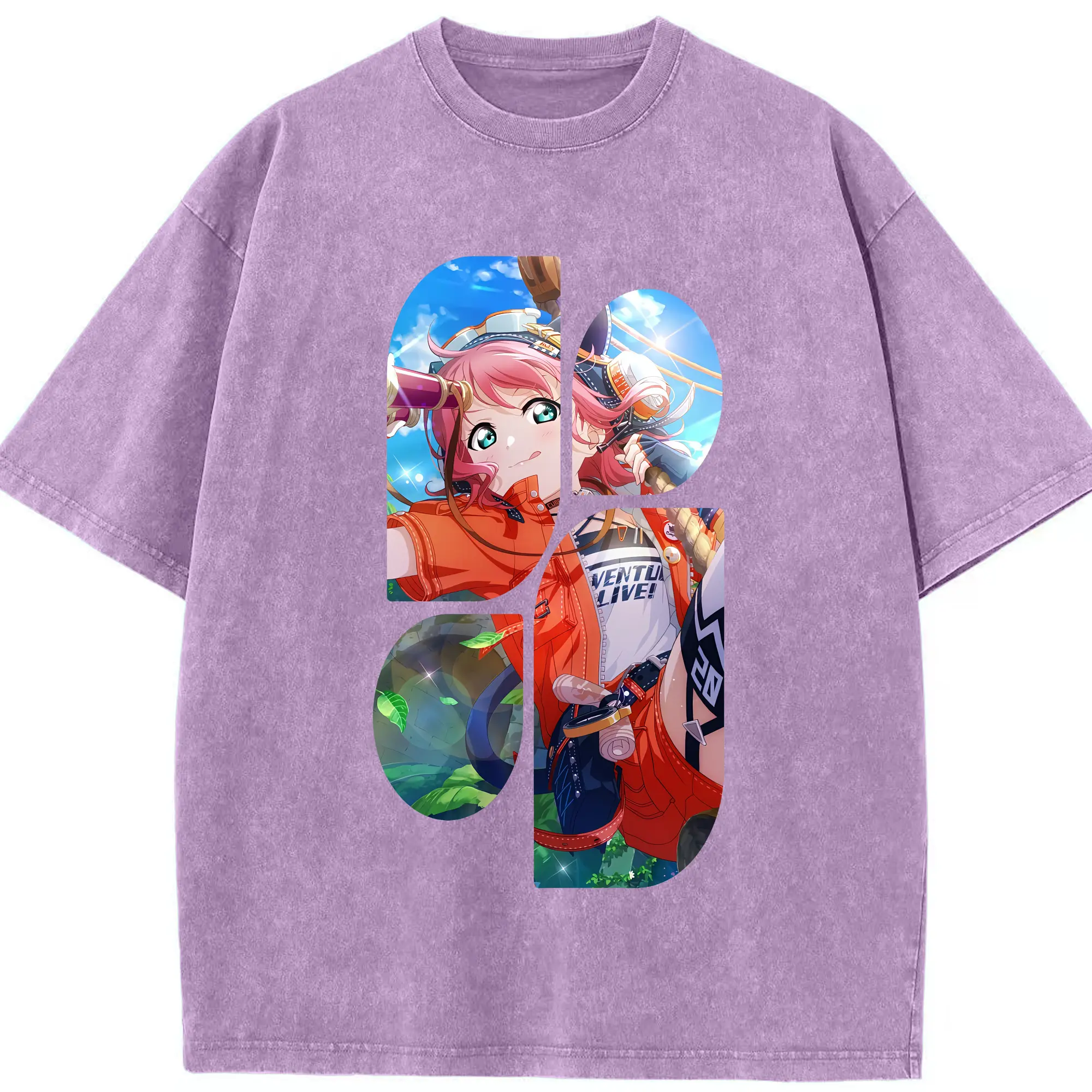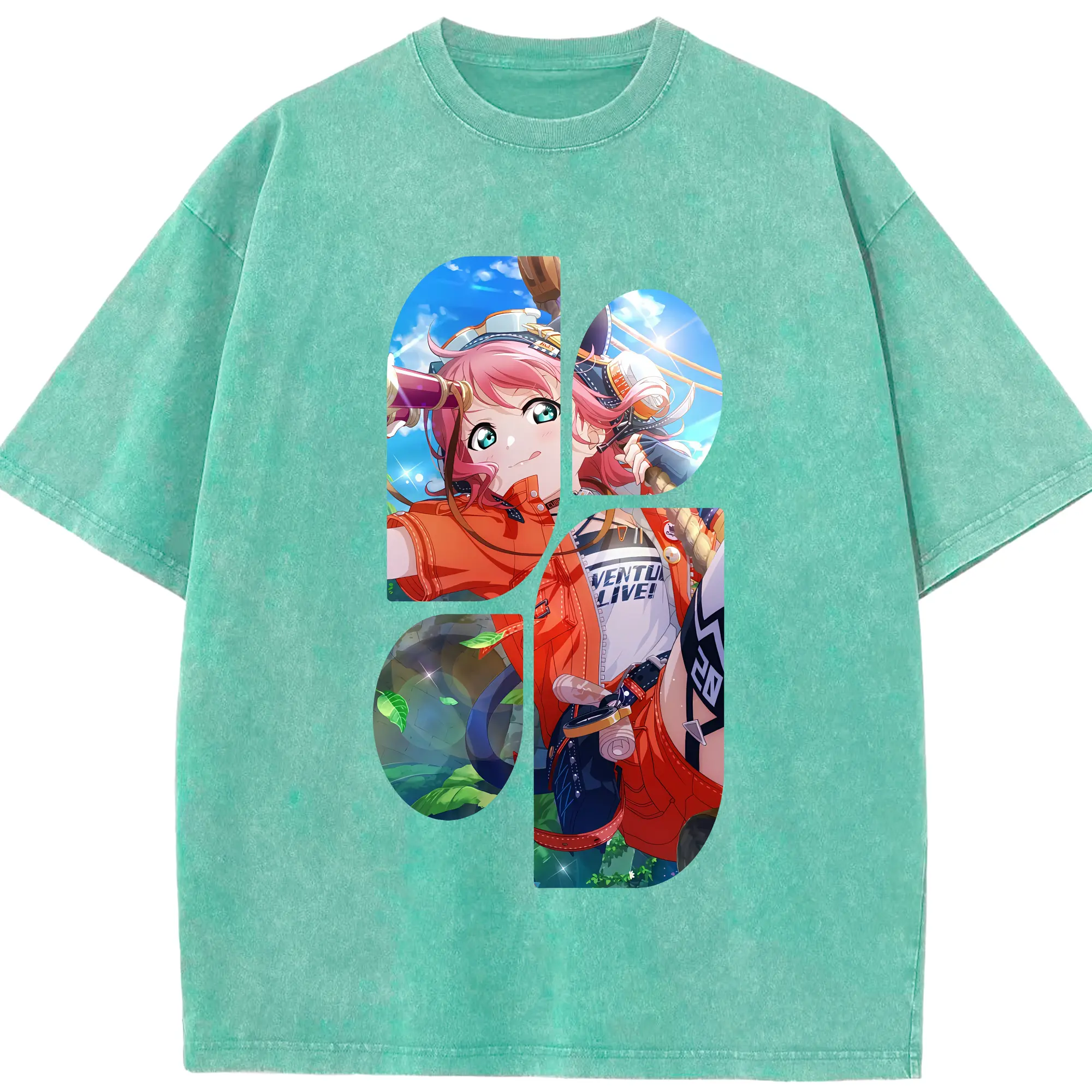 Love Live! グッズ,黒澤ルビィ - 綿100% ヴィンテージ風 半袖Tシャツ ・ 背面プリント ・ 柔らか肌触り ・ 通気性 快適 ・ スポーツ カジュアル 外出用