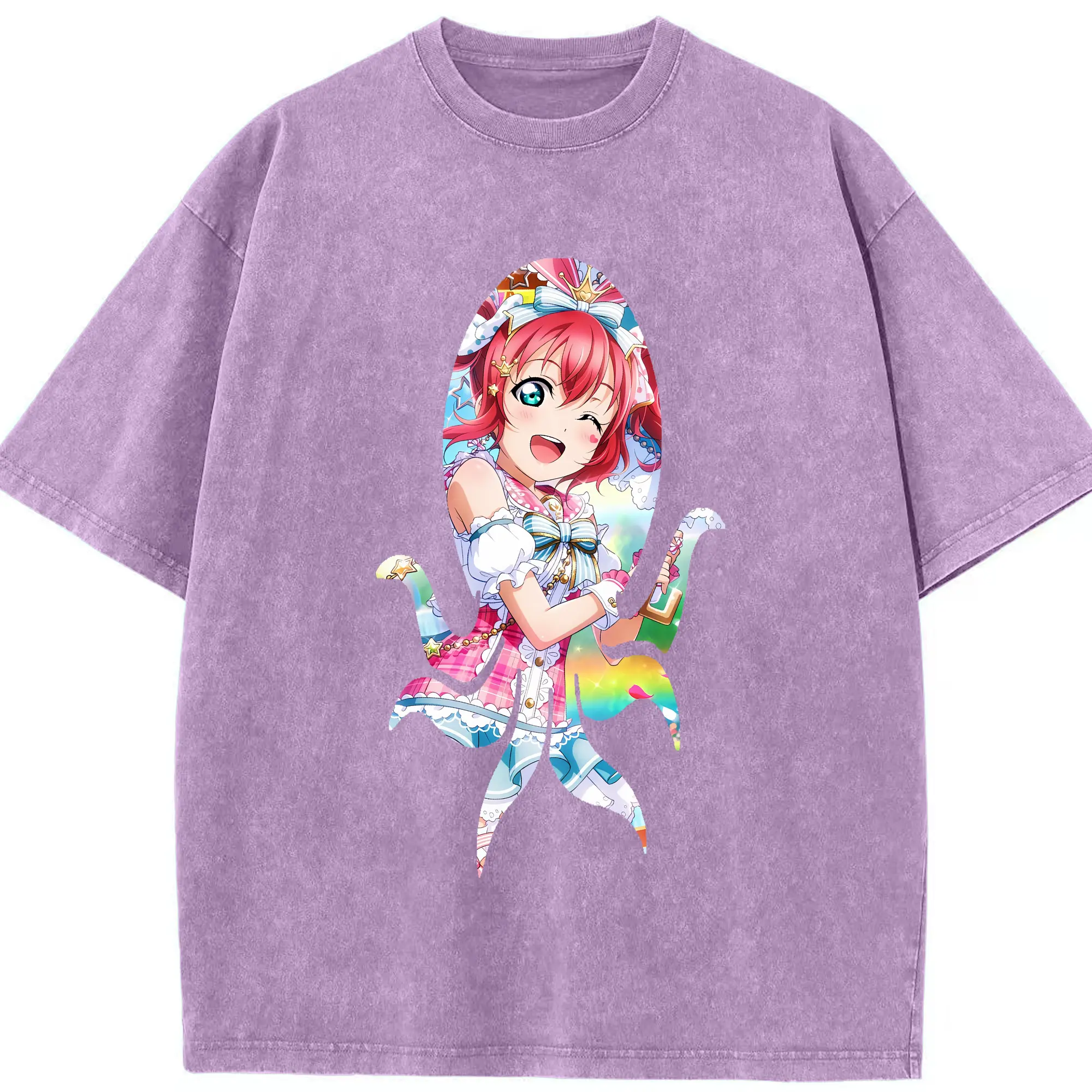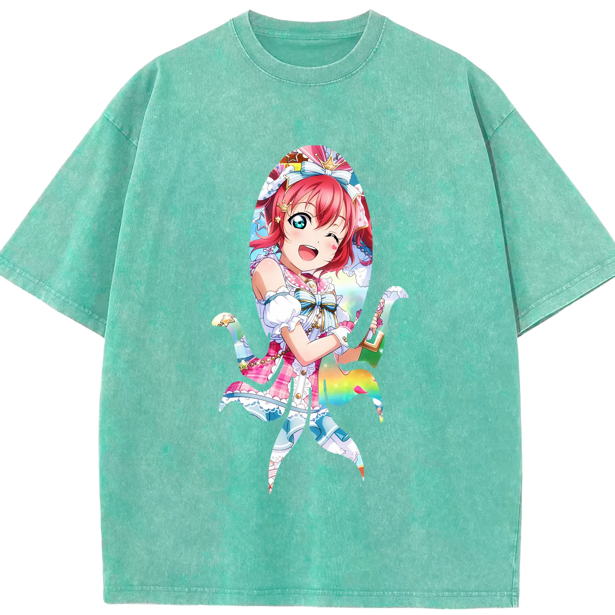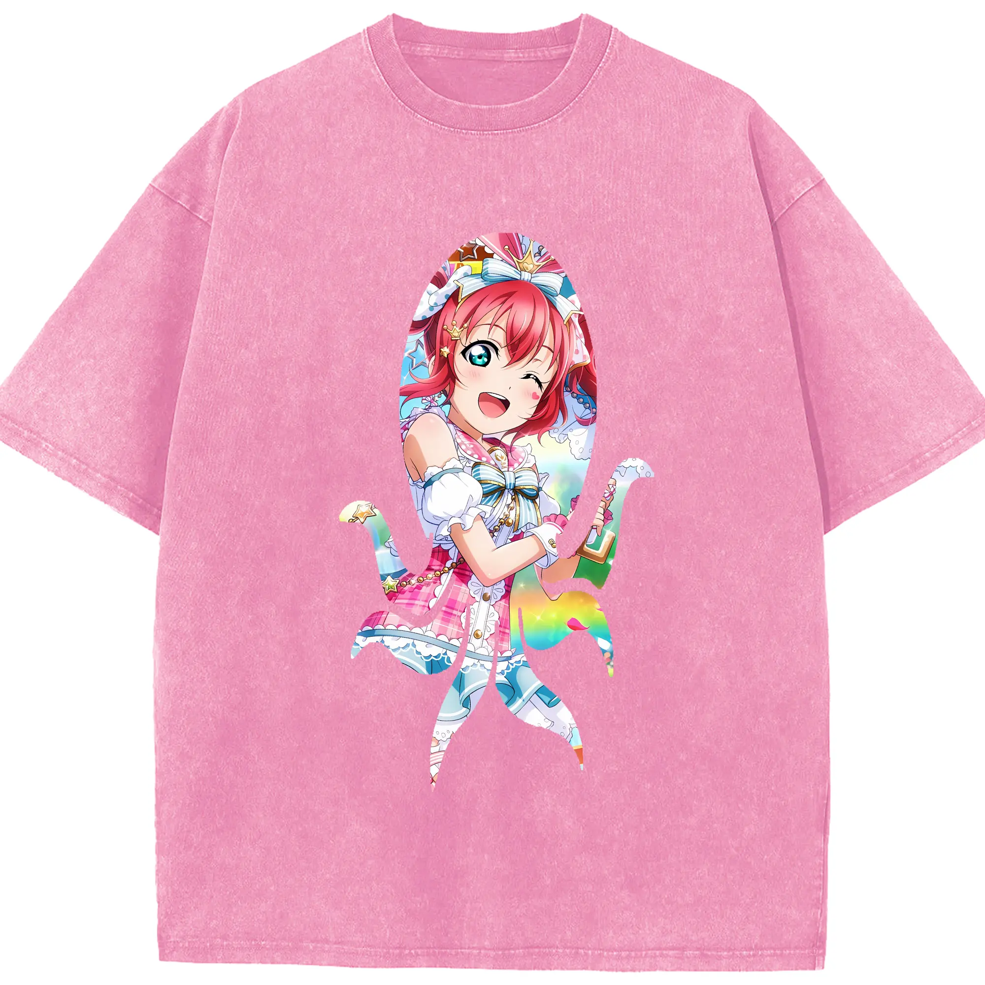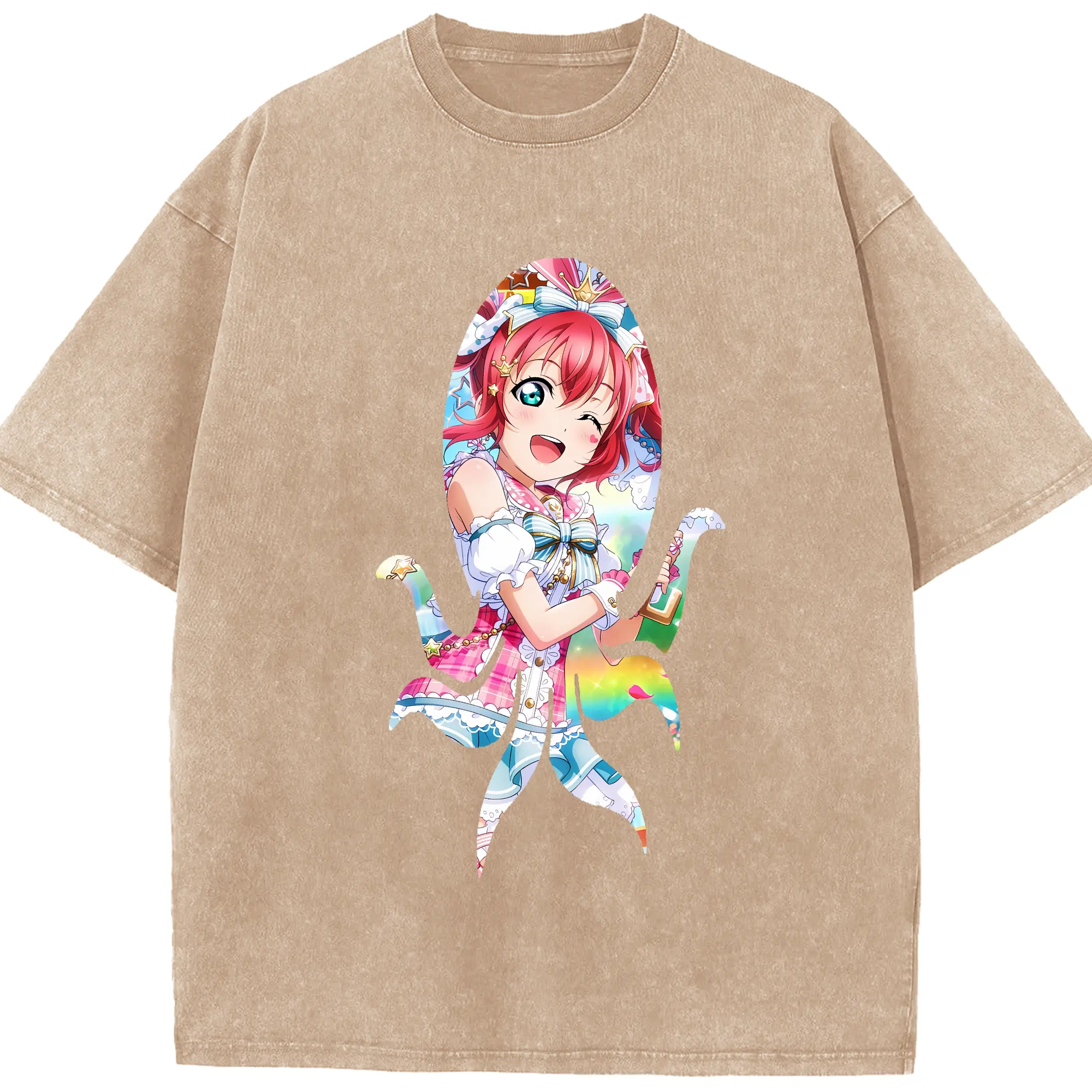 Love Live! グッズ,黒澤ルビィ - 綿100% ヴィンテージ風 半袖Tシャツ ・ 背面プリント ・ 柔らか肌触り ・ 通気性 快適 ・ スポーツ カジュアル 外出用