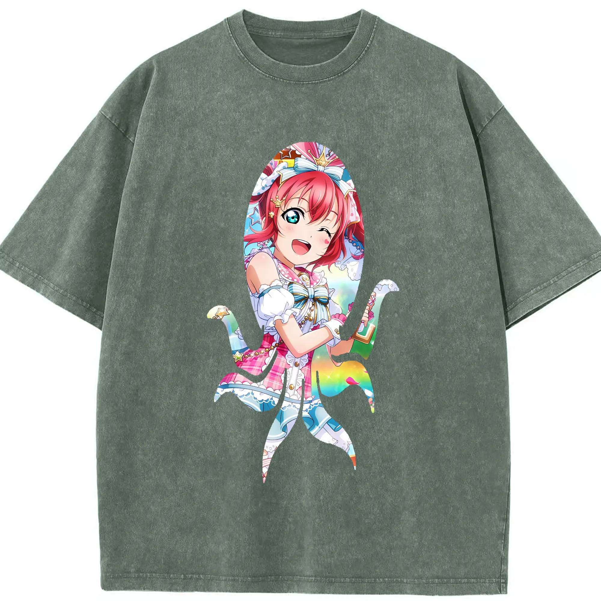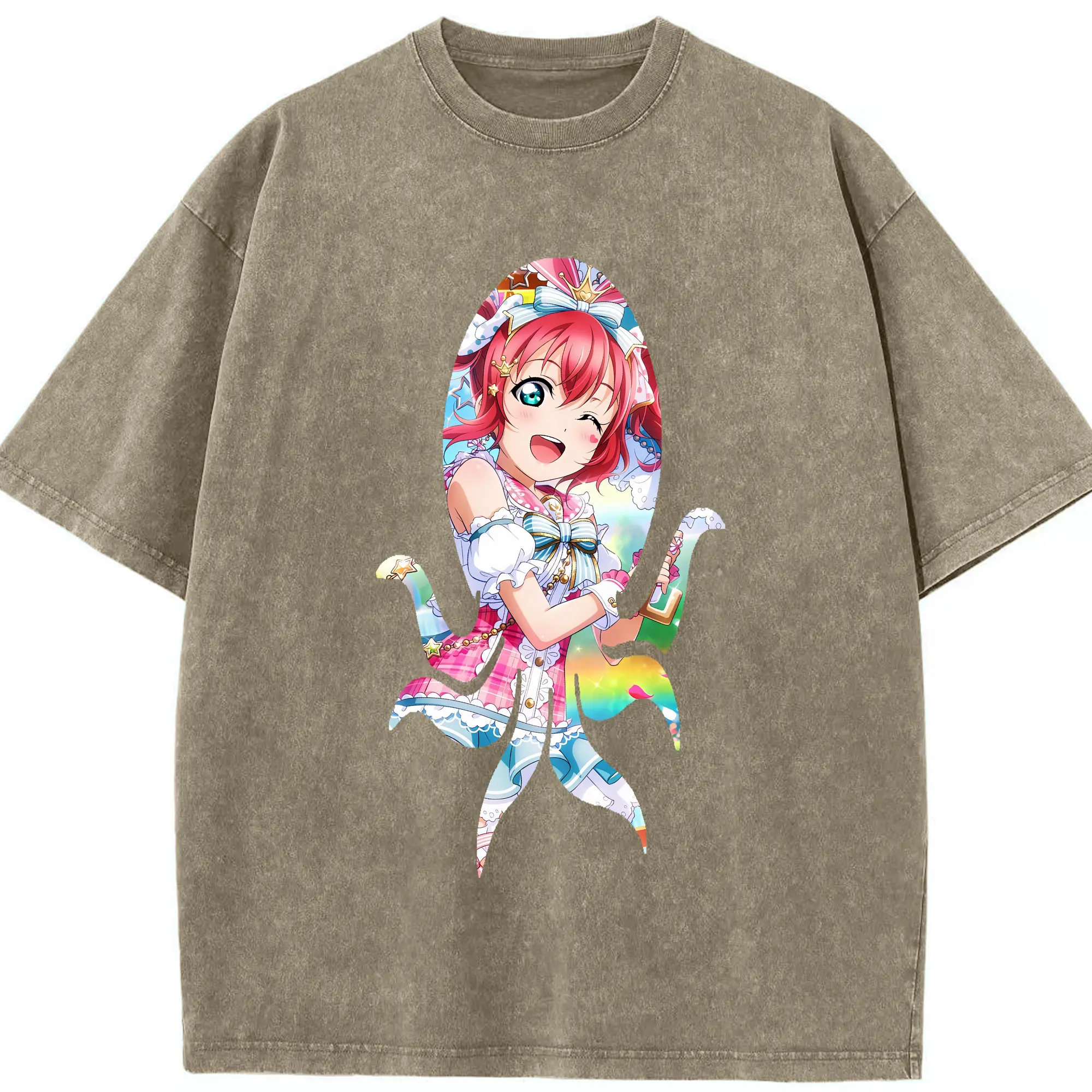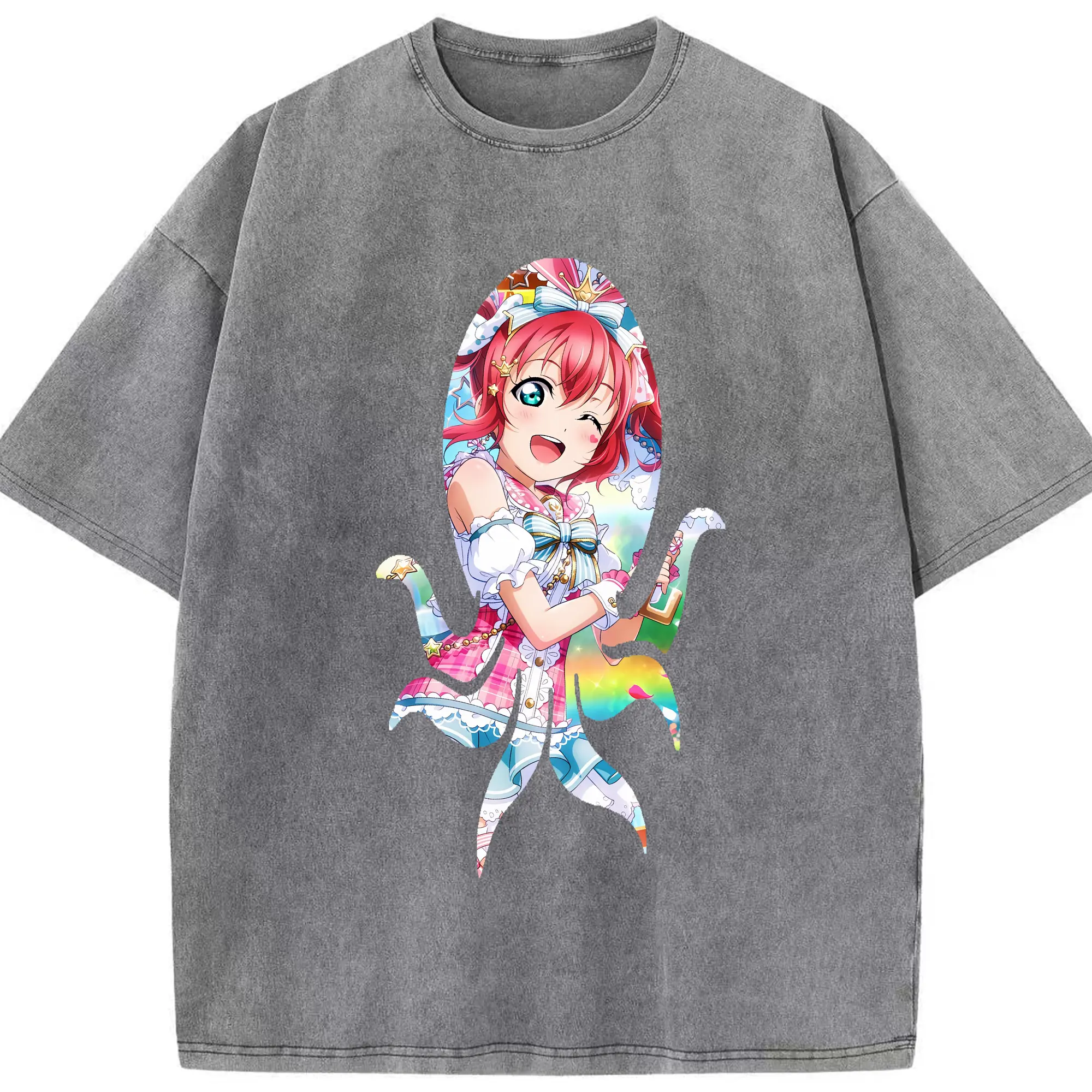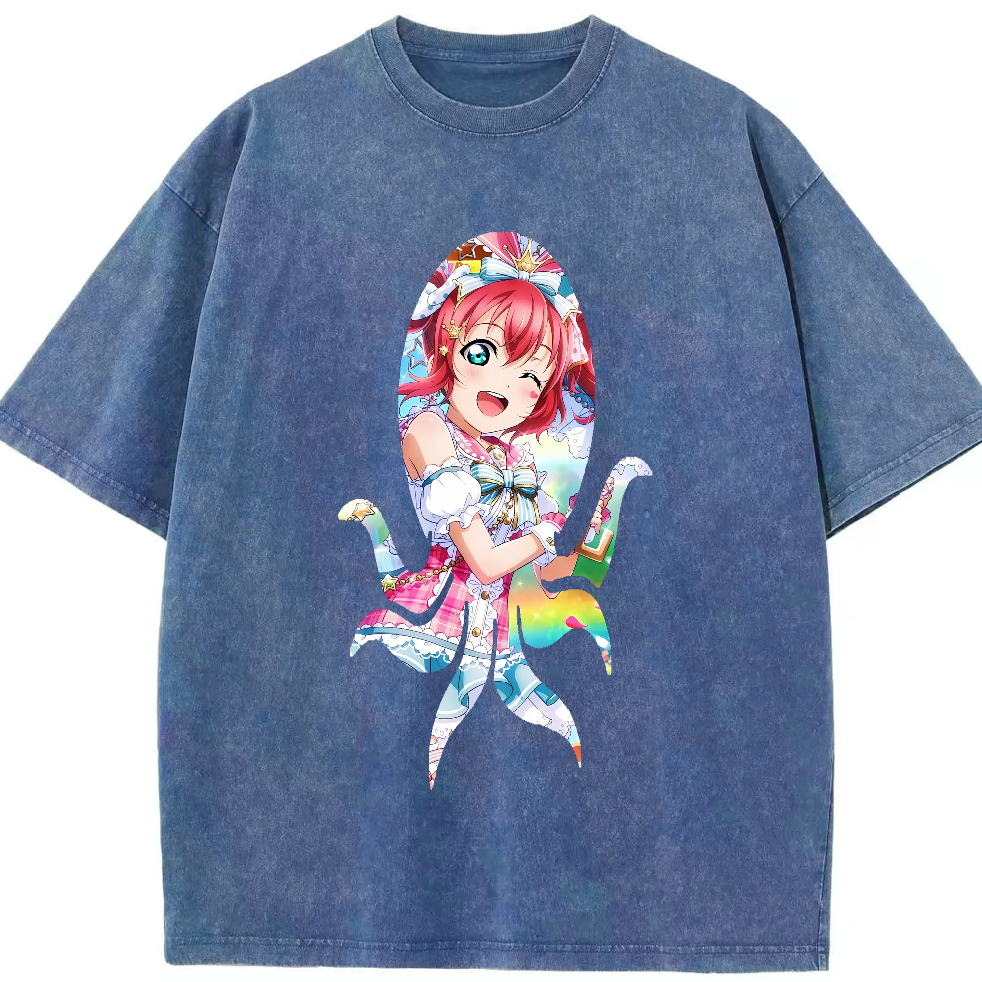 Love Live! グッズ,黒澤ルビィ - 綿100% ヴィンテージ風 半袖Tシャツ ・ 背面プリント ・ 柔らか肌触り ・ 通気性 快適 ・ スポーツ カジュアル 外出用