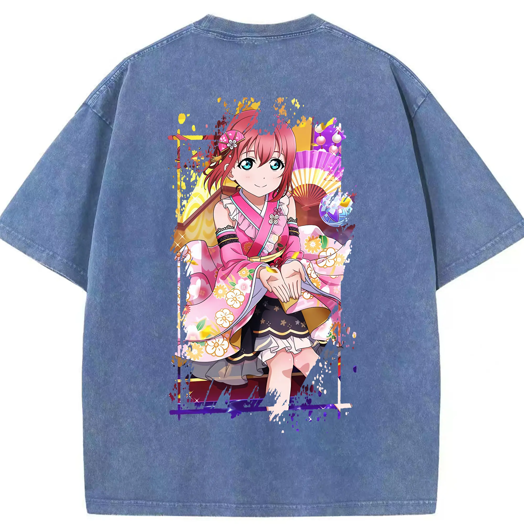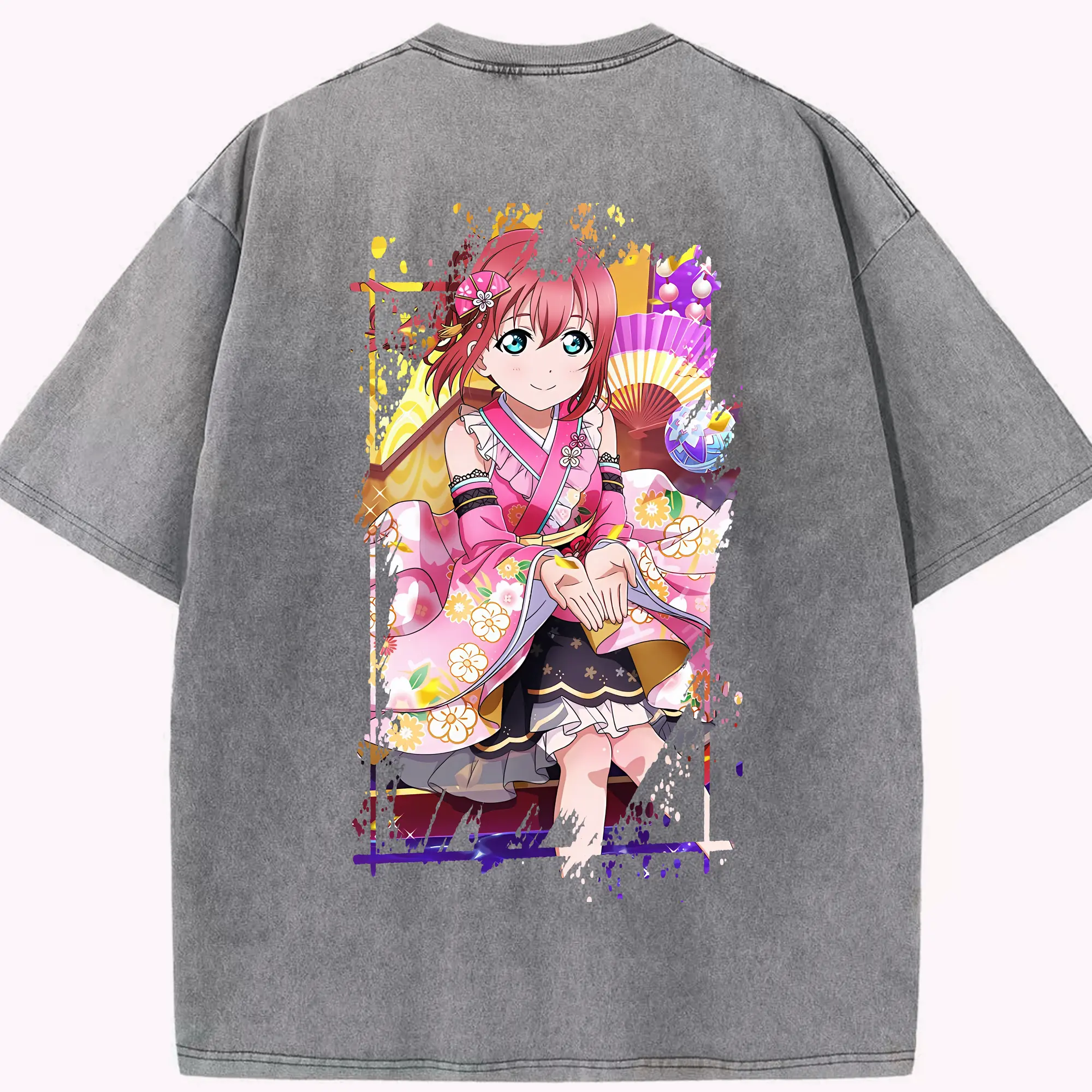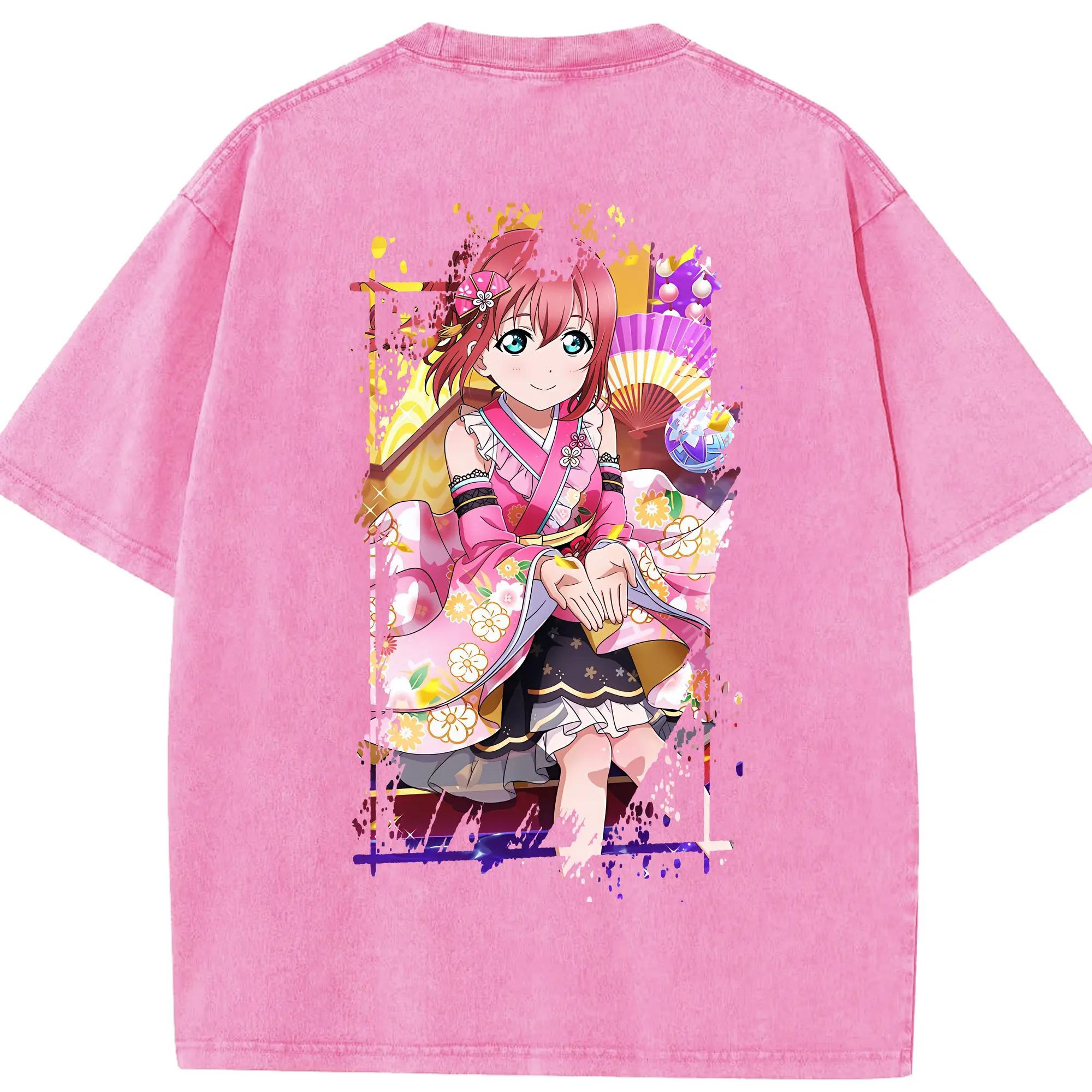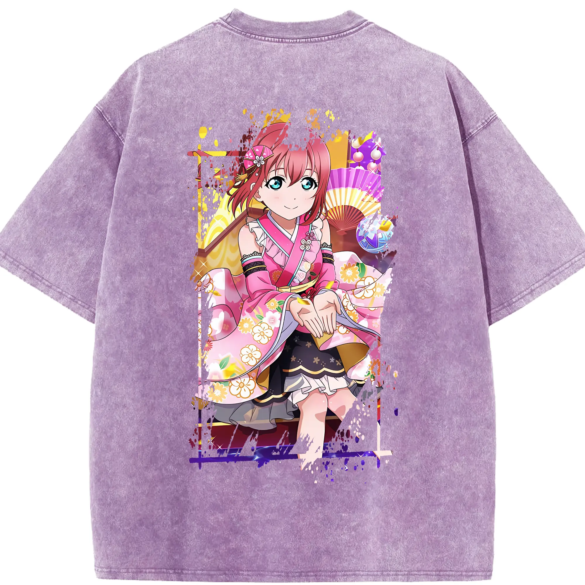 Love Live! グッズ,黒澤ルビィ - 綿100% ヴィンテージ風 半袖Tシャツ ・ フロントプリント ・ 柔らか肌触り ・ 通気性 快適 ・ スポーツ カジュアル 外出用