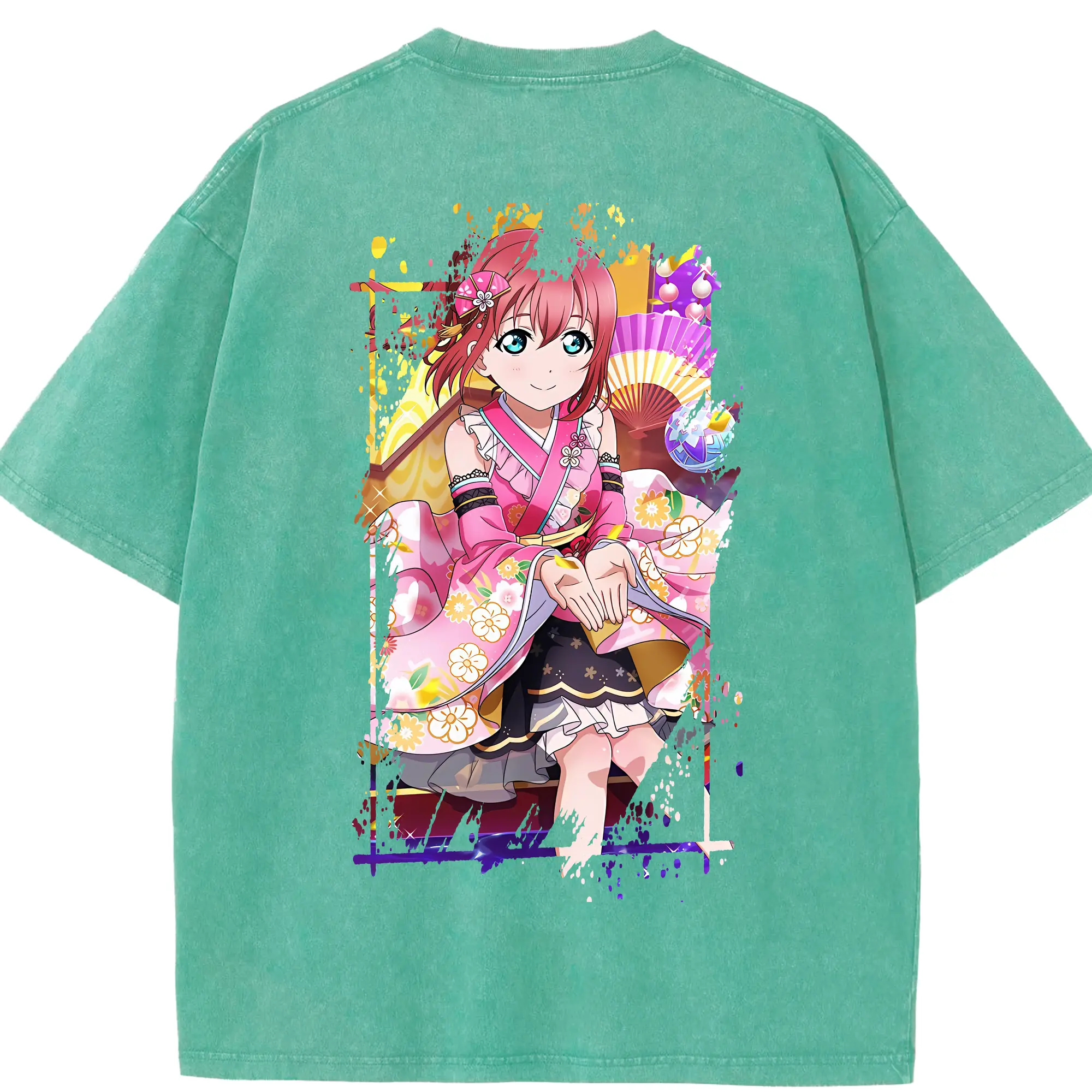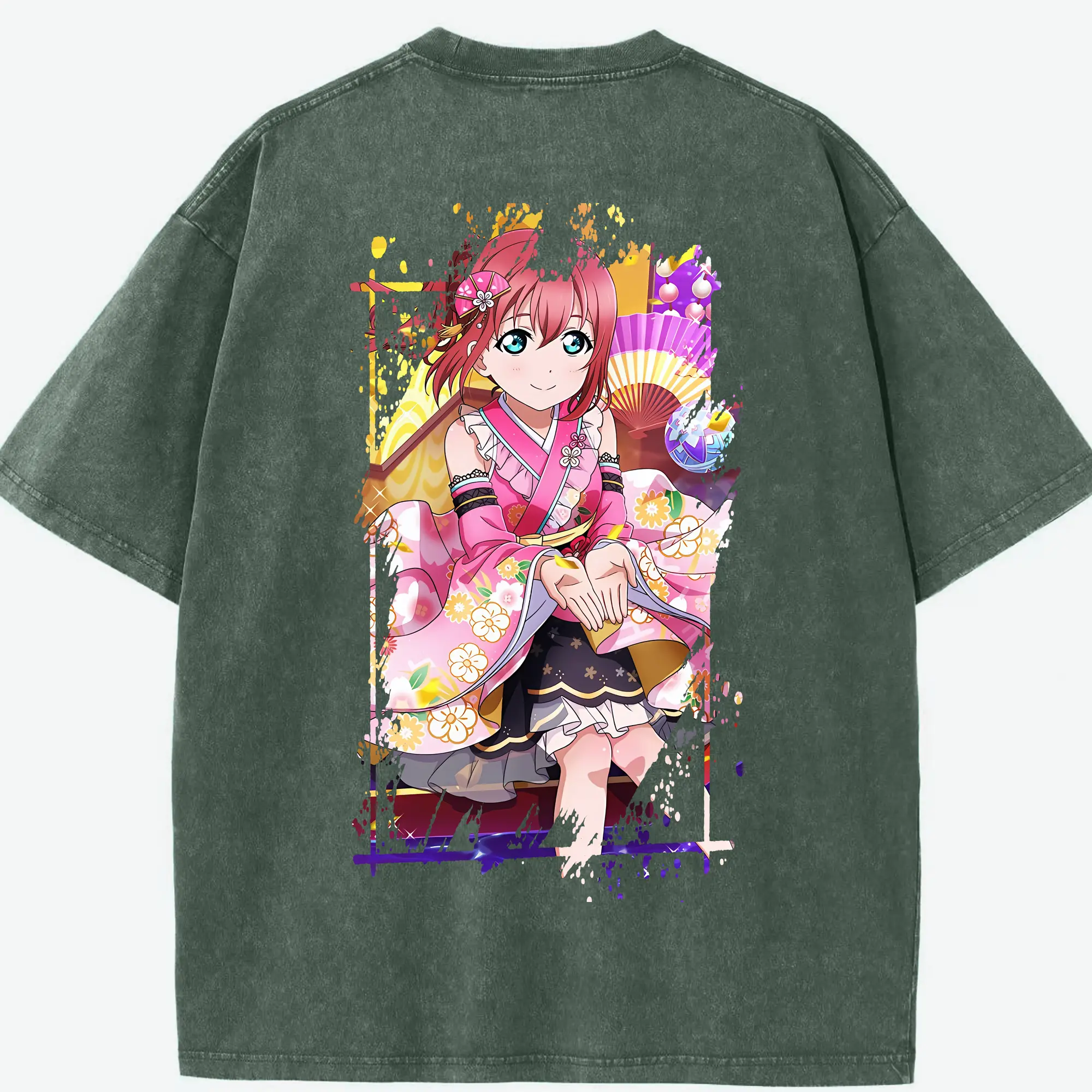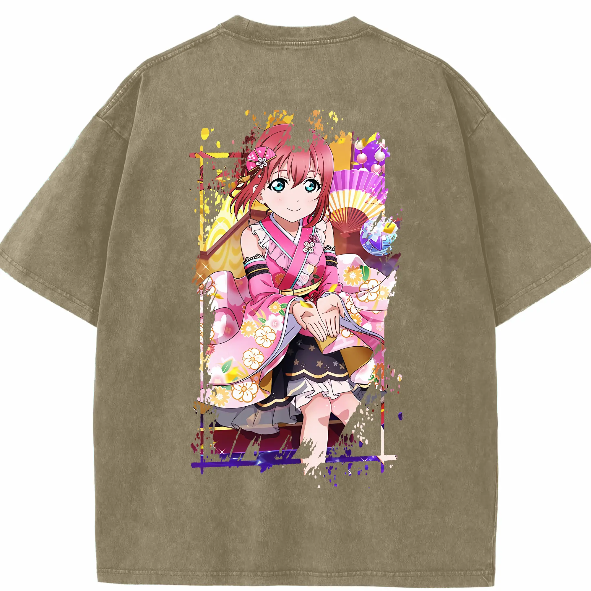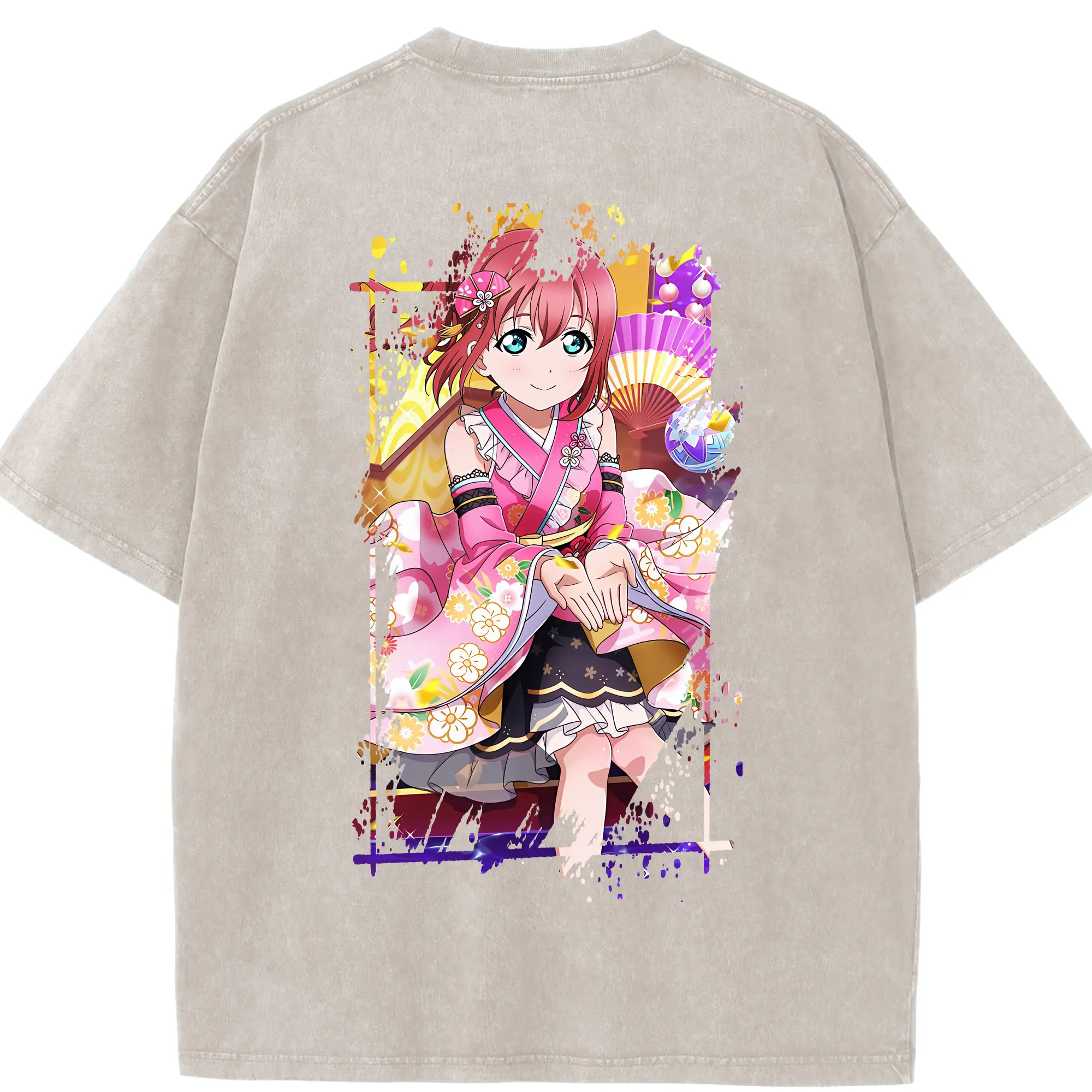 Love Live! グッズ,黒澤ルビィ - 綿100% ヴィンテージ風 半袖Tシャツ ・ フロントプリント ・ 柔らか肌触り ・ 通気性 快適 ・ スポーツ カジュアル 外出用