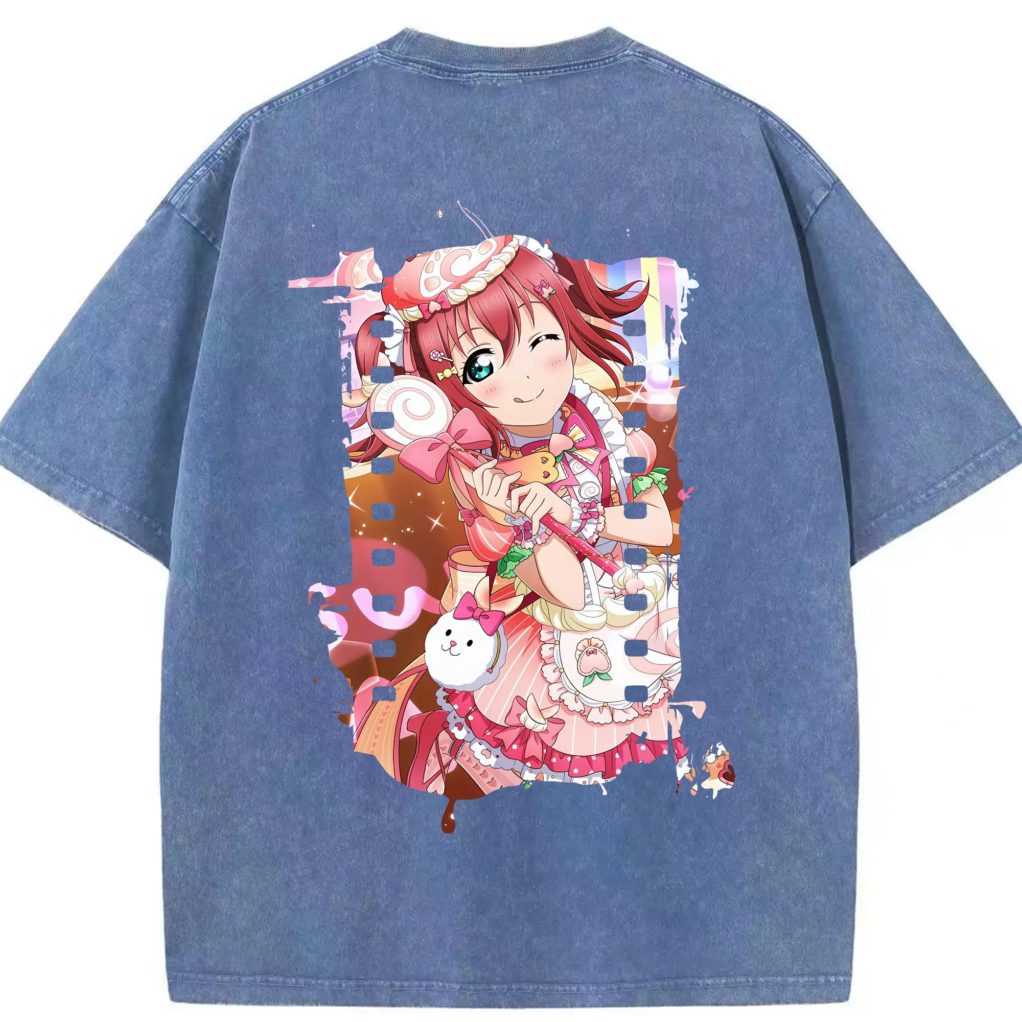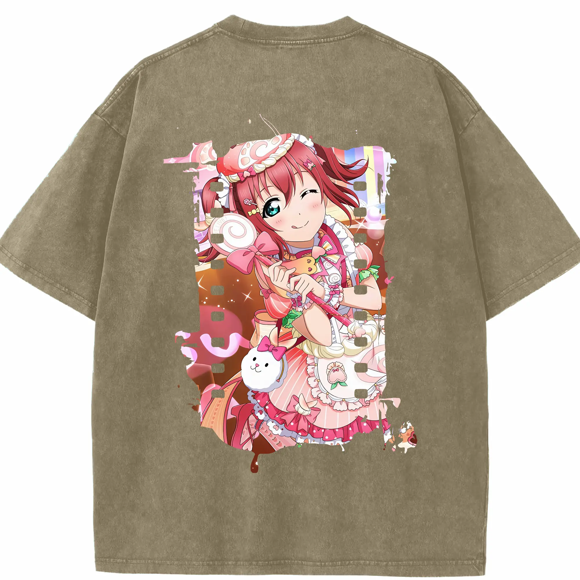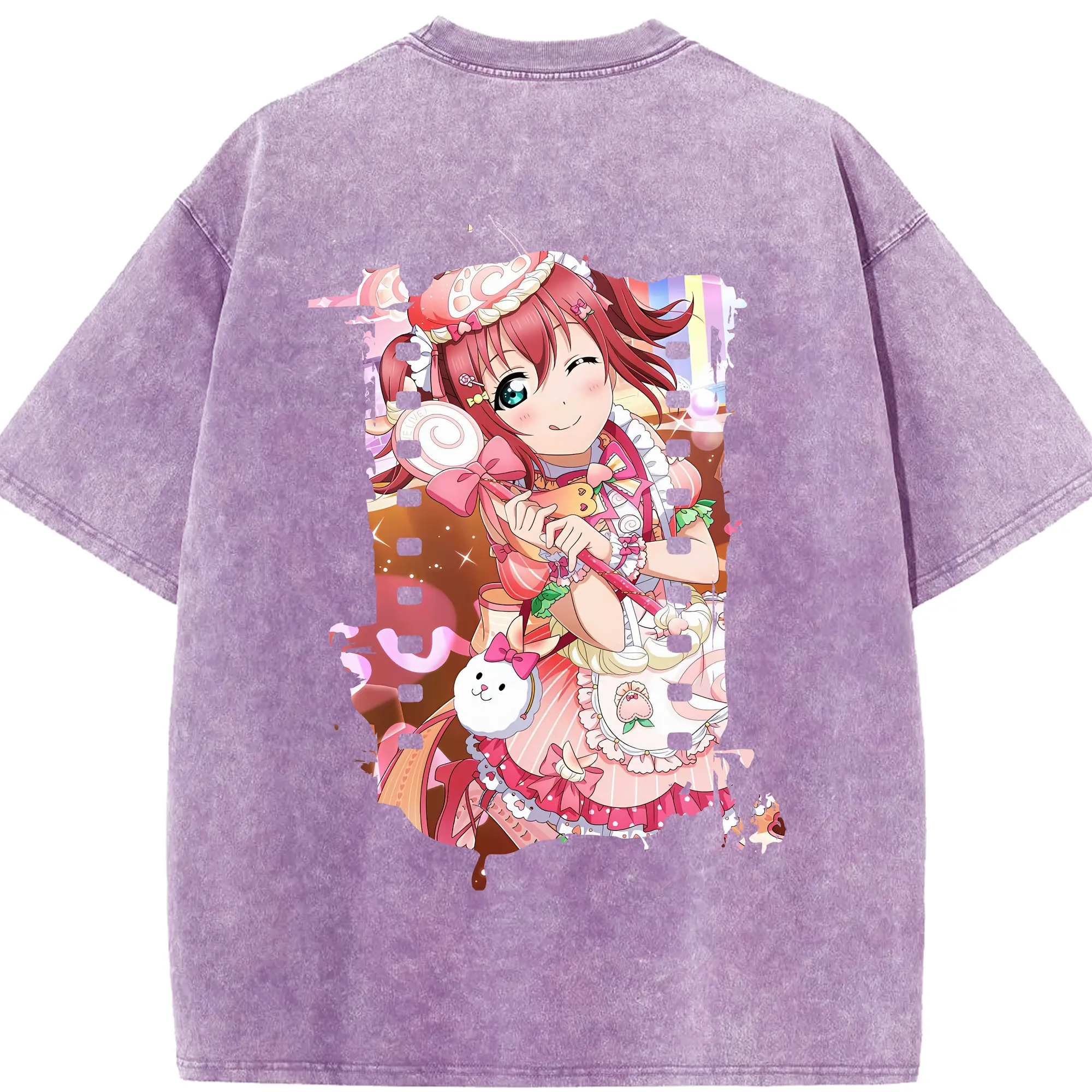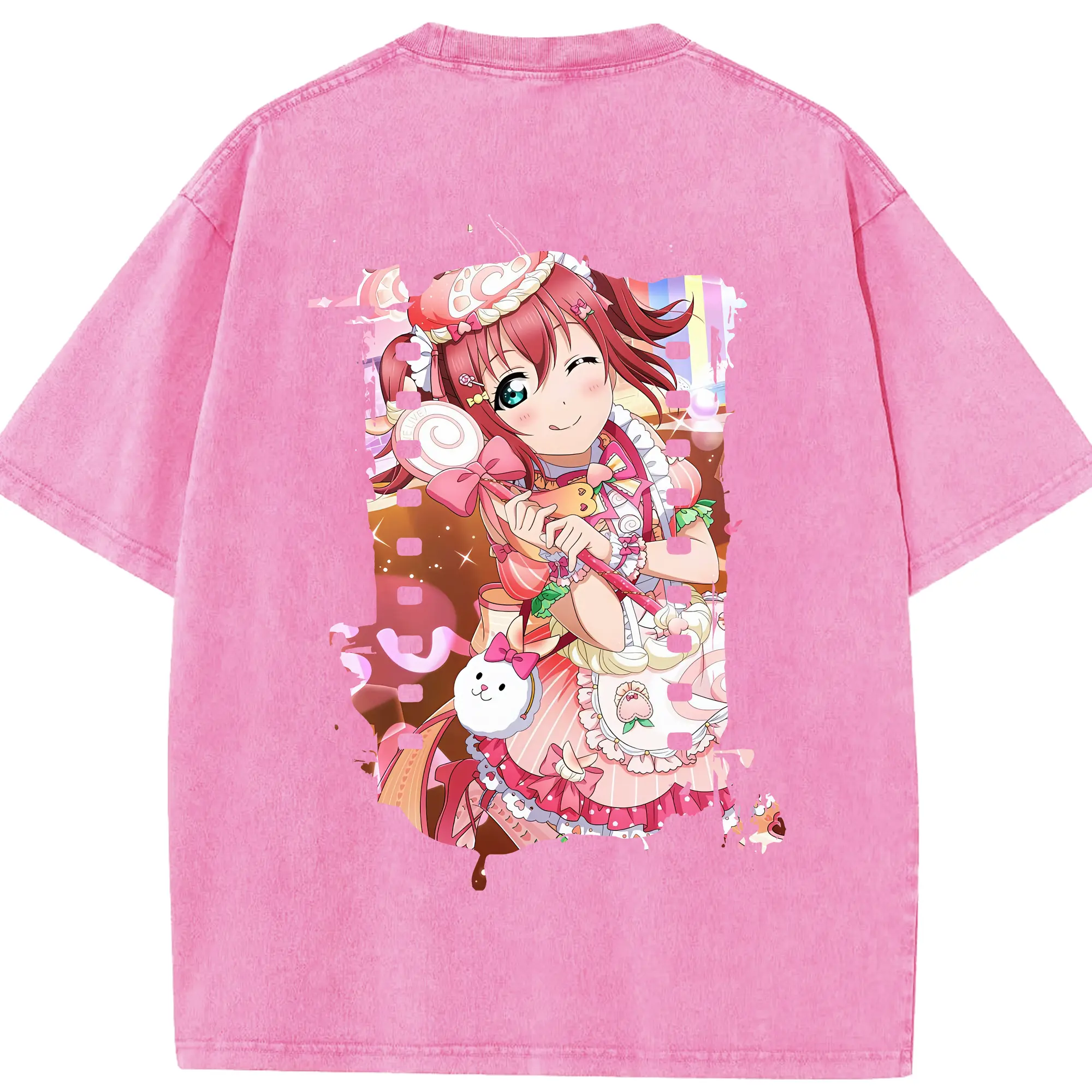 Love Live! グッズ,黒澤ルビィ - 綿100% ヴィンテージ風 半袖Tシャツ ・ フロントプリント ・ 柔らか肌触り ・ 通気性 快適 ・ スポーツ カジュアル 外出用