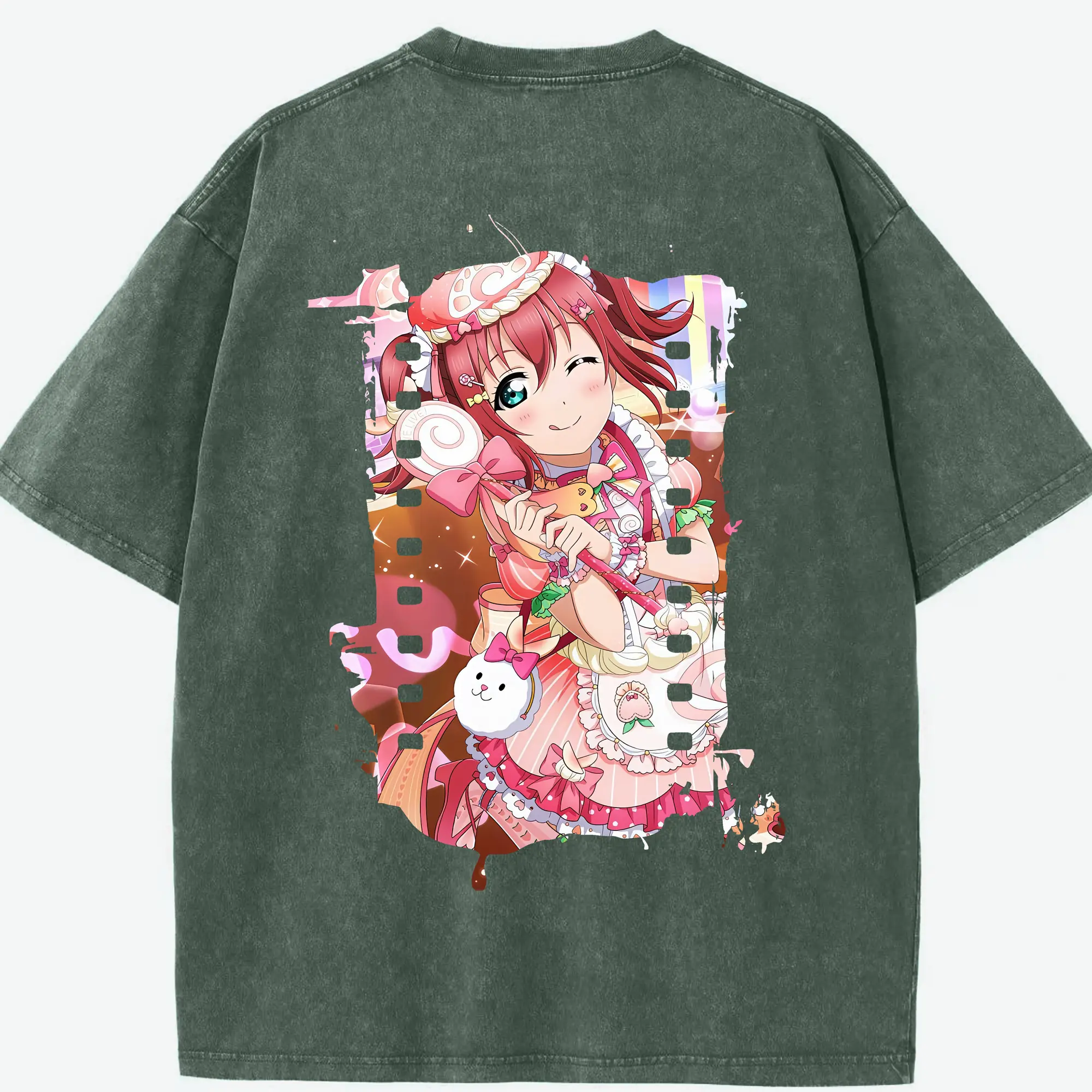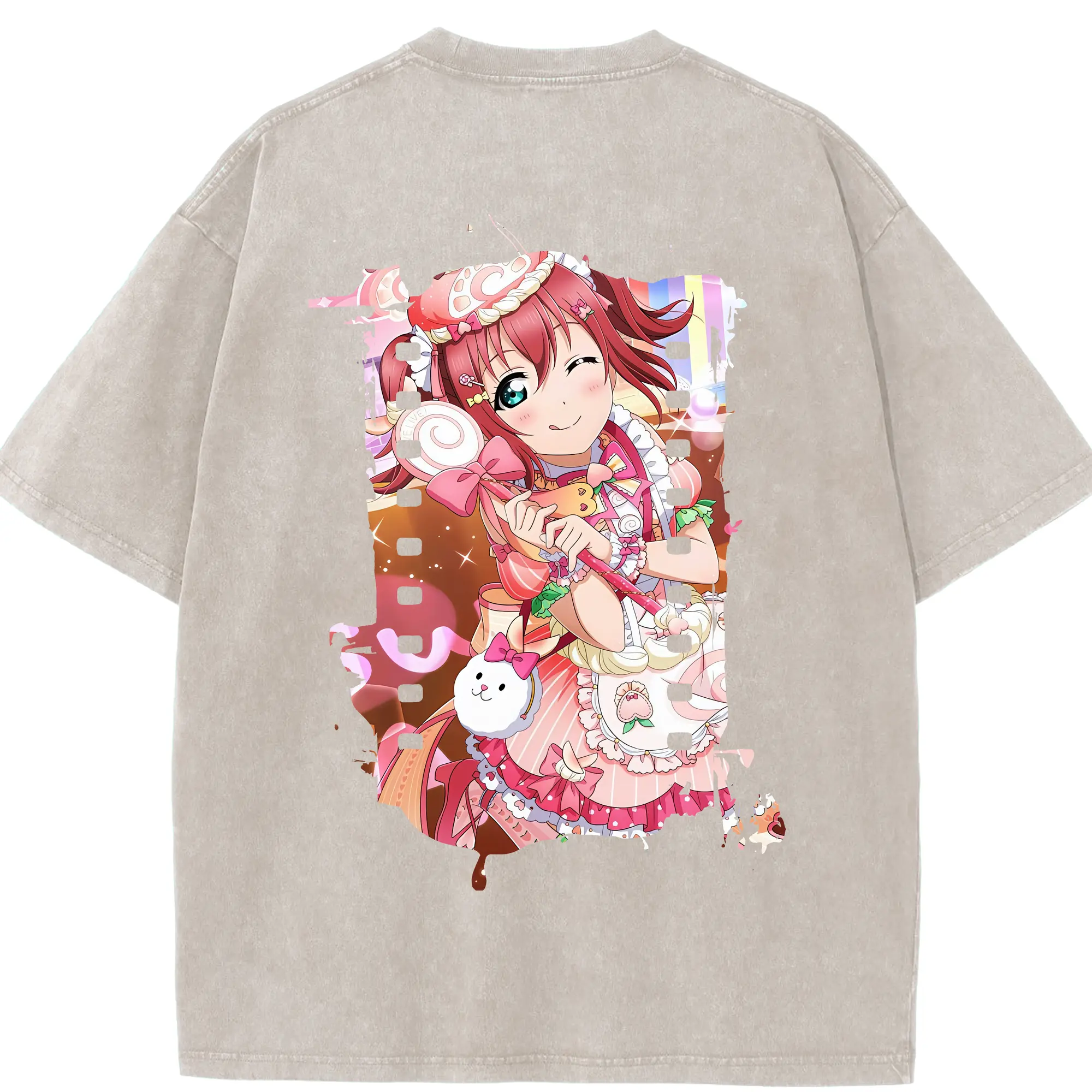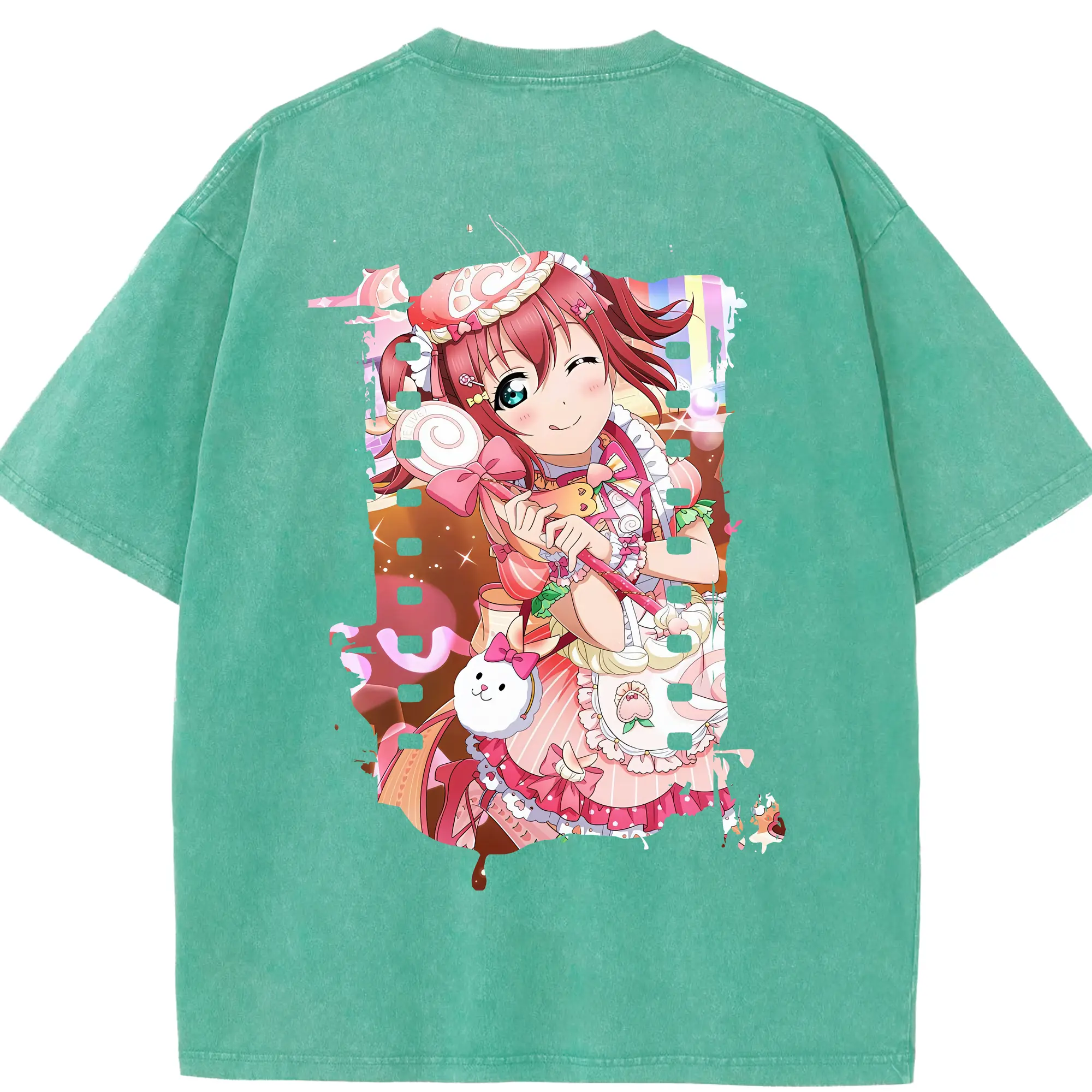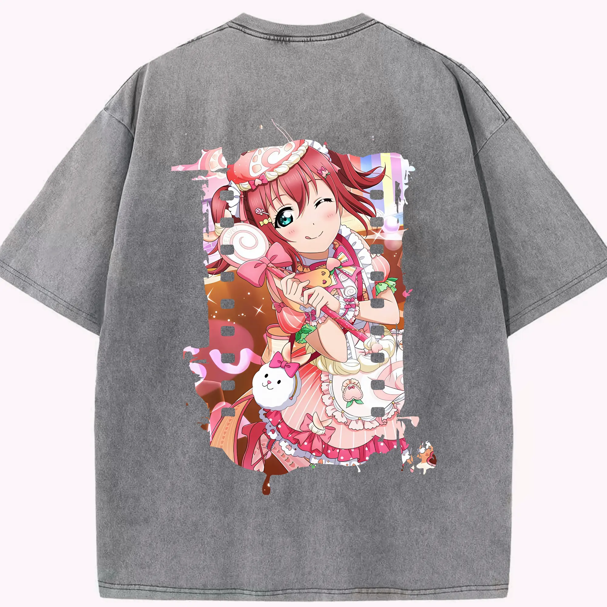 Love Live! グッズ,黒澤ルビィ - 綿100% ヴィンテージ風 半袖Tシャツ ・ フロントプリント ・ 柔らか肌触り ・ 通気性 快適 ・ スポーツ カジュアル 外出用