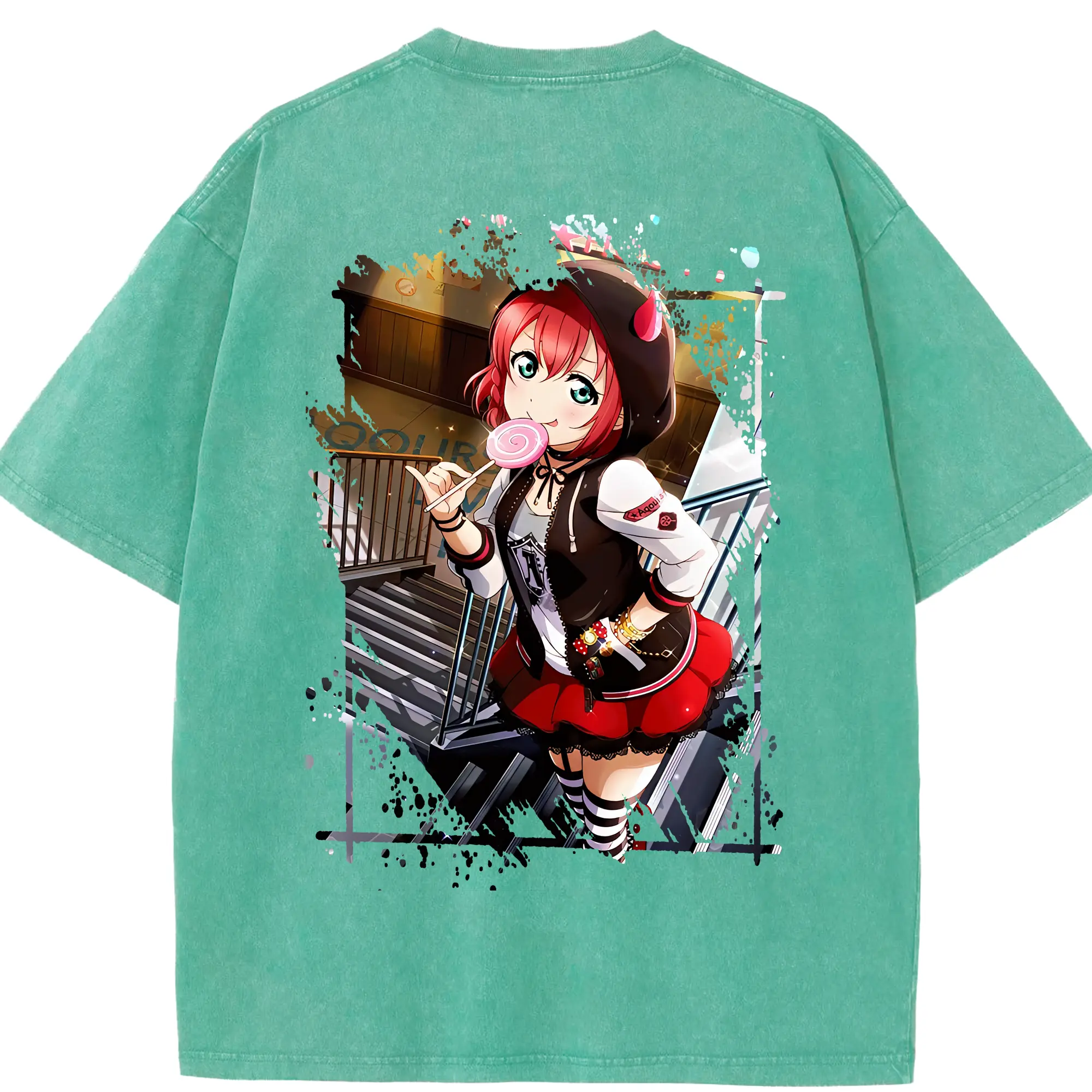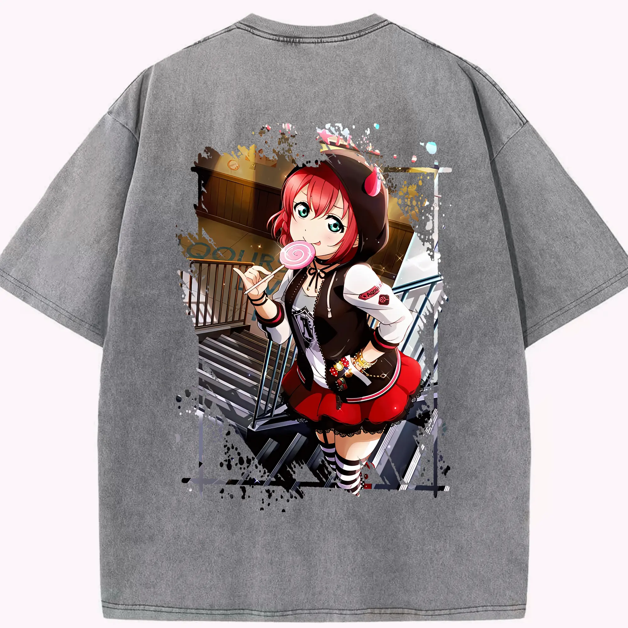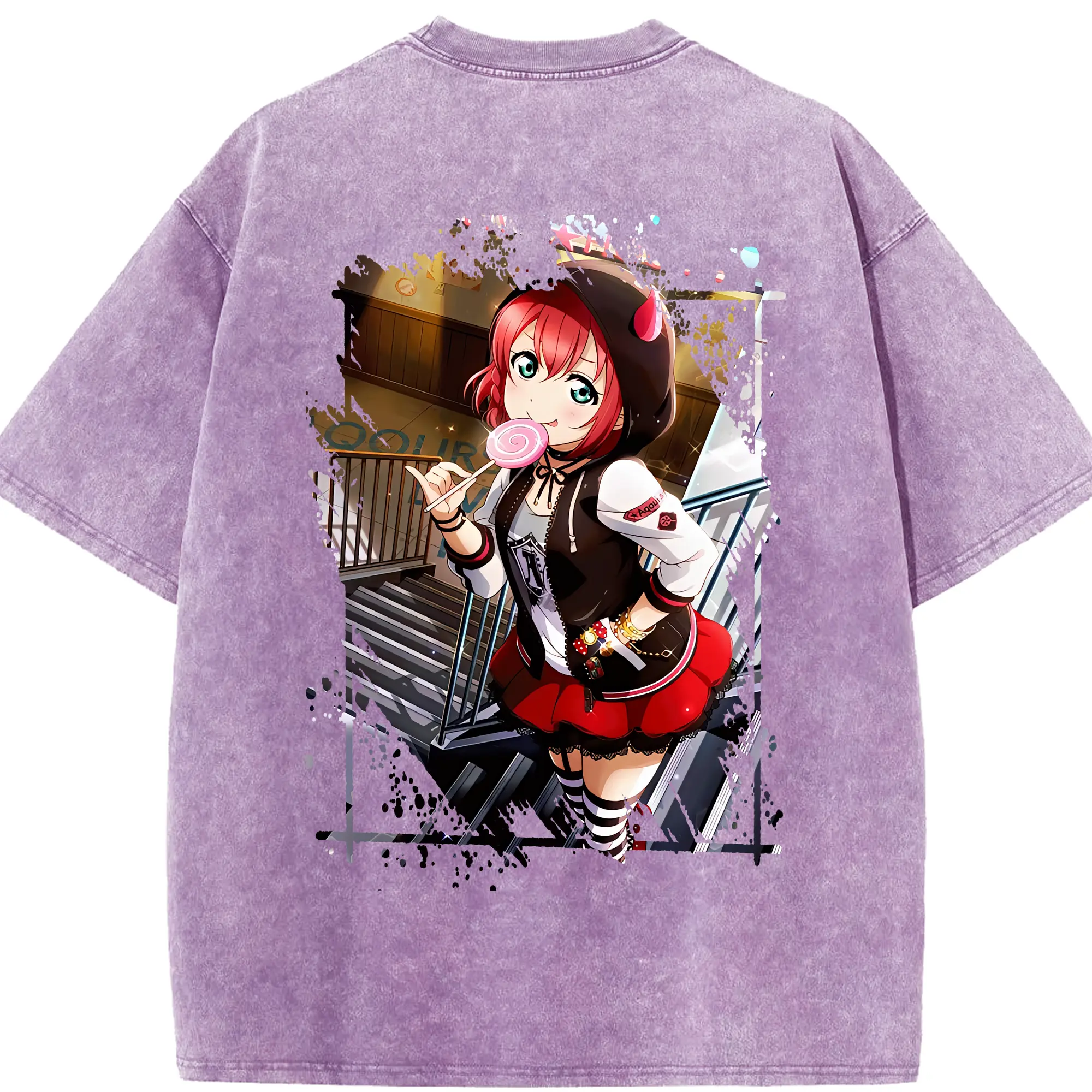 Love Live! グッズ,黒澤ルビィ - 綿100% ヴィンテージ風 半袖Tシャツ ・ フロントプリント ・ 柔らか肌触り ・ 通気性 快適 ・ スポーツ カジュアル 外出用