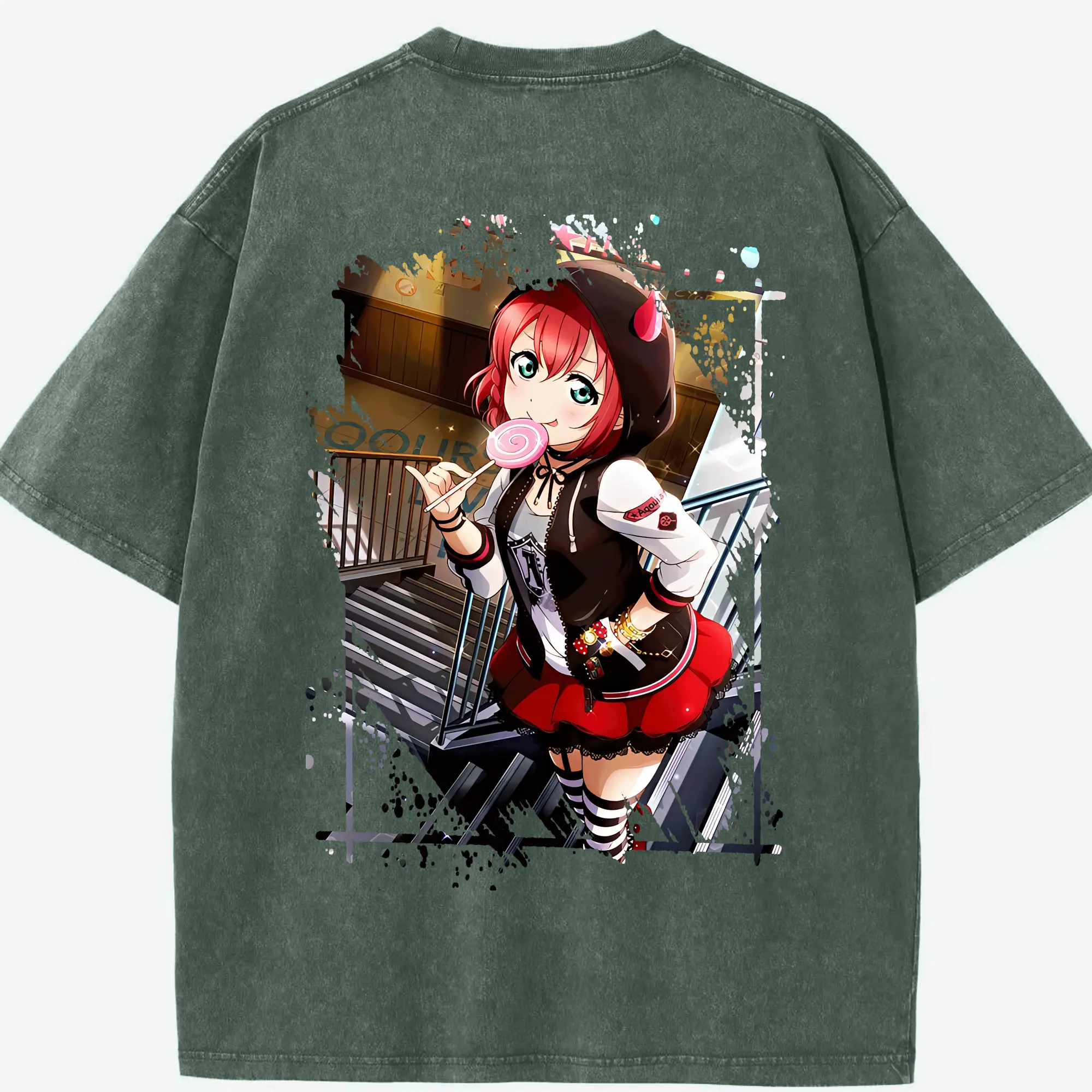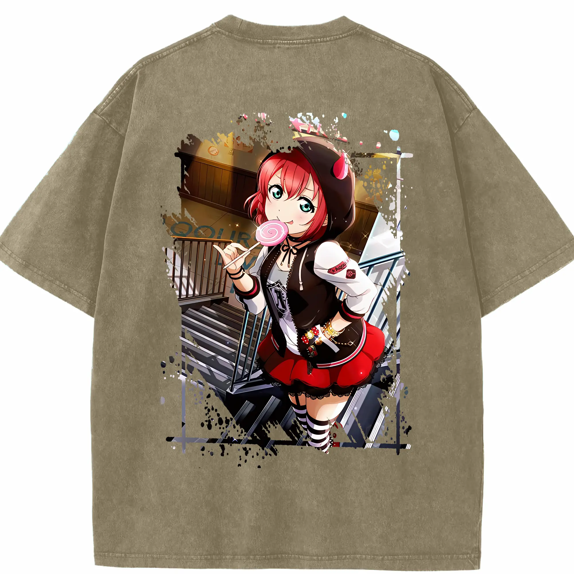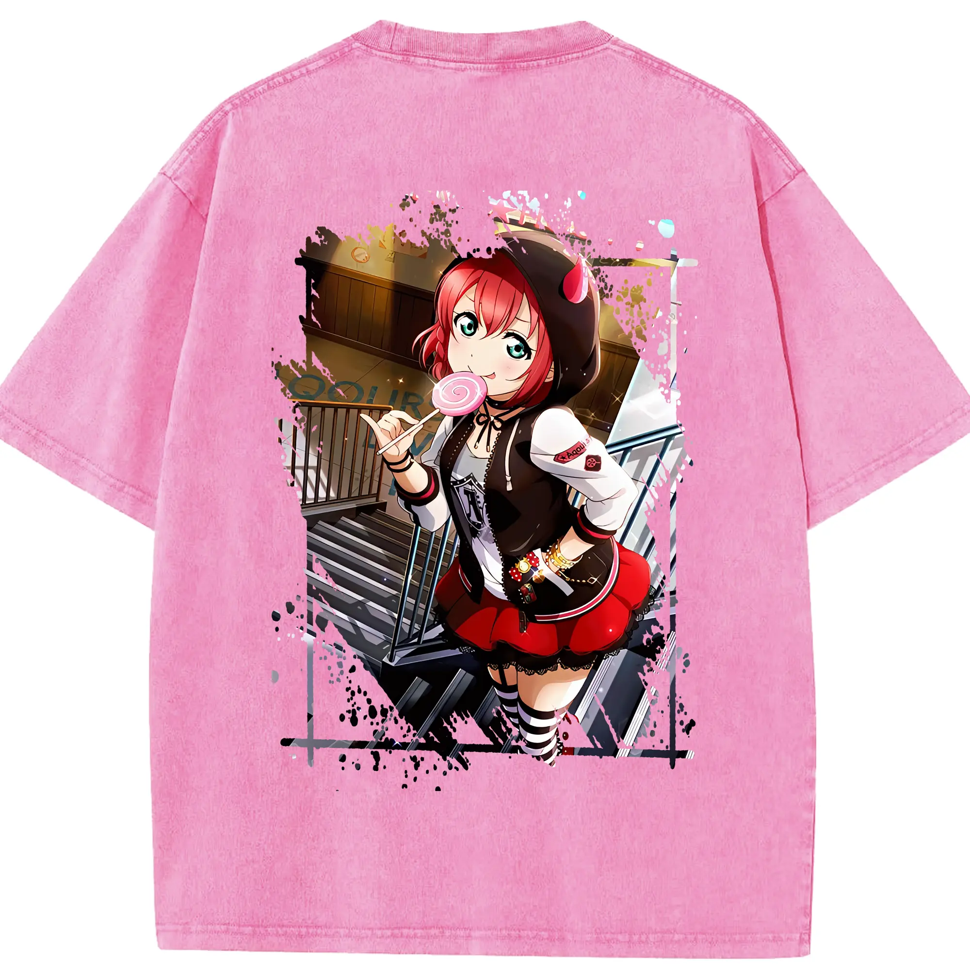 Love Live! グッズ,黒澤ルビィ - 綿100% ヴィンテージ風 半袖Tシャツ ・ フロントプリント ・ 柔らか肌触り ・ 通気性 快適 ・ スポーツ カジュアル 外出用