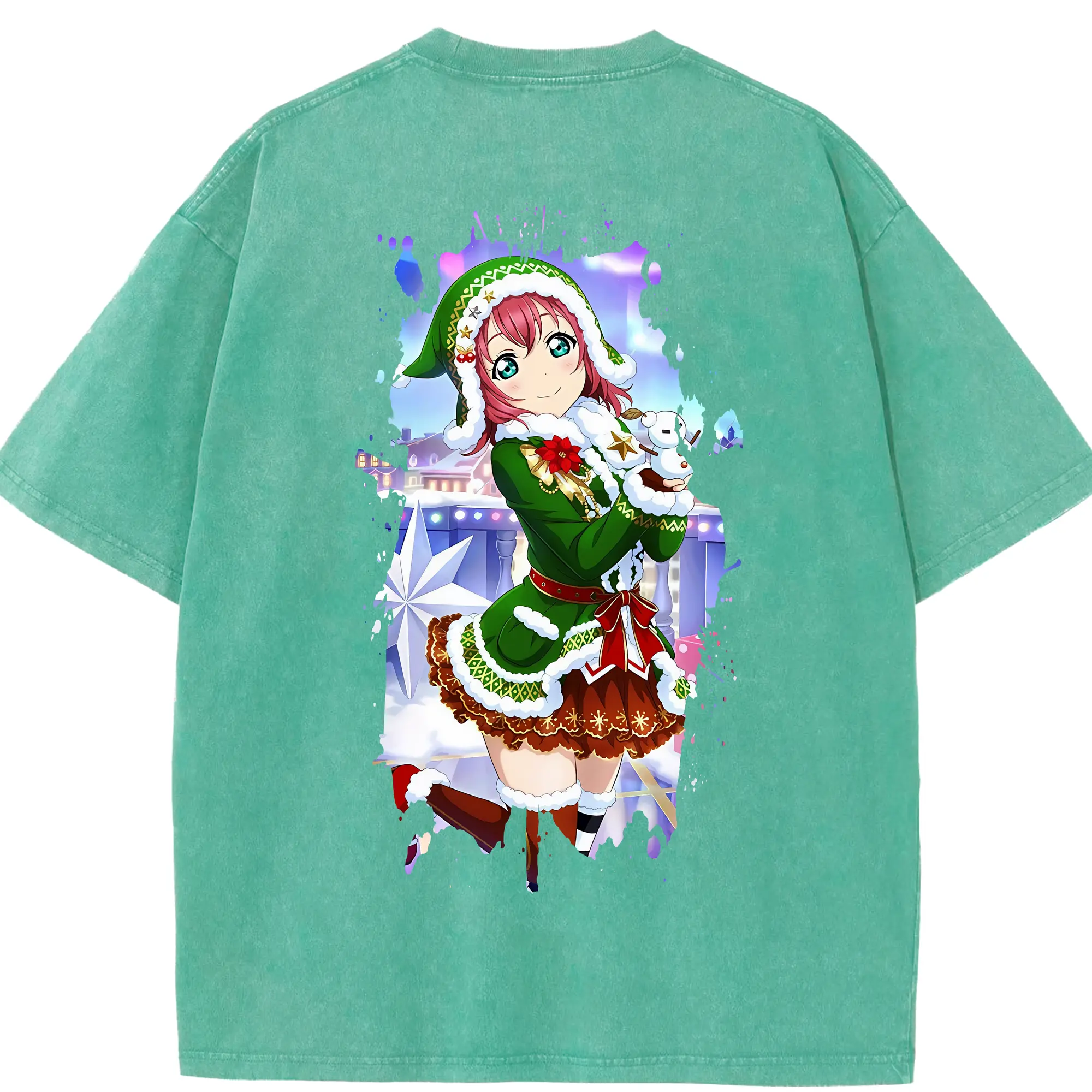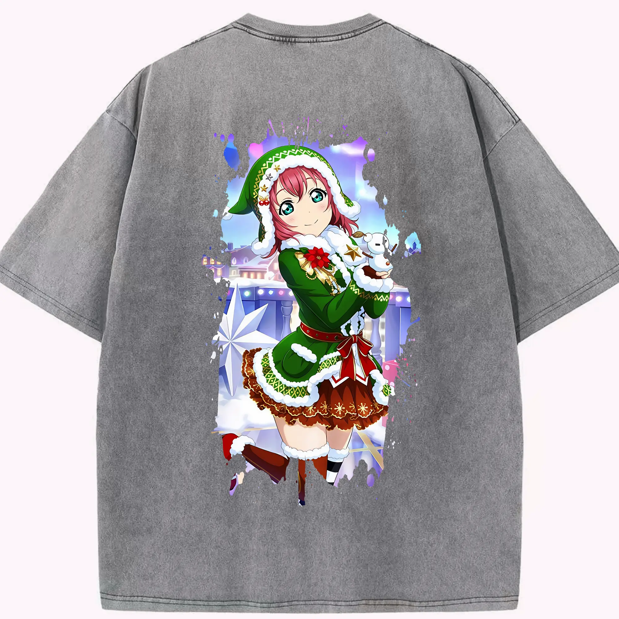 Love Live! グッズ,黒澤ルビィ - 綿100% ヴィンテージ風 半袖Tシャツ ・ フロントプリント ・ 柔らか肌触り ・ 通気性 快適 ・ スポーツ カジュアル 外出用