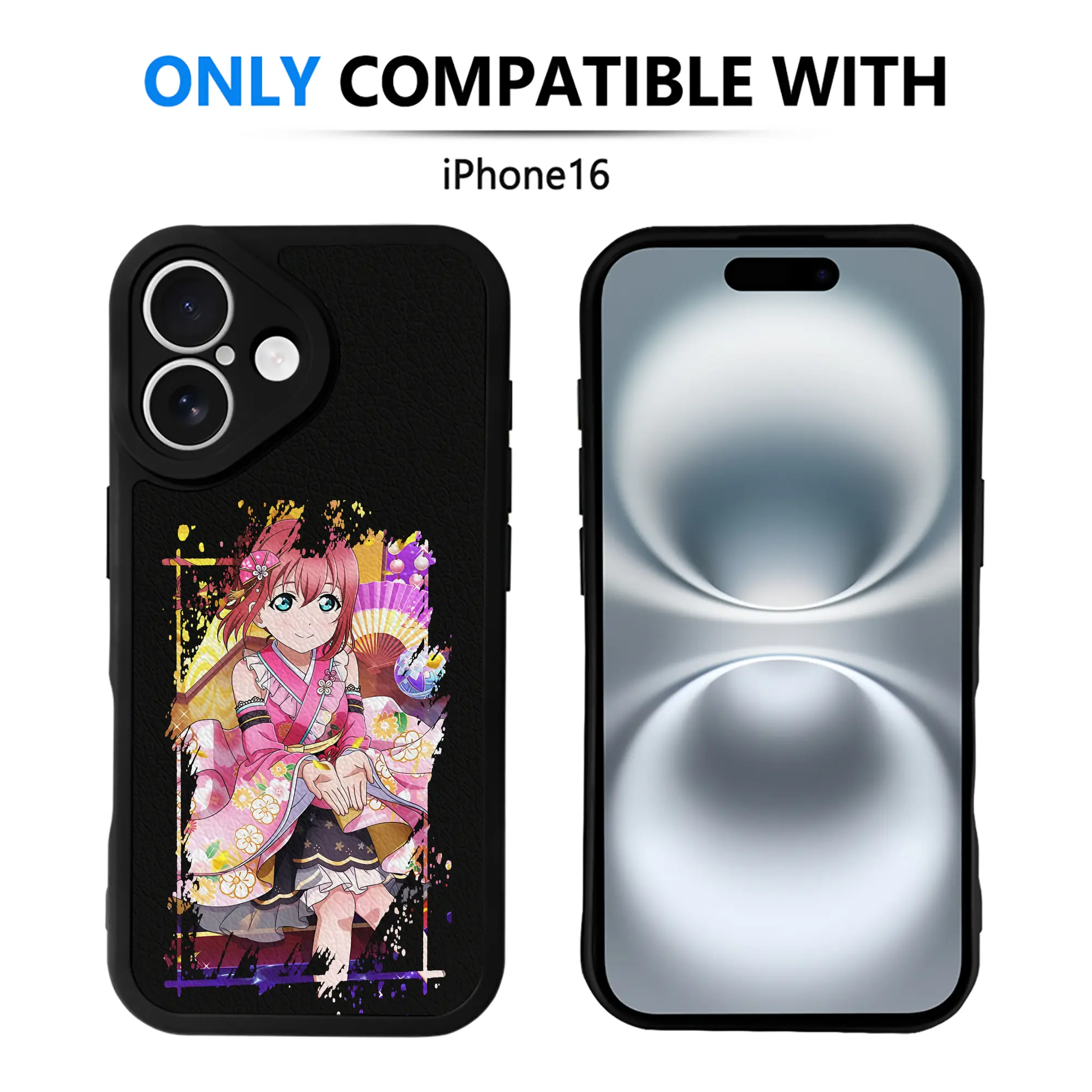 Love Live! グッズ,黒澤ルビィ - IPhone 16シリーズ対応 ・ シリコンスマホケース ・ レザー調 ・ 高精度フィット ・ 耐衝撃 ・ ワイヤレス充電対応 ・ 精密カット