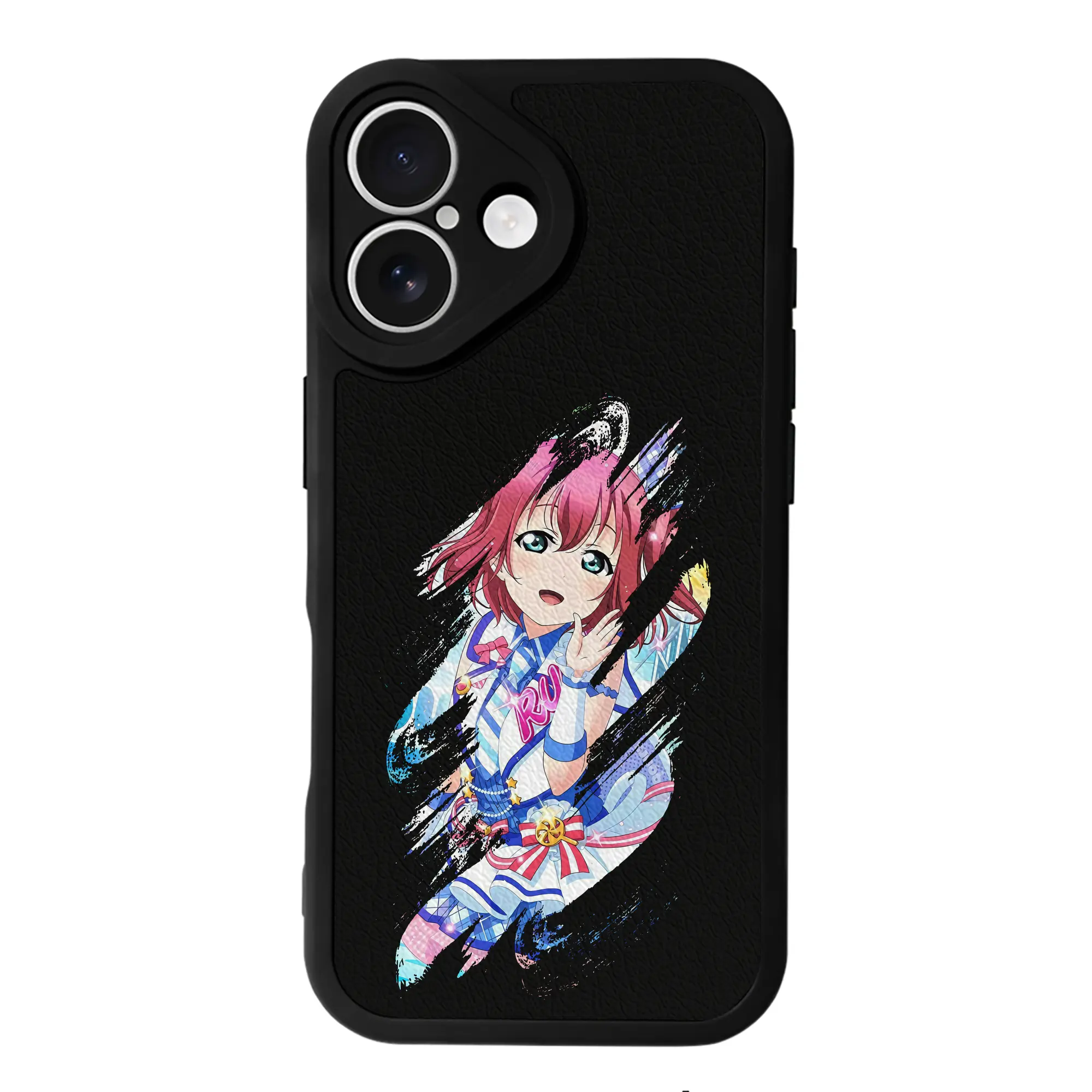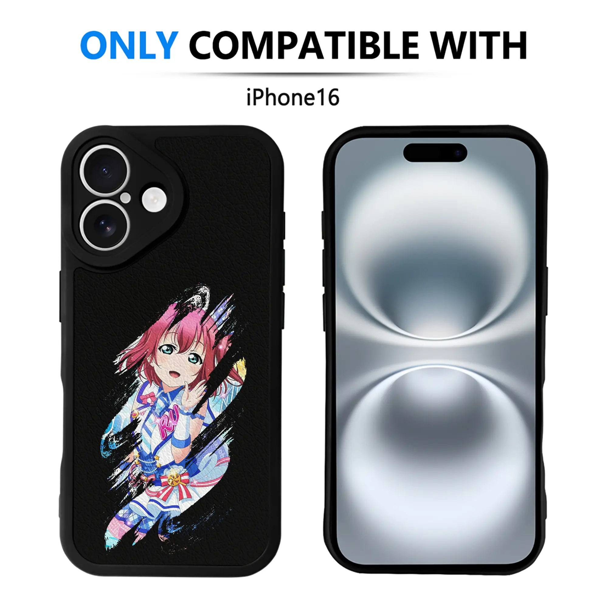 Love Live! グッズ,黒澤ルビィ - IPhone 16シリーズ対応 ・ シリコンスマホケース ・ レザー調 ・ 高精度フィット ・ 耐衝撃 ・ ワイヤレス充電対応 ・ 精密カット