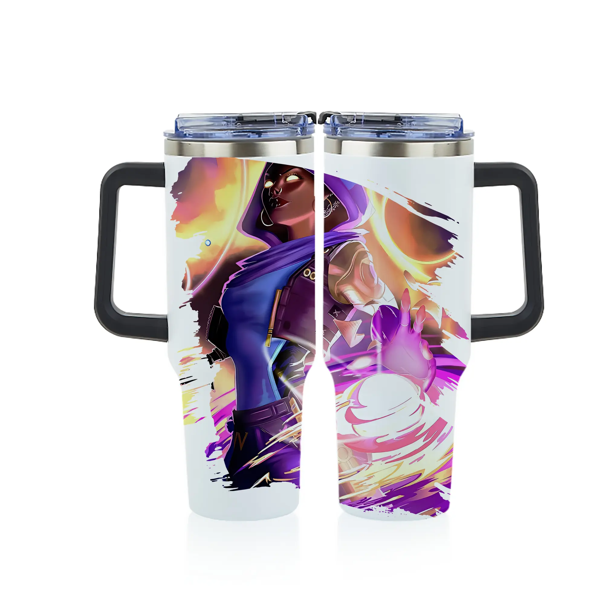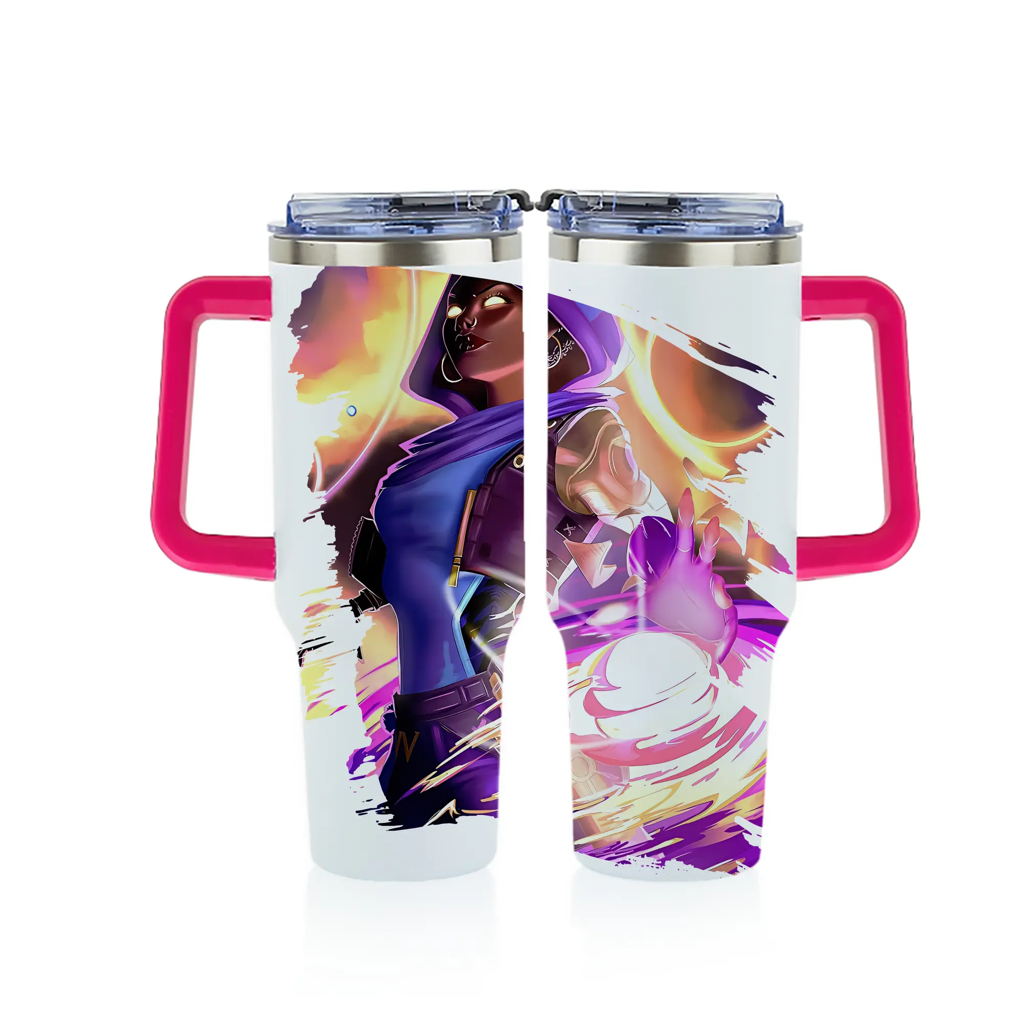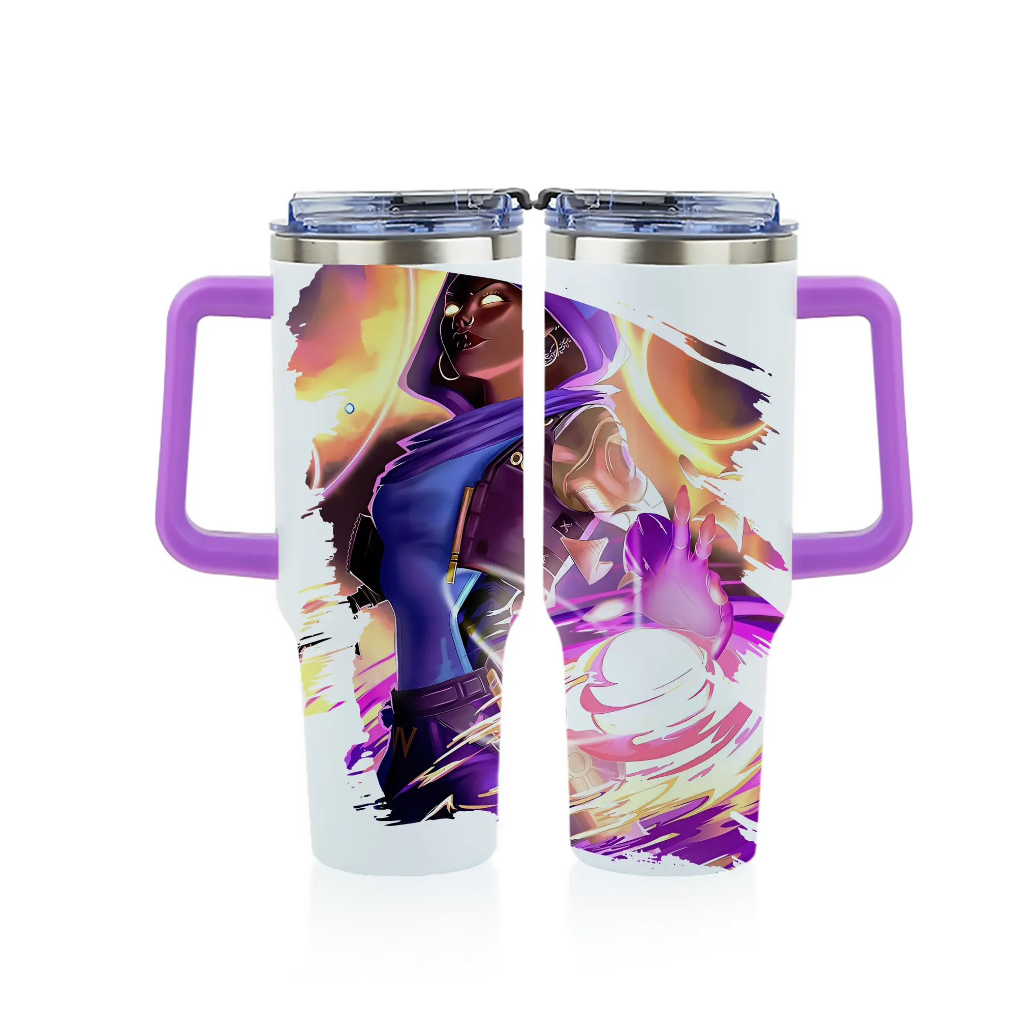 VALORANT グッズ,アストラ - 1200mL フルプリント車用タンブラー ・ 304ステンレス 内側 ・ 201ステンレス 外側 ・ 保温 保冷 ・ 通勤 ドライブ アウトドア用