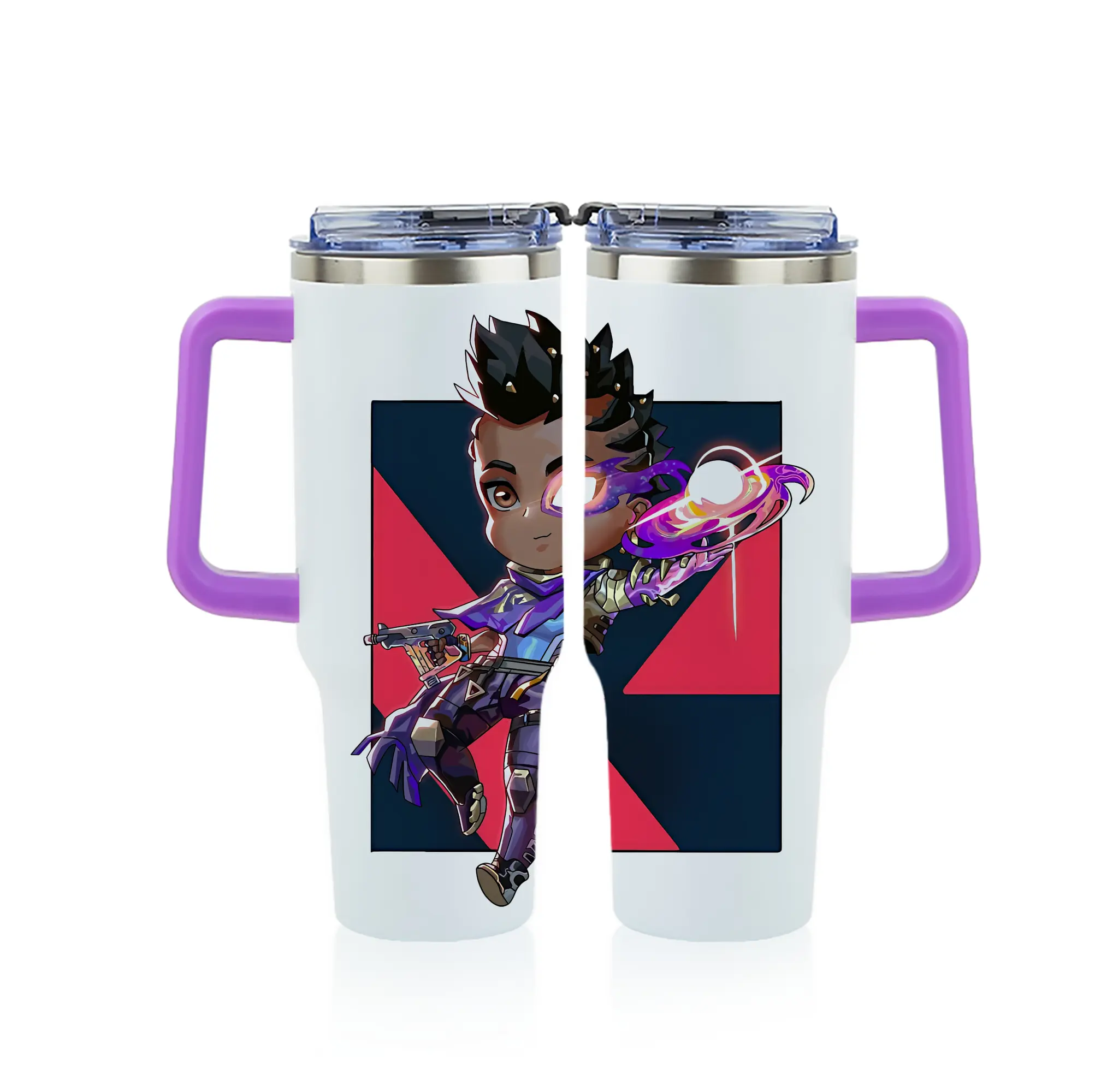 VALORANT グッズ,アストラ - 1200mL フルプリント車用タンブラー ・ 304ステンレス 内側 ・ 201ステンレス 外側 ・ 保温 保冷 ・ 通勤 ドライブ アウトドア用