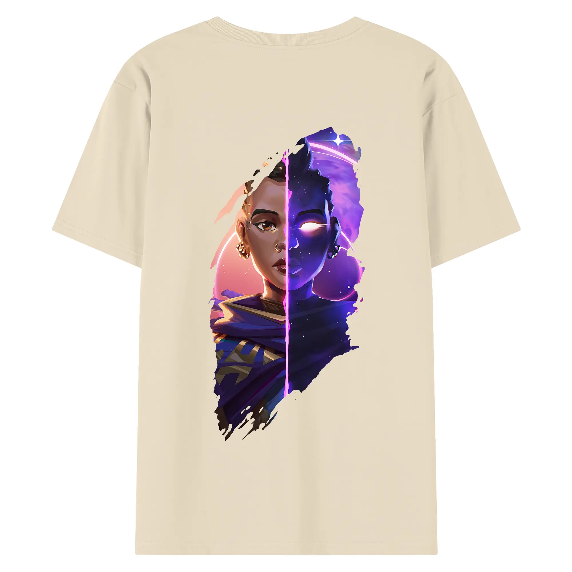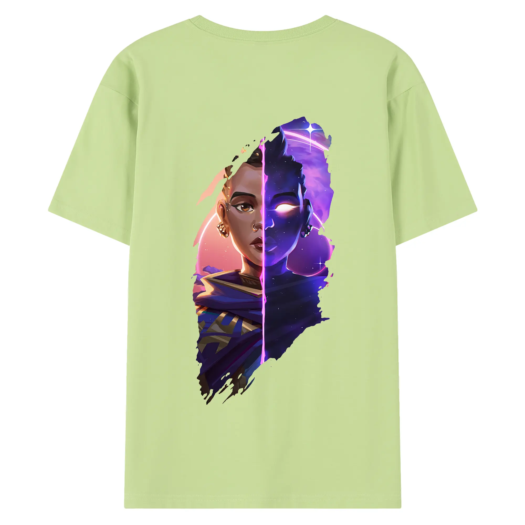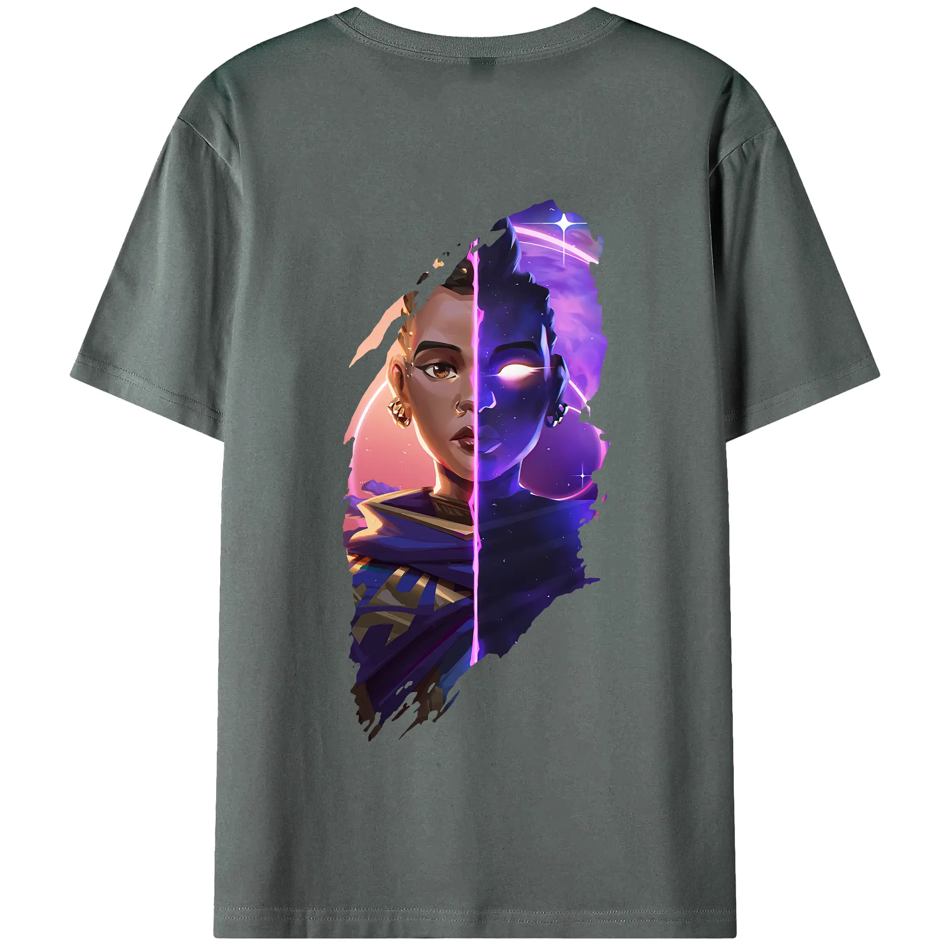VALORANT グッズ,アストラ - 綿100% ヴィンテージ風 半袖Tシャツ ・ 背面プリント ・ 柔らか肌触り ・ 通気性 快適 ・ スポーツ カジュアル 外出用