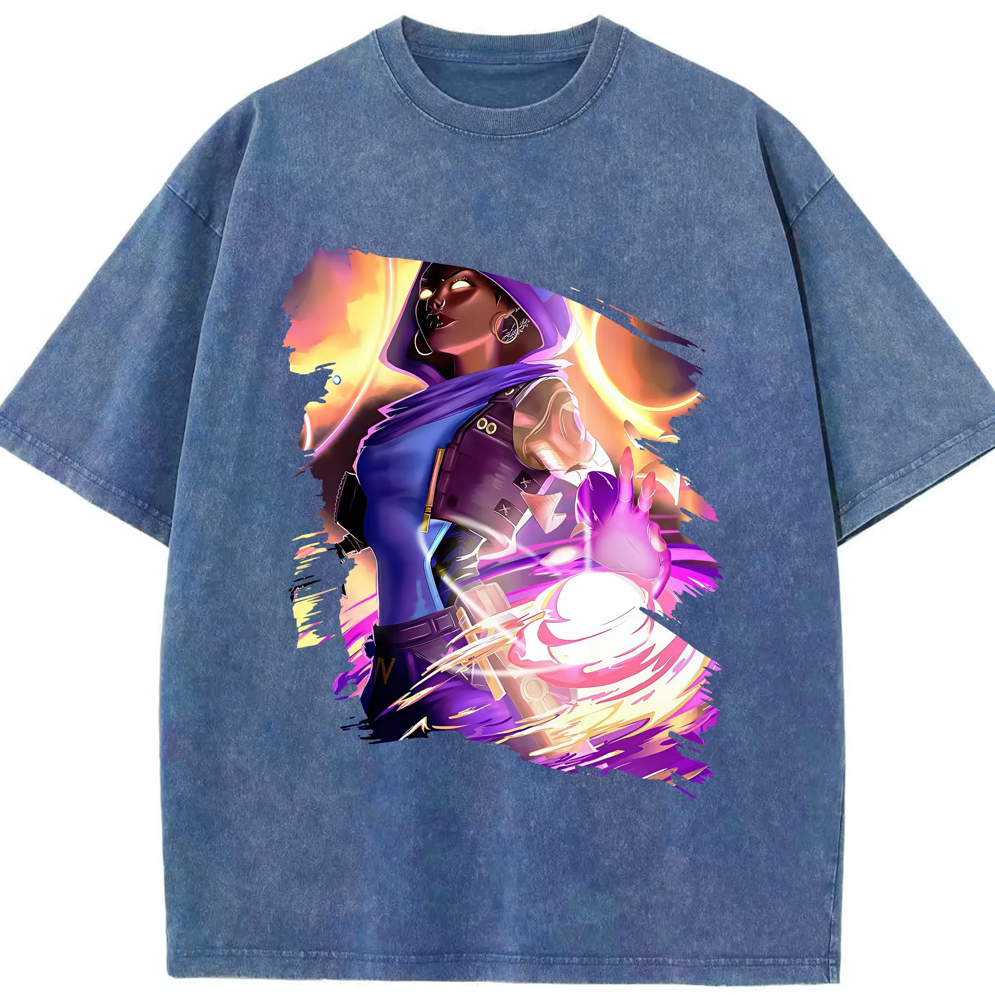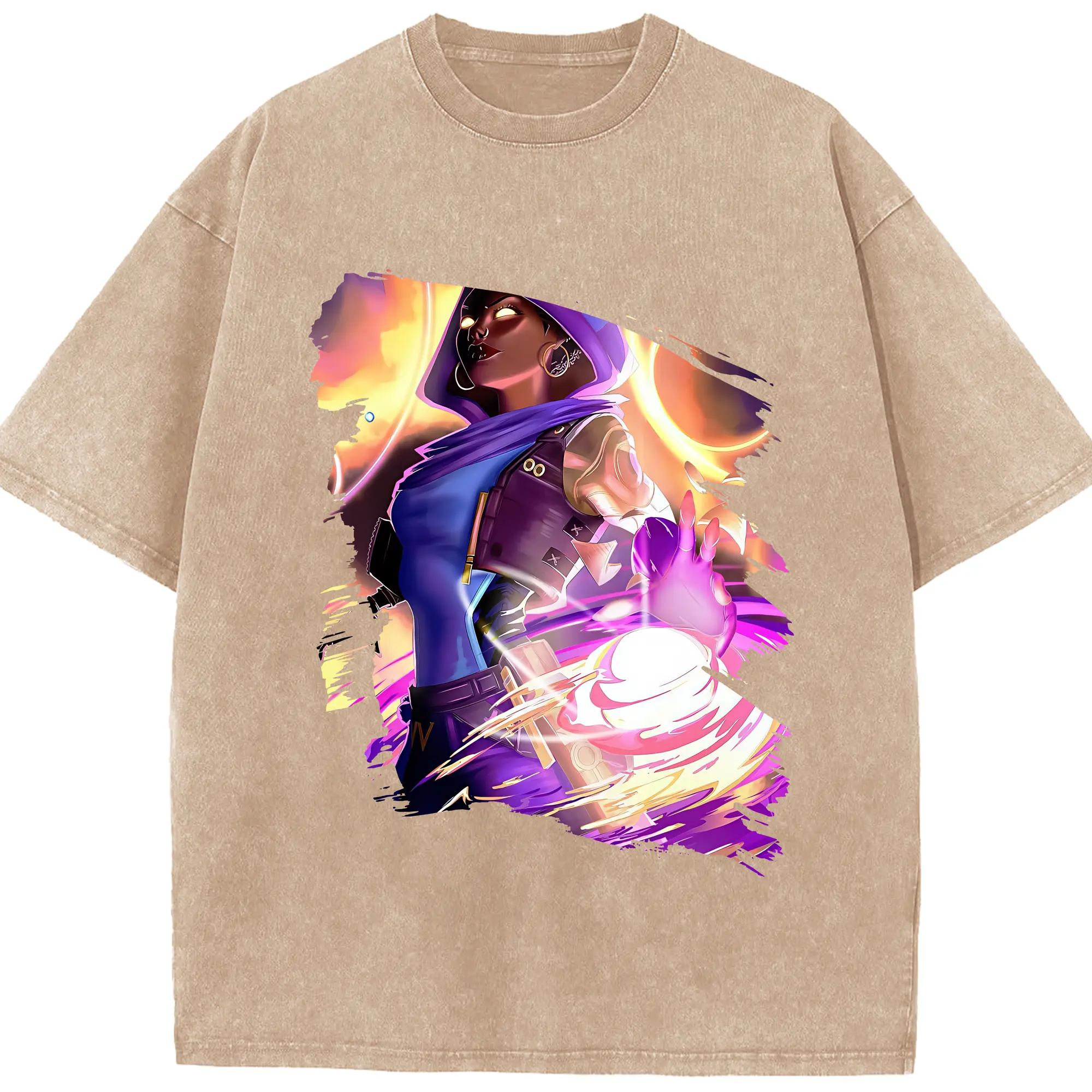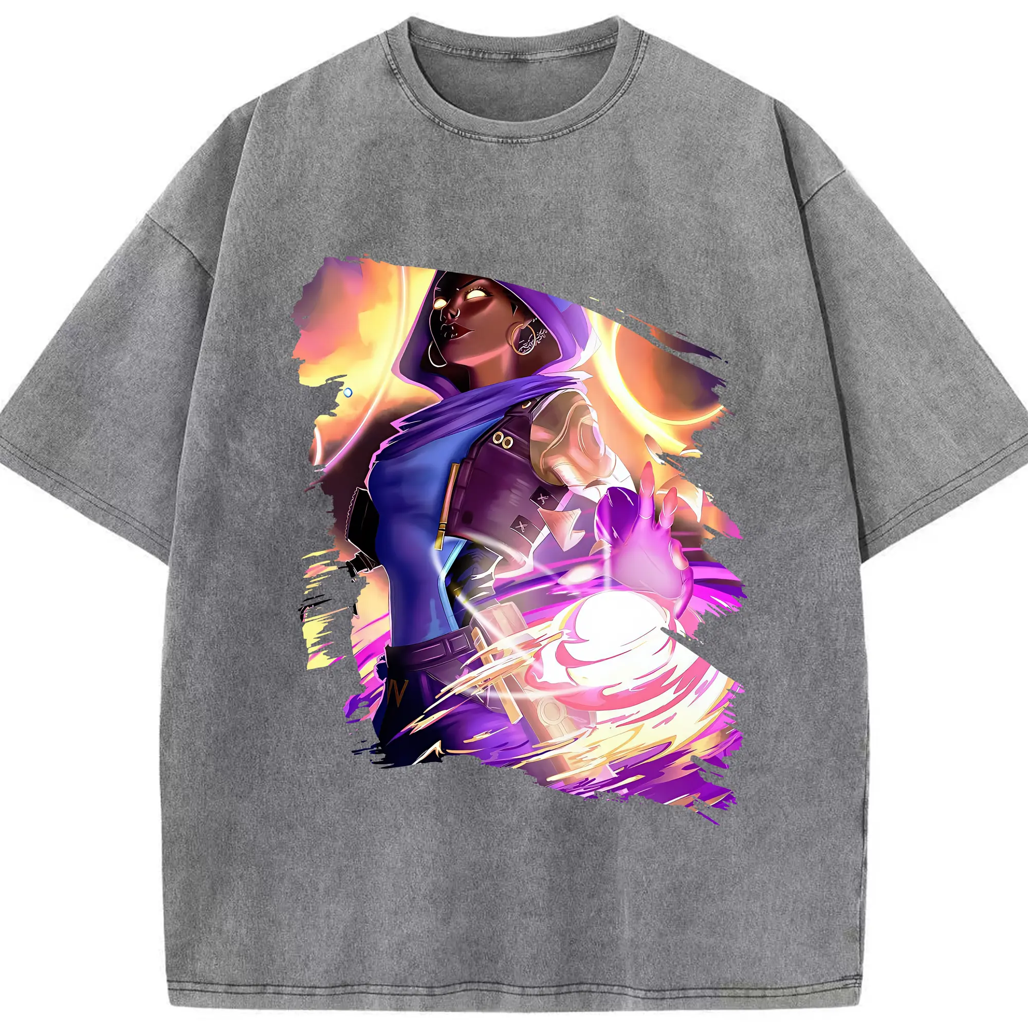 VALORANT グッズ,アストラ - 綿100% ヴィンテージ風 半袖Tシャツ ・ 背面プリント ・ 柔らか肌触り ・ 通気性 快適 ・ スポーツ カジュアル 外出用