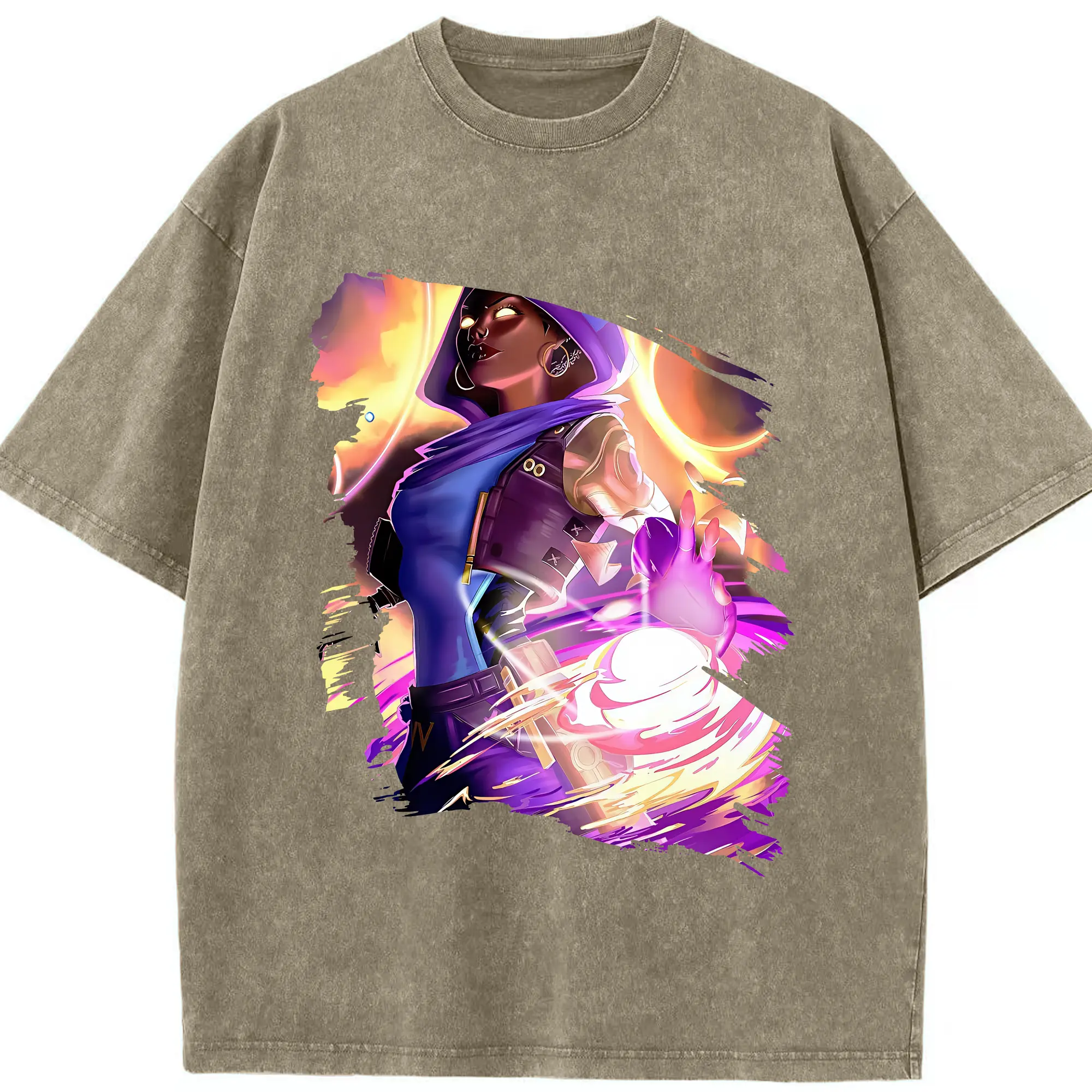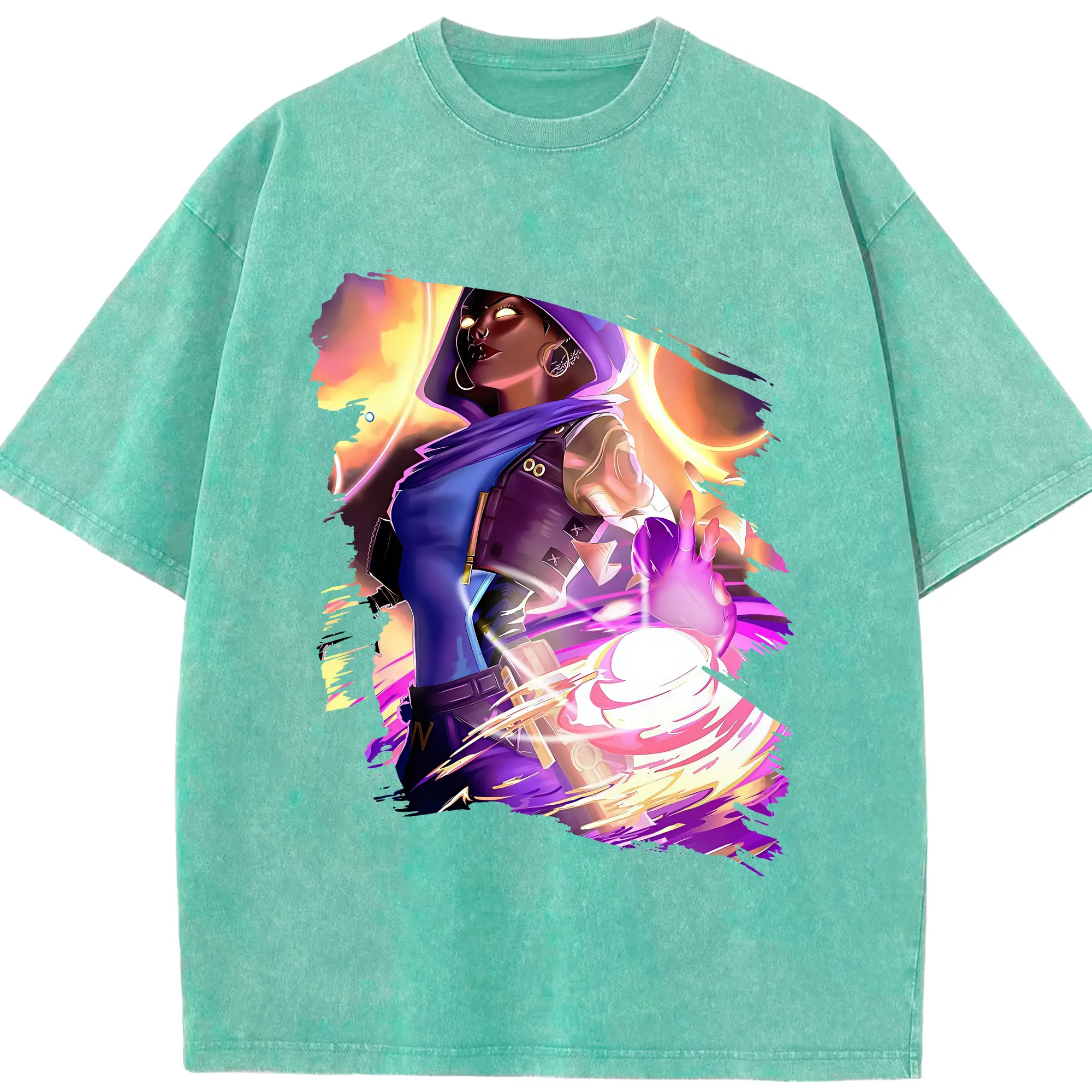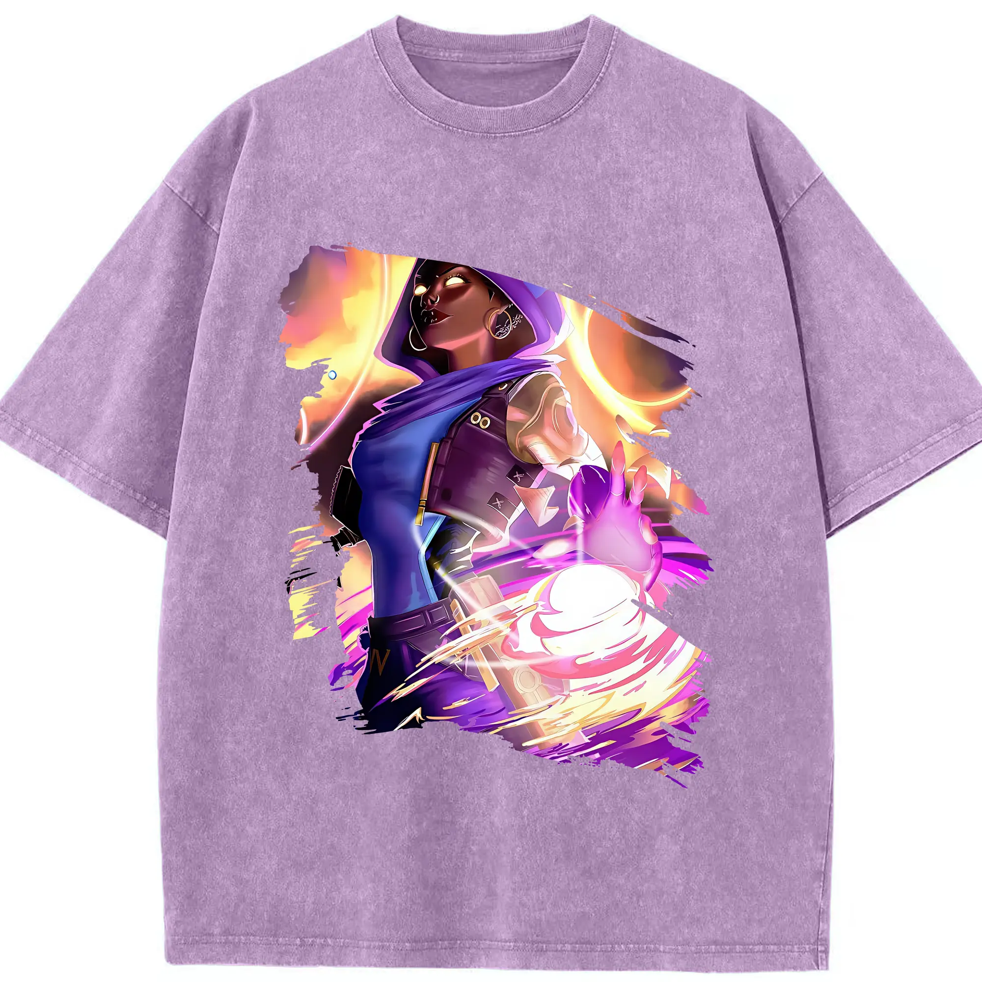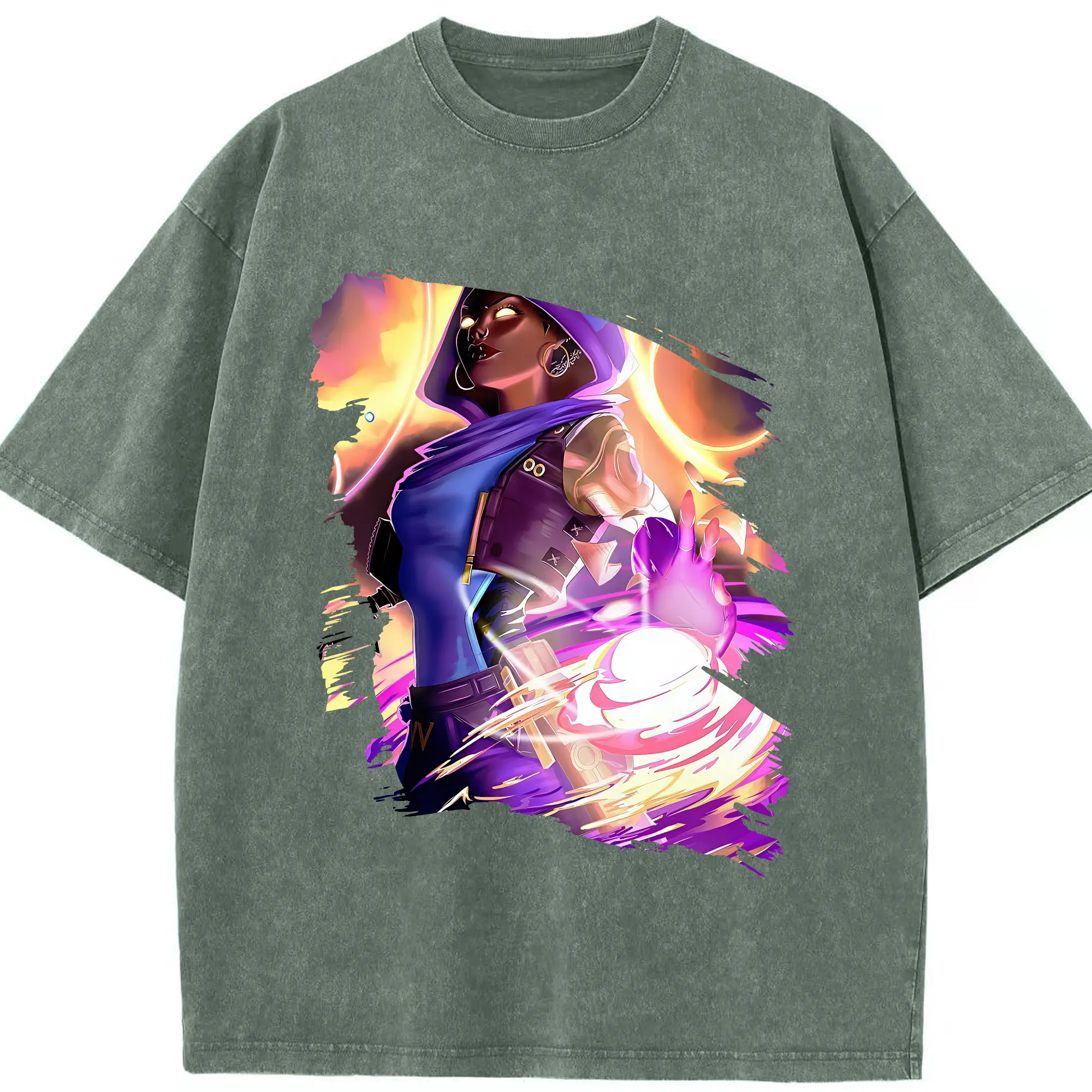 VALORANT グッズ,アストラ - 綿100% ヴィンテージ風 半袖Tシャツ ・ 背面プリント ・ 柔らか肌触り ・ 通気性 快適 ・ スポーツ カジュアル 外出用