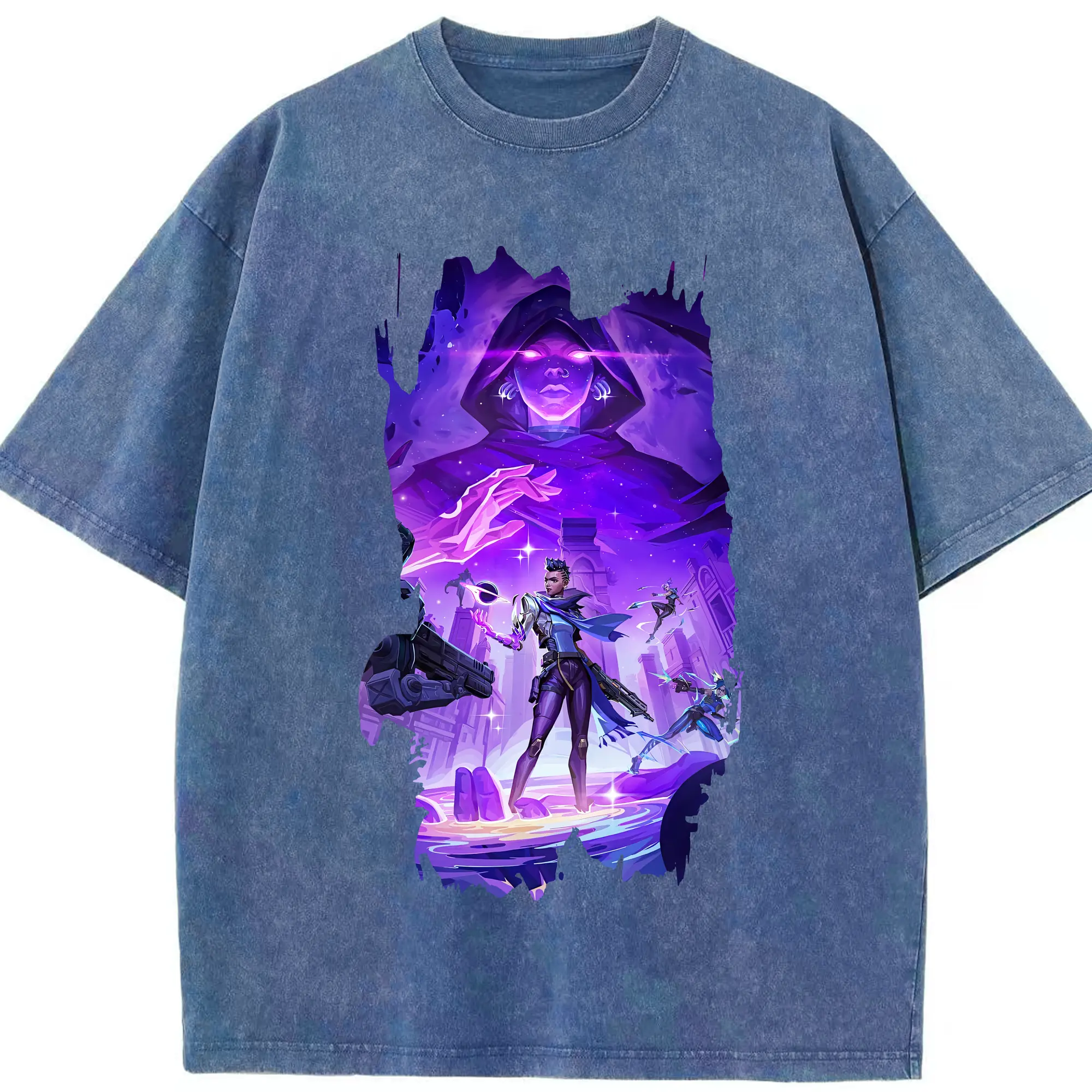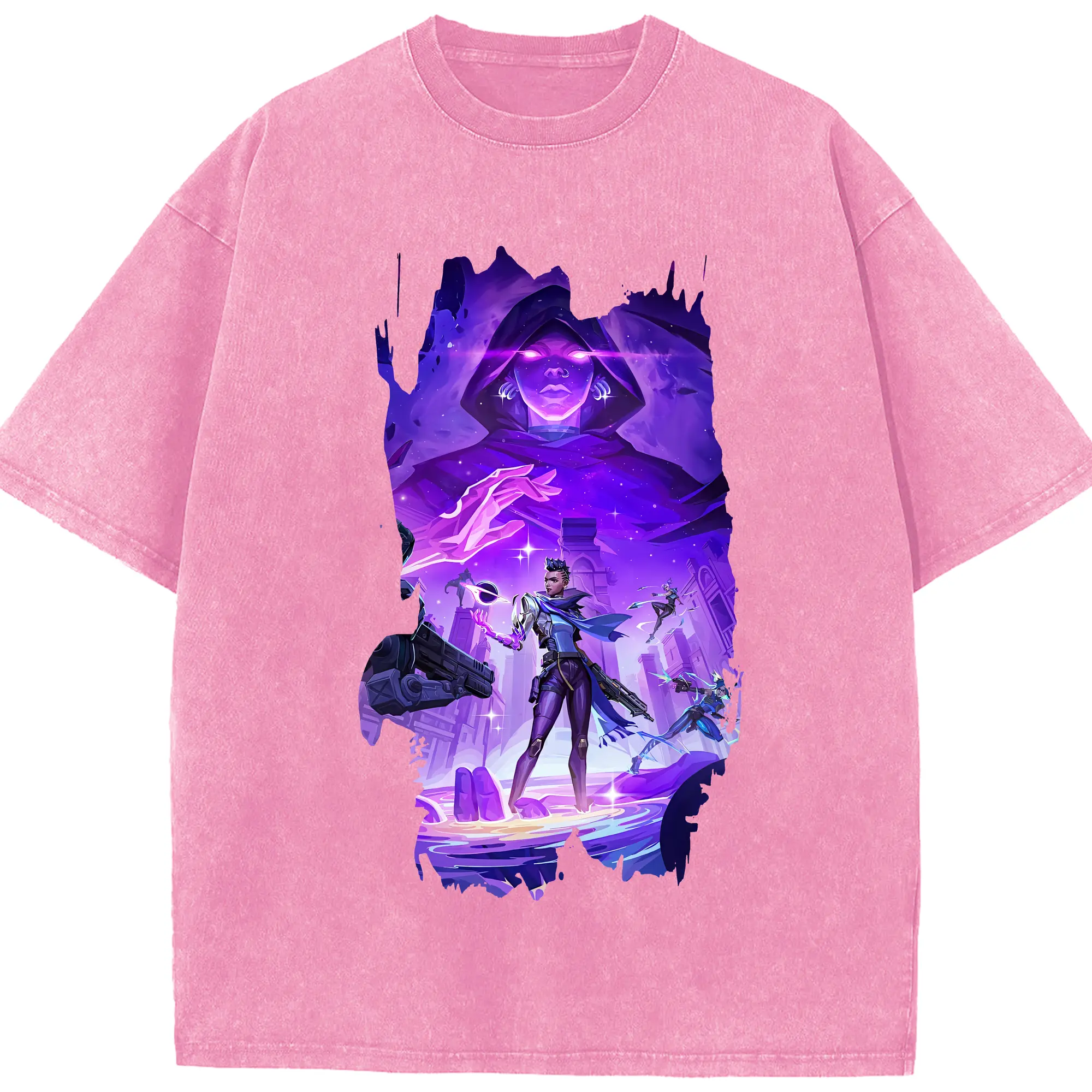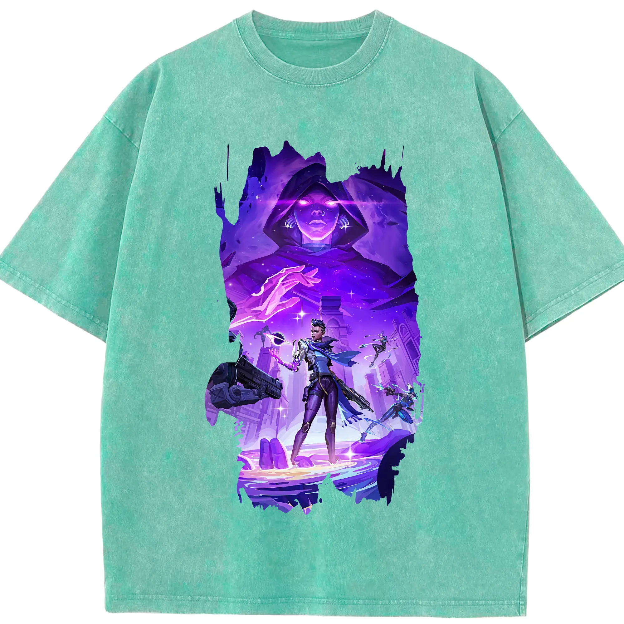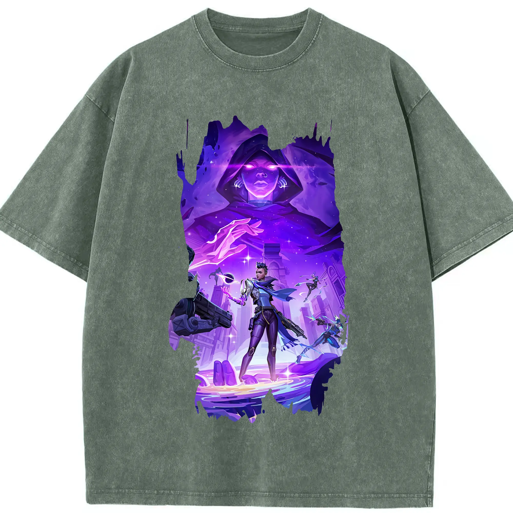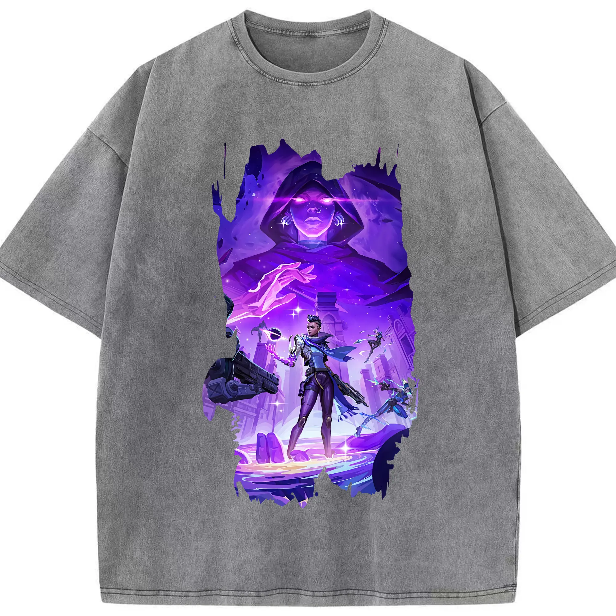 VALORANT グッズ,アストラ - 綿100% ヴィンテージ風 半袖Tシャツ ・ 背面プリント ・ 柔らか肌触り ・ 通気性 快適 ・ スポーツ カジュアル 外出用