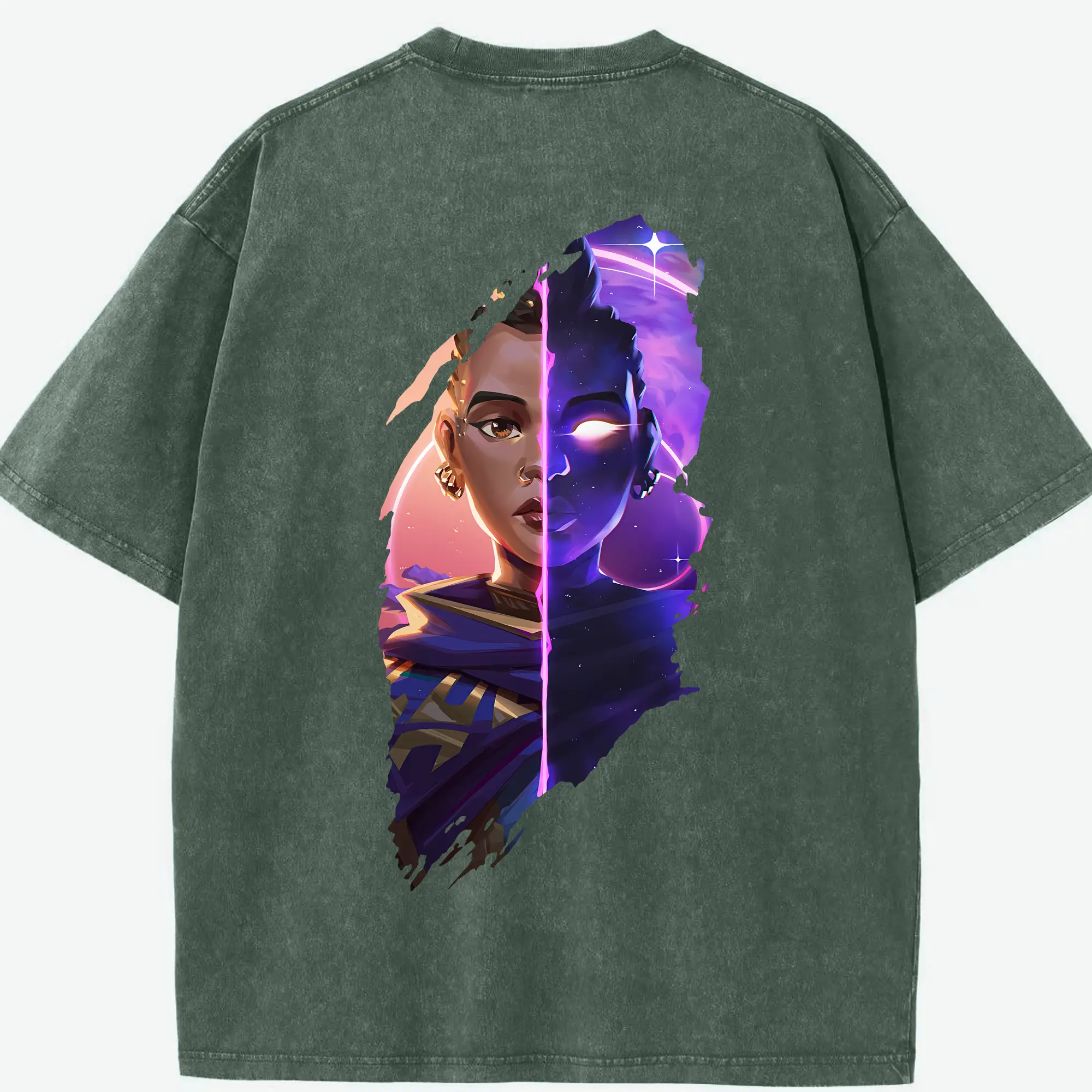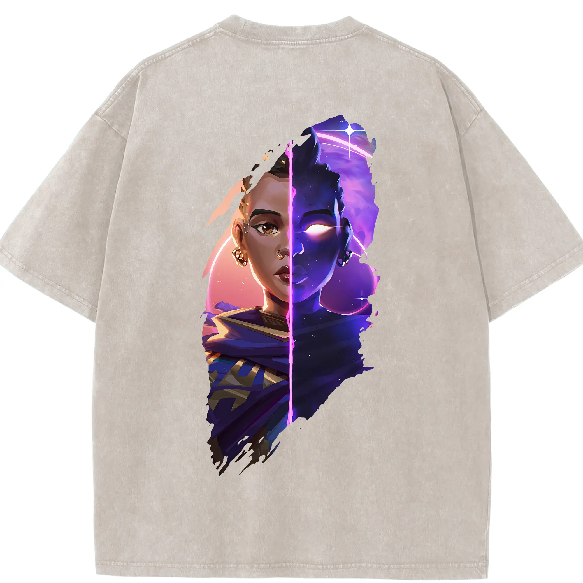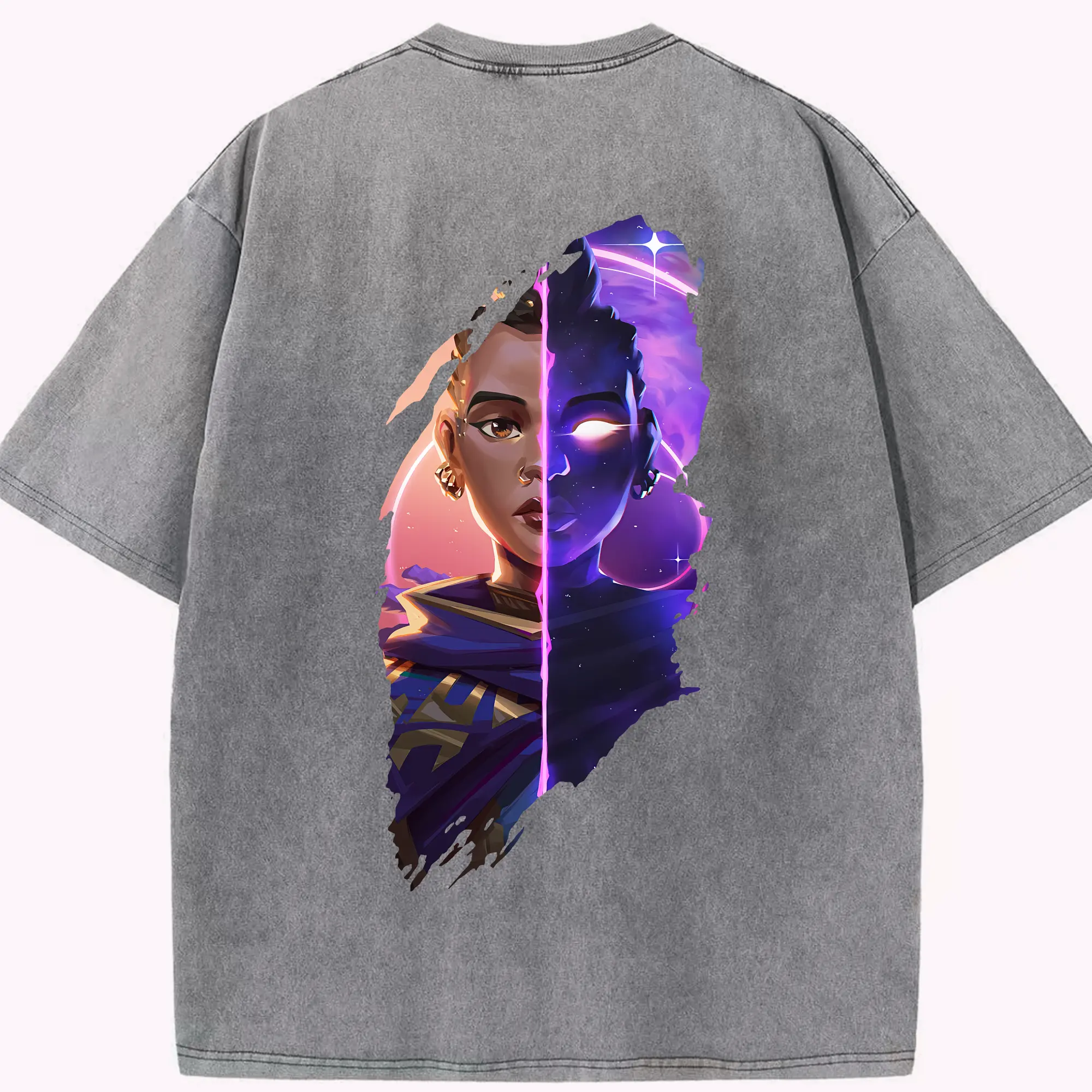VALORANT グッズ,アストラ - 綿100% ヴィンテージ風 半袖Tシャツ ・ フロントプリント ・ 柔らか肌触り ・ 通気性 快適 ・ スポーツ カジュアル 外出用