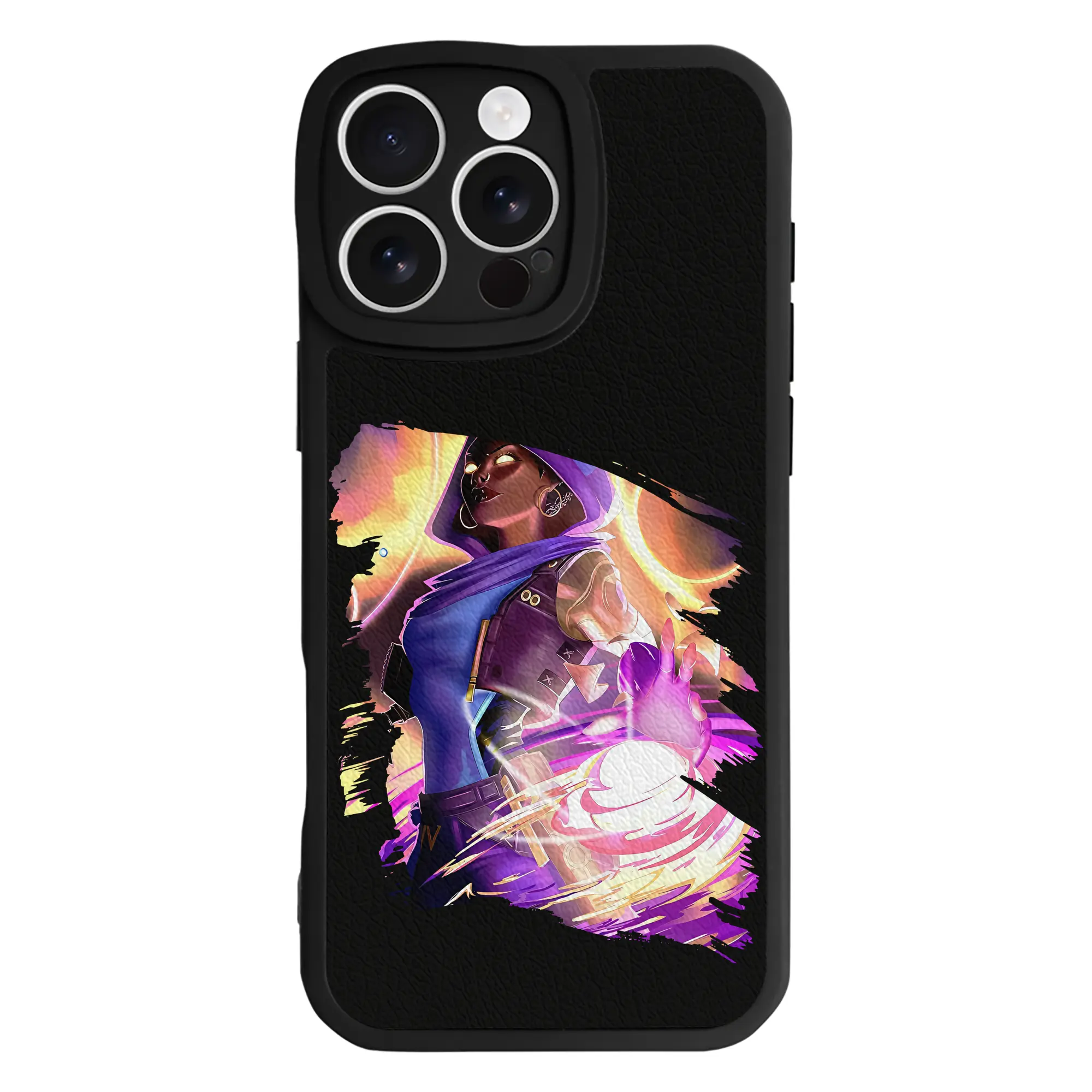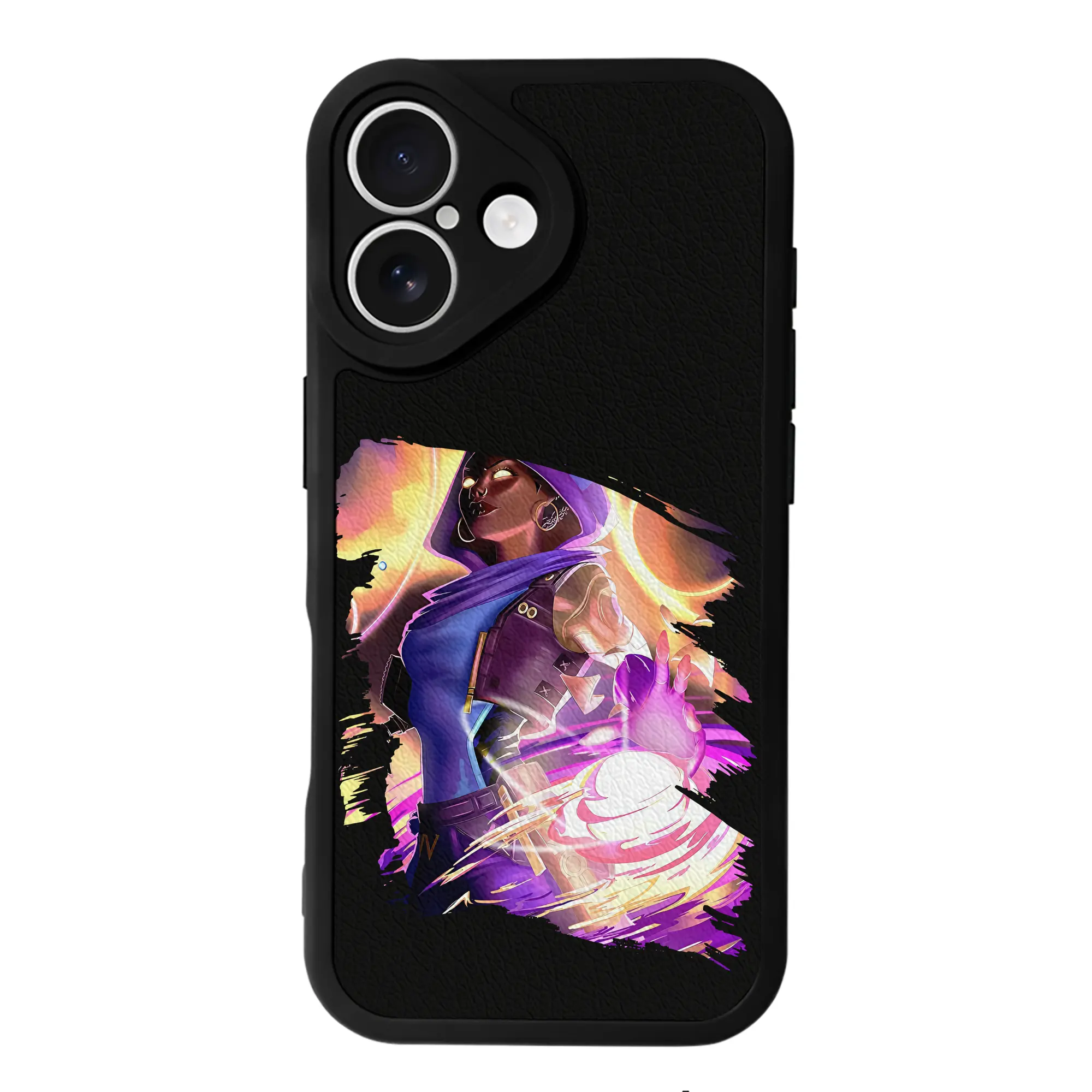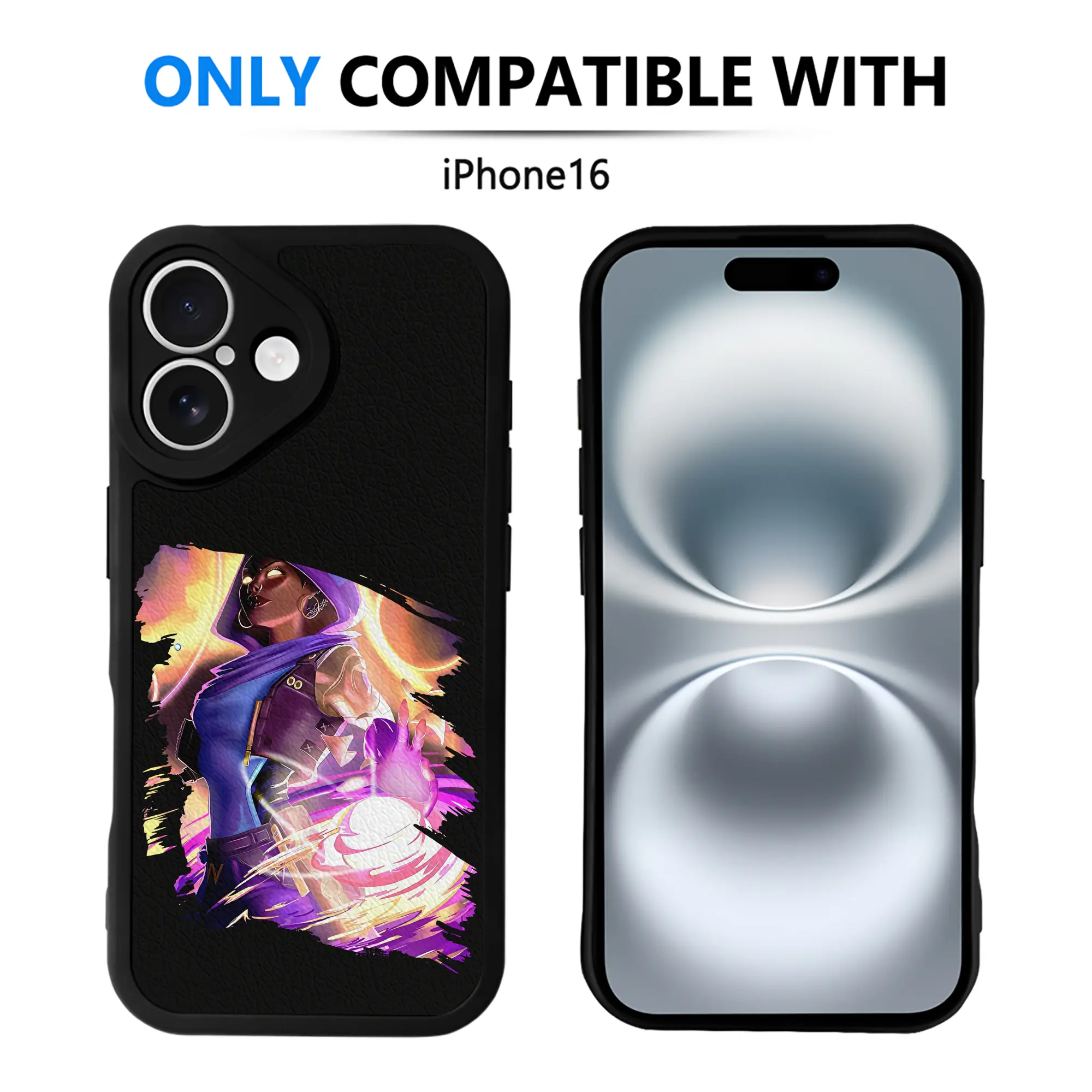 VALORANT グッズ,アストラ - IPhone 16シリーズ対応 ・ シリコンスマホケース ・ レザー調 ・ 高精度フィット ・ 耐衝撃 ・ ワイヤレス充電対応 ・ 精密カット