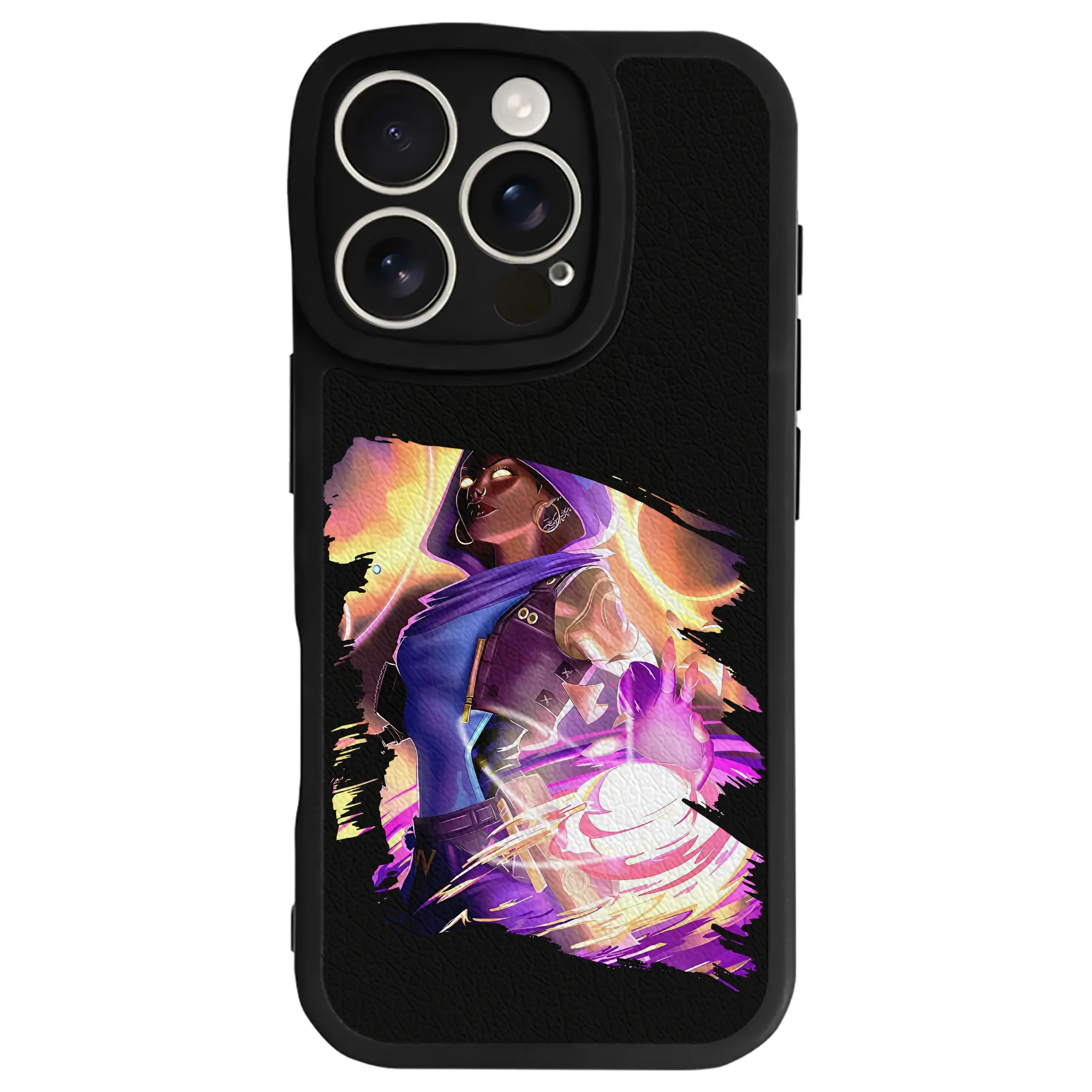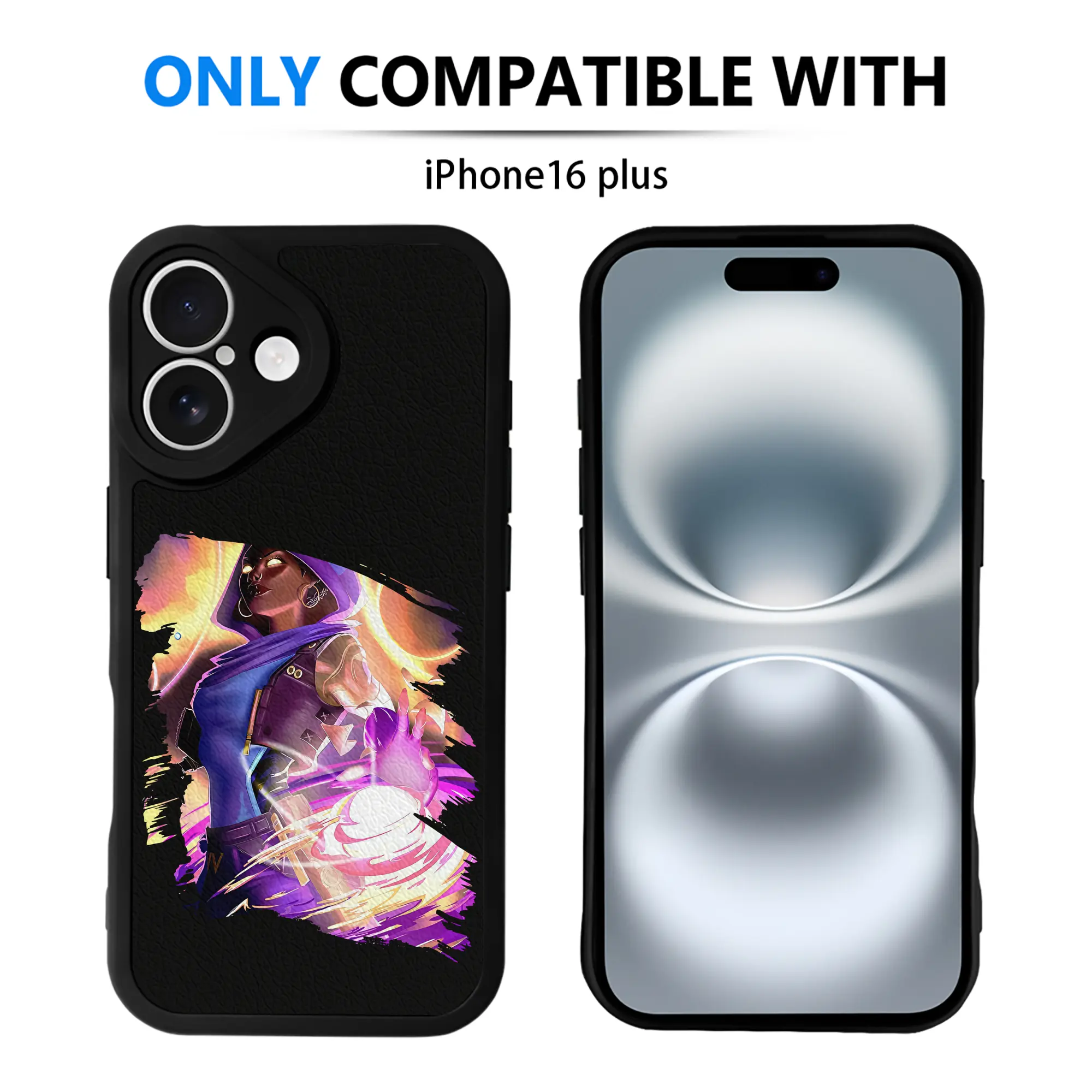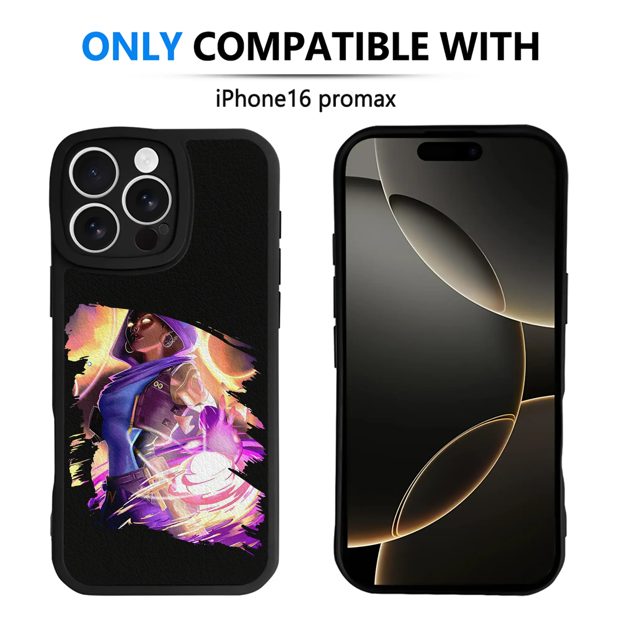 VALORANT グッズ,アストラ - IPhone 16シリーズ対応 ・ シリコンスマホケース ・ レザー調 ・ 高精度フィット ・ 耐衝撃 ・ ワイヤレス充電対応 ・ 精密カット
