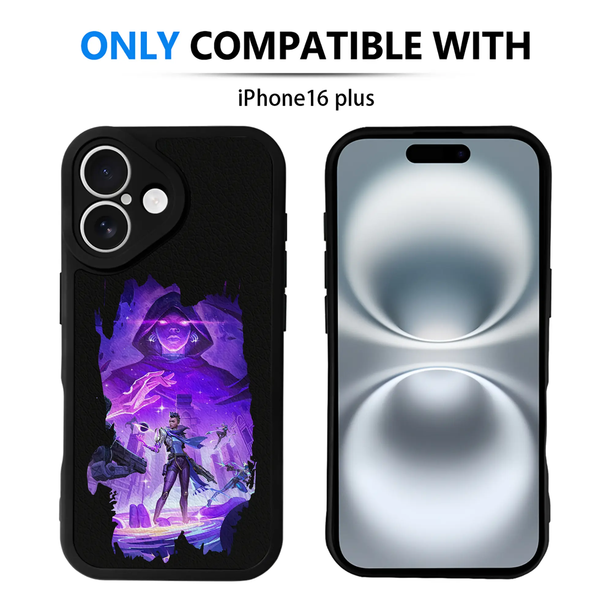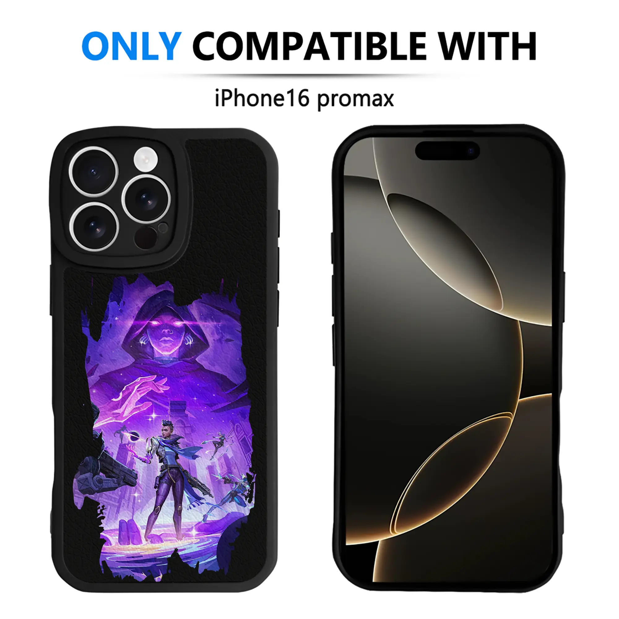 VALORANT グッズ,アストラ - IPhone 16シリーズ対応 ・ シリコンスマホケース ・ レザー調 ・ 高精度フィット ・ 耐衝撃 ・ ワイヤレス充電対応 ・ 精密カット
