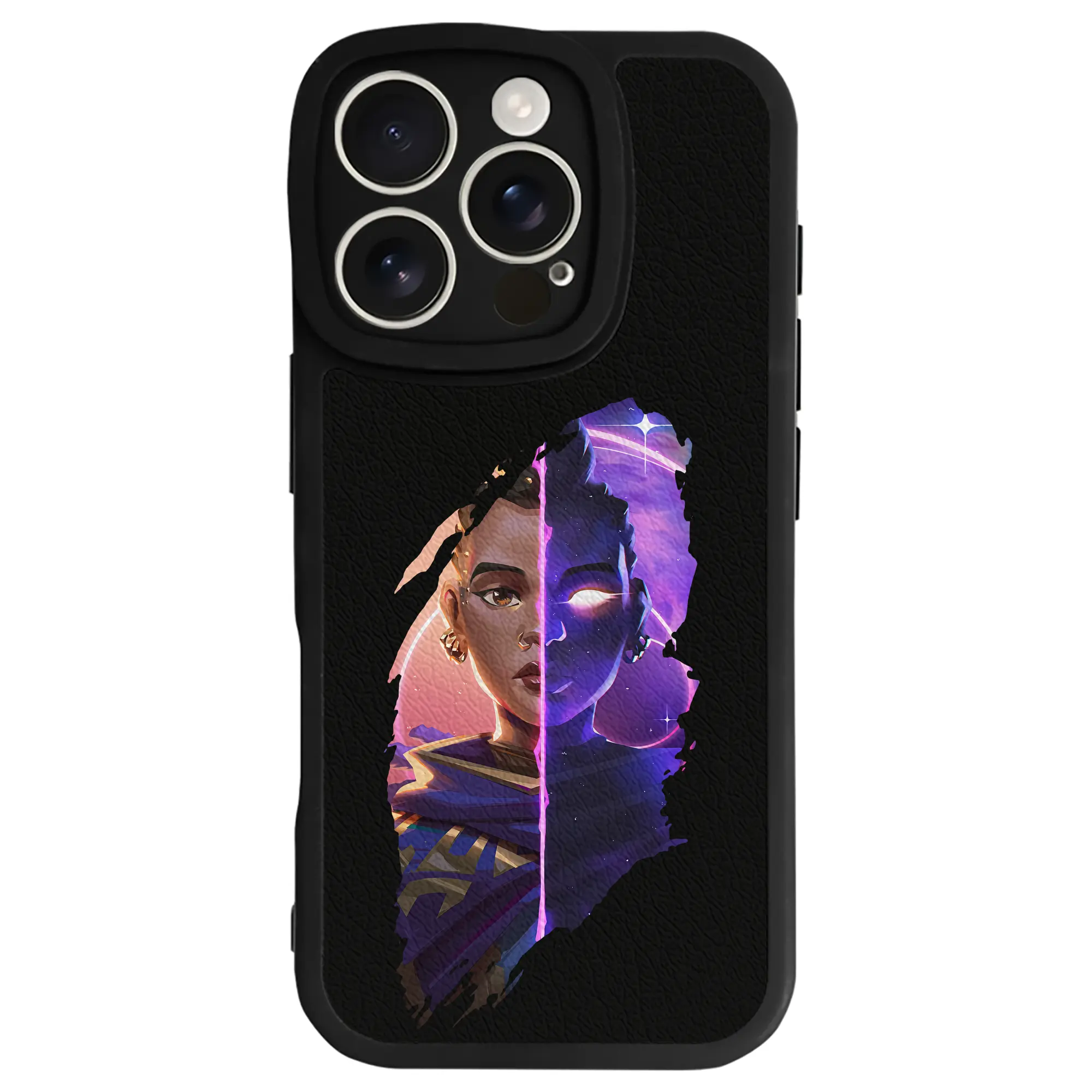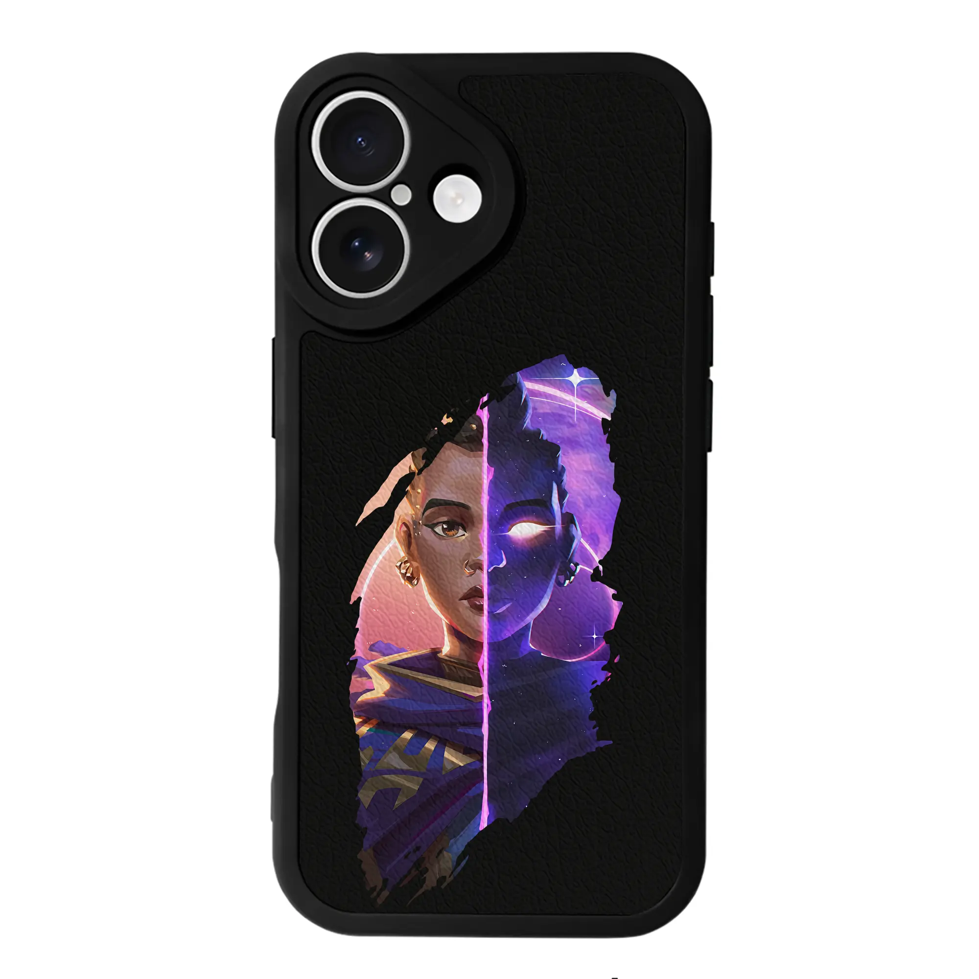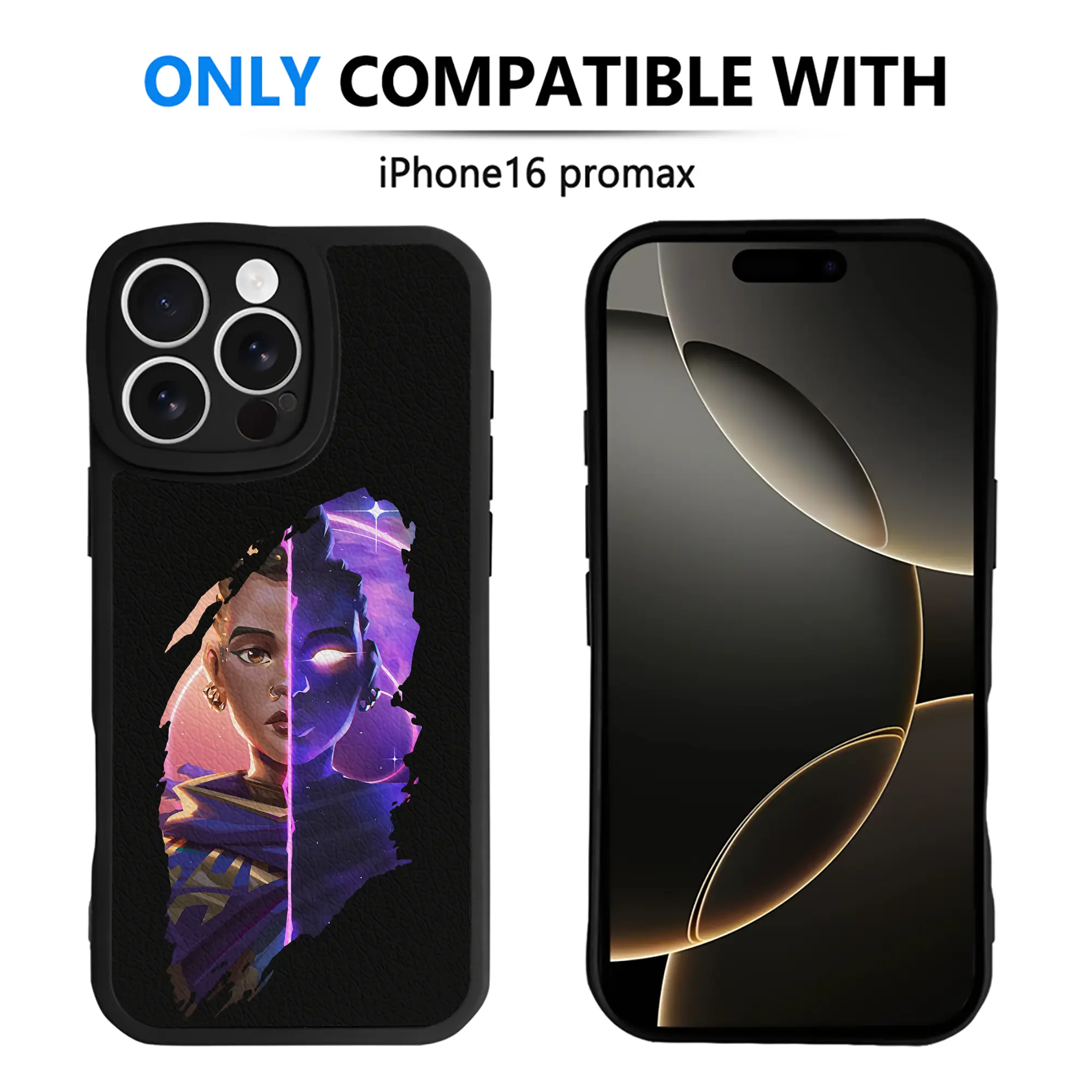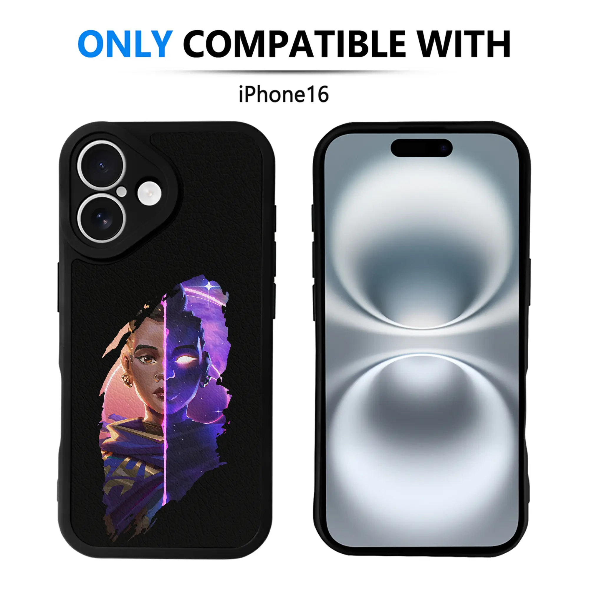 VALORANT グッズ,アストラ - IPhone 16シリーズ対応 ・ シリコンスマホケース ・ レザー調 ・ 高精度フィット ・ 耐衝撃 ・ ワイヤレス充電対応 ・ 精密カット