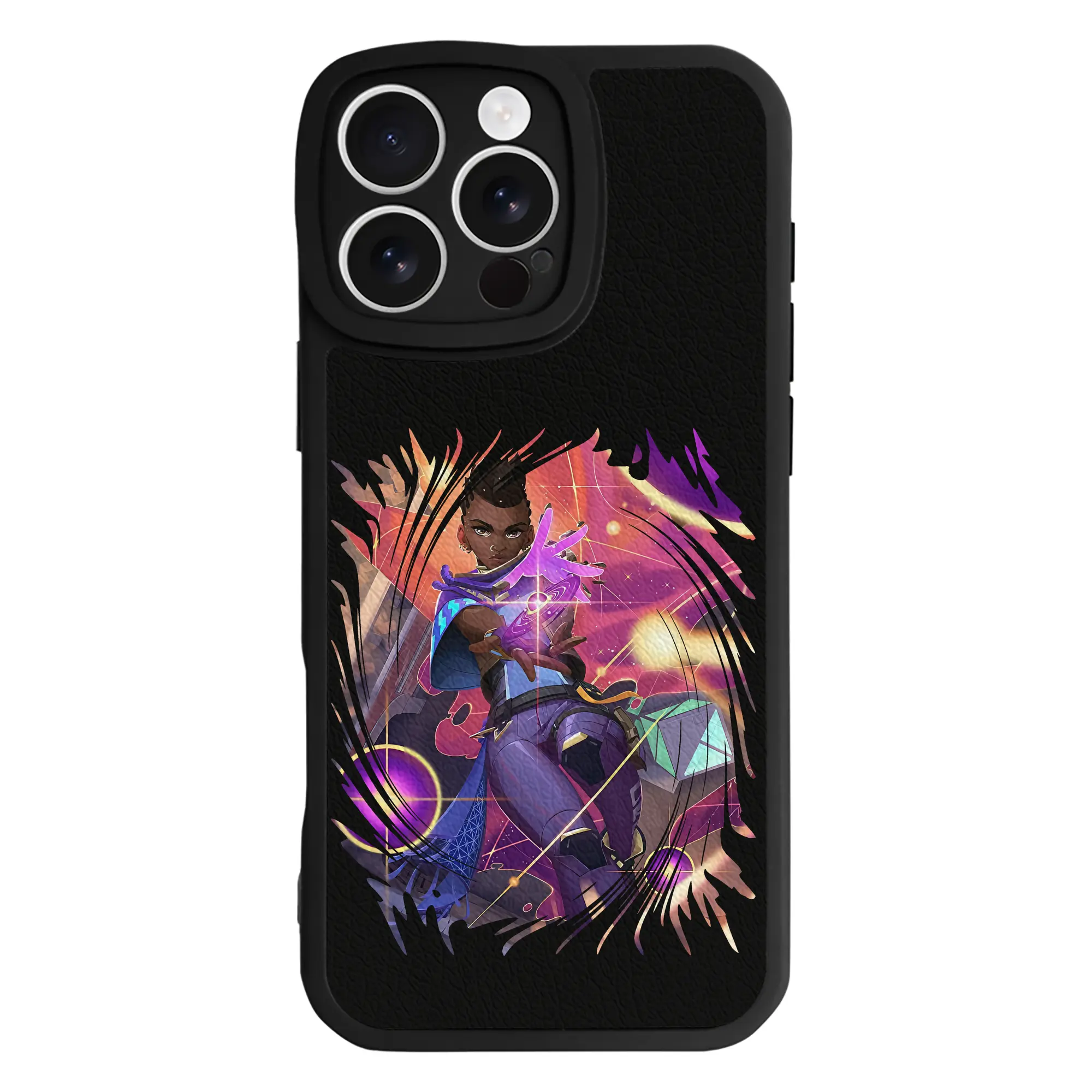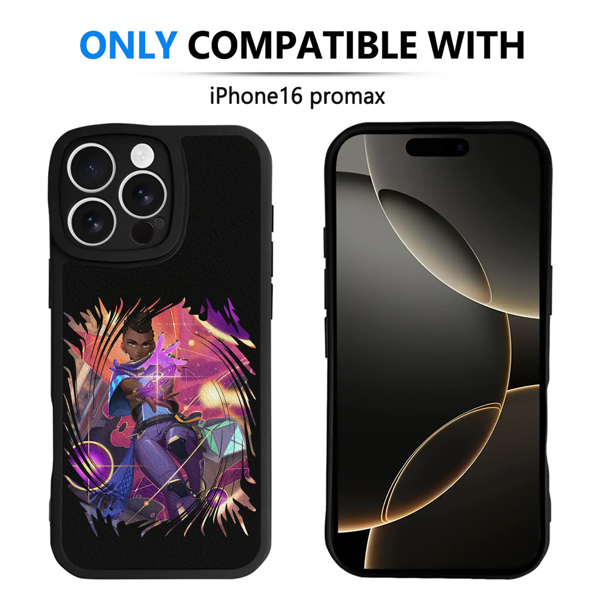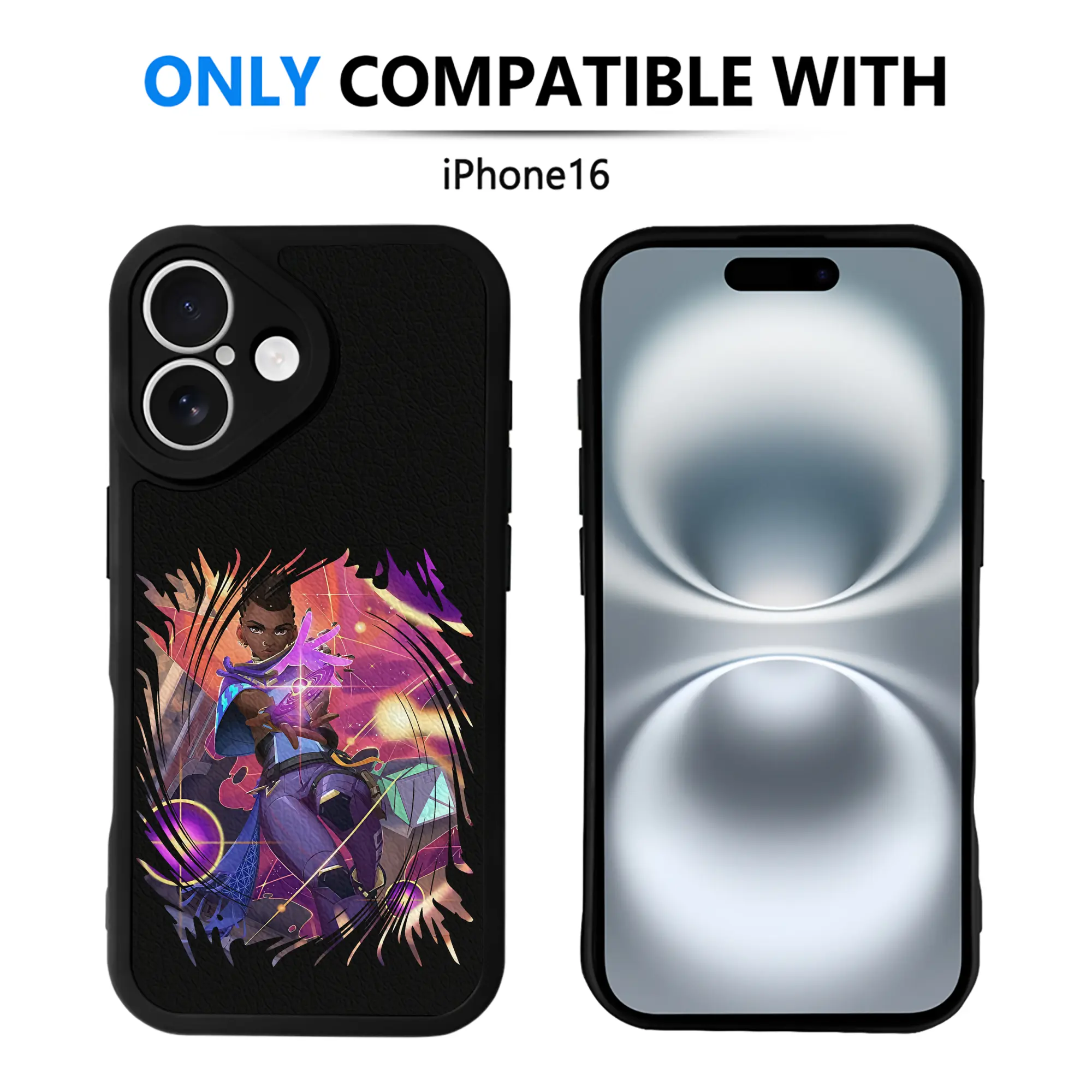 VALORANT グッズ,アストラ - IPhone 16シリーズ対応 ・ シリコンスマホケース ・ レザー調 ・ 高精度フィット ・ 耐衝撃 ・ ワイヤレス充電対応 ・ 精密カット