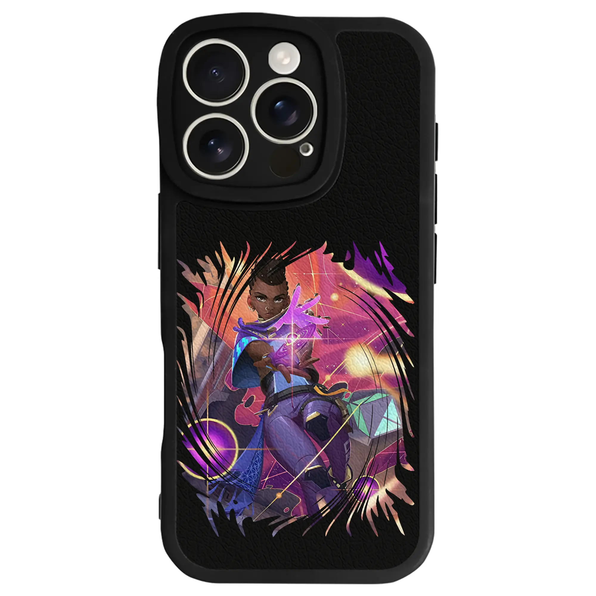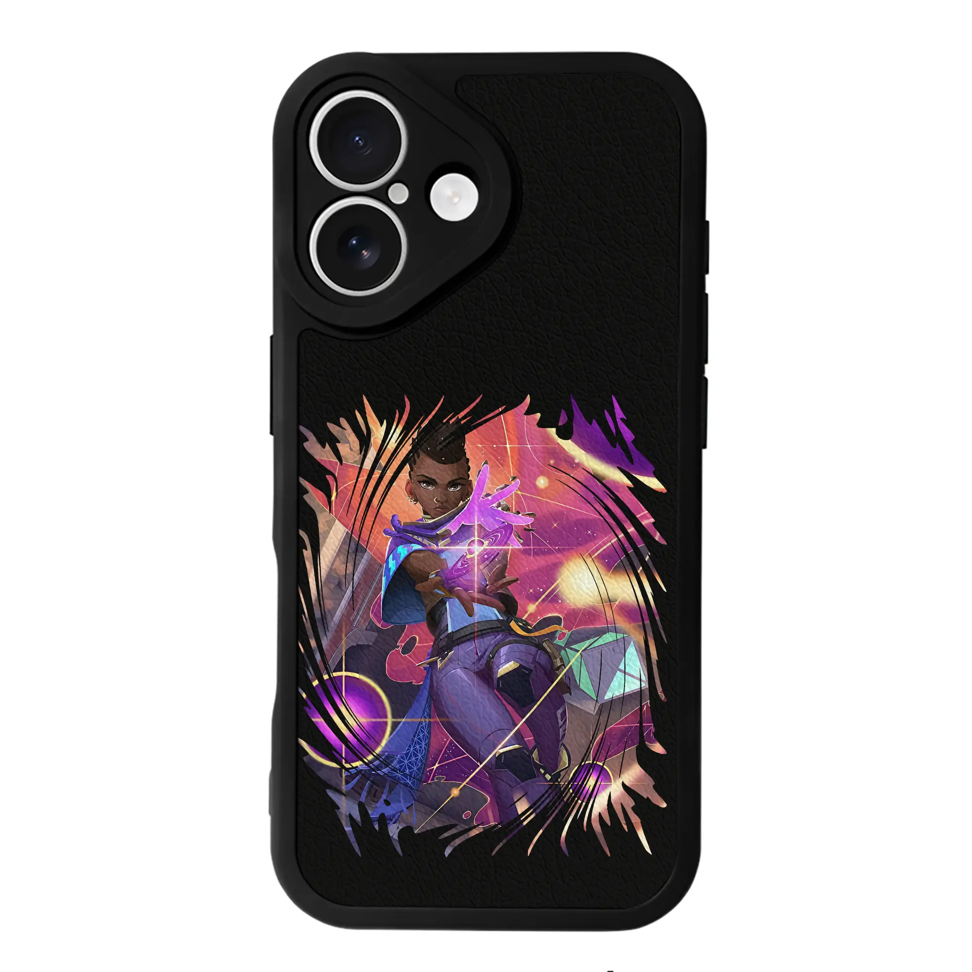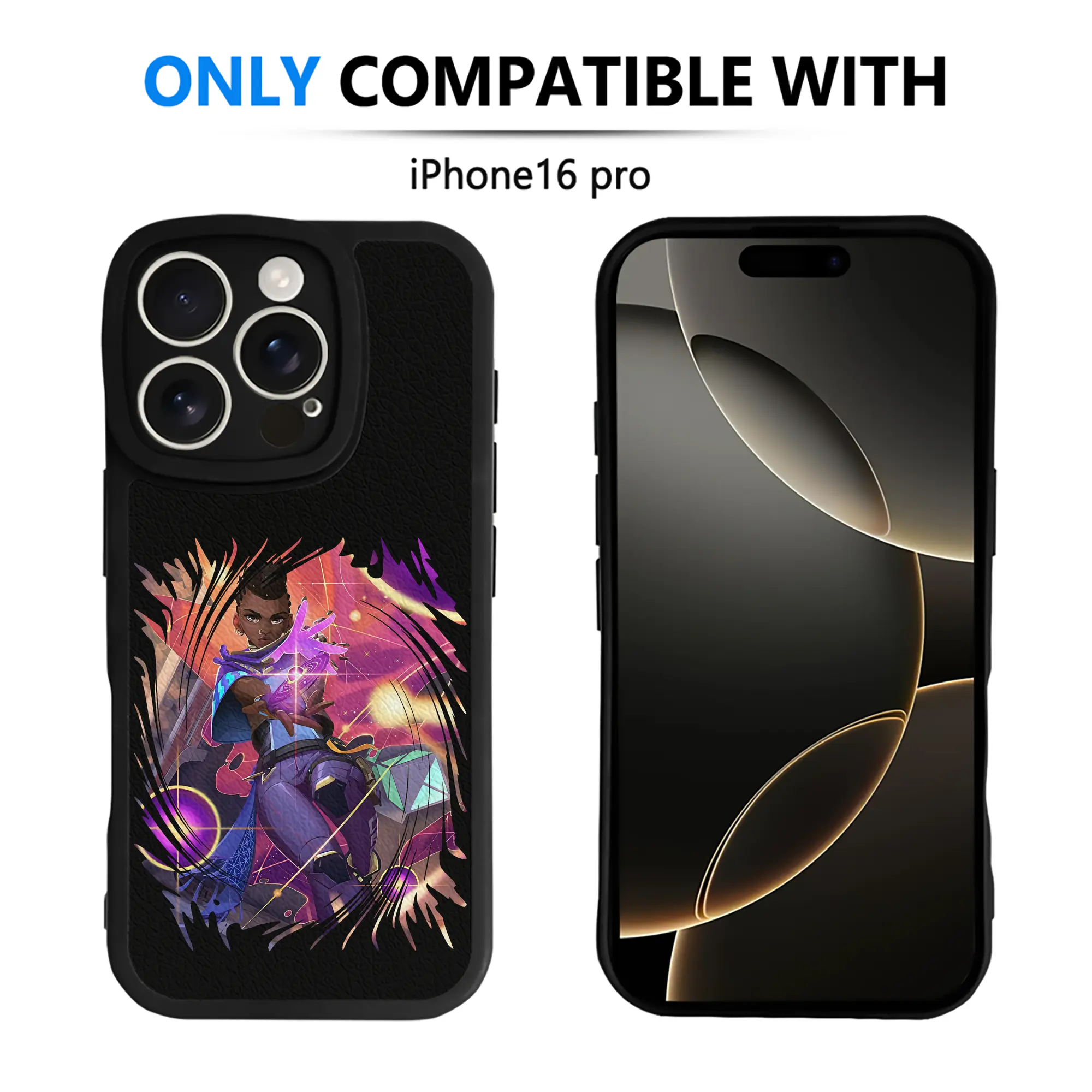 VALORANT グッズ,アストラ - IPhone 16シリーズ対応 ・ シリコンスマホケース ・ レザー調 ・ 高精度フィット ・ 耐衝撃 ・ ワイヤレス充電対応 ・ 精密カット