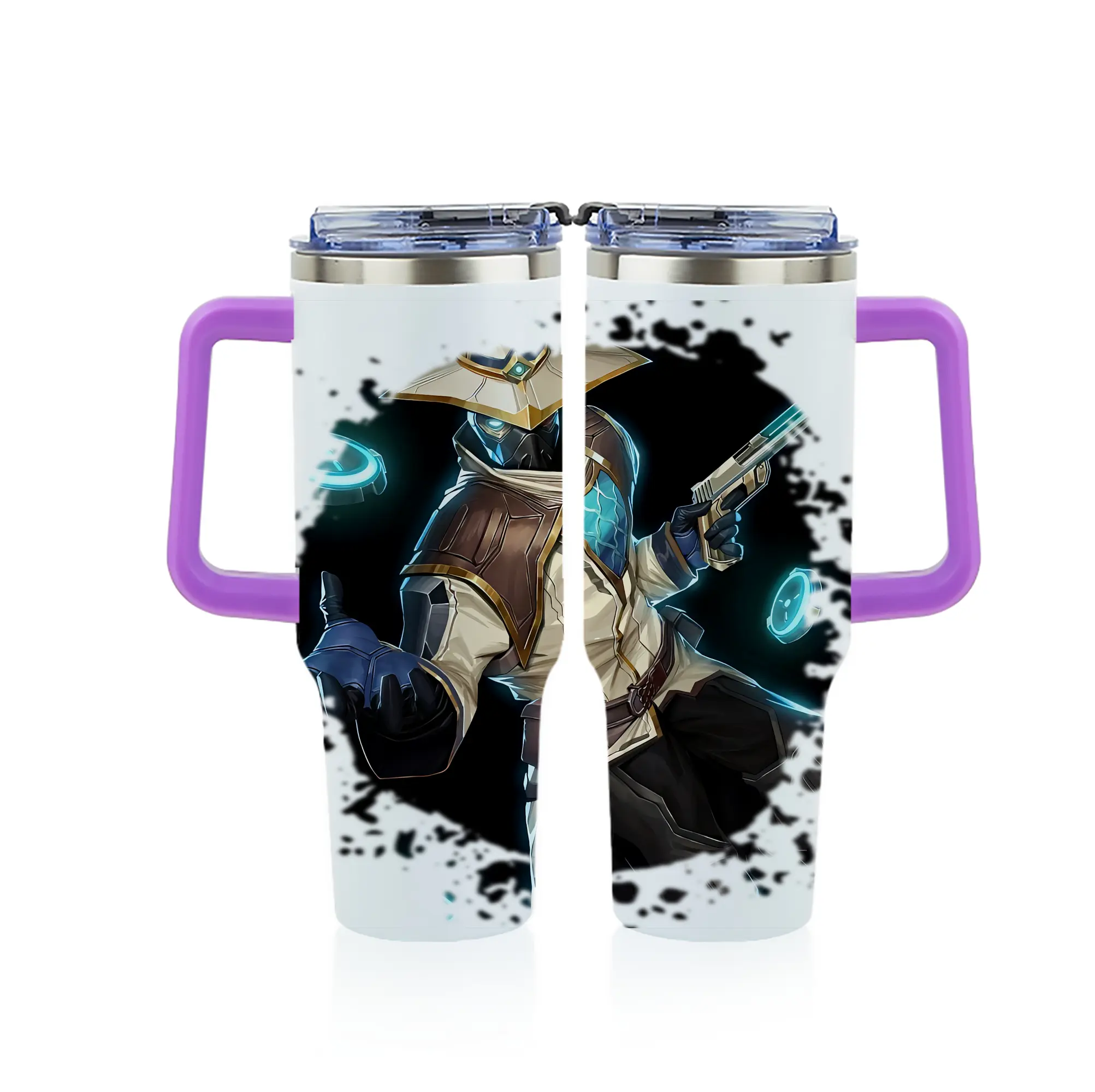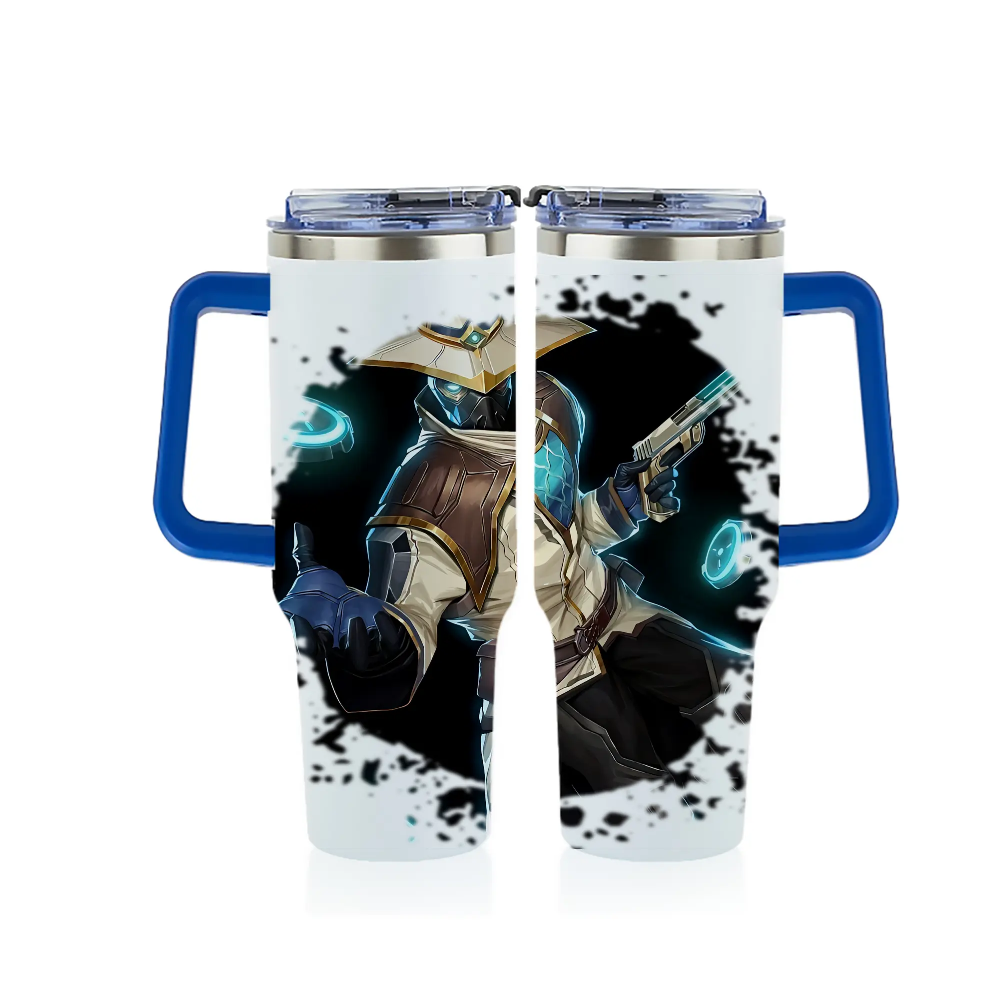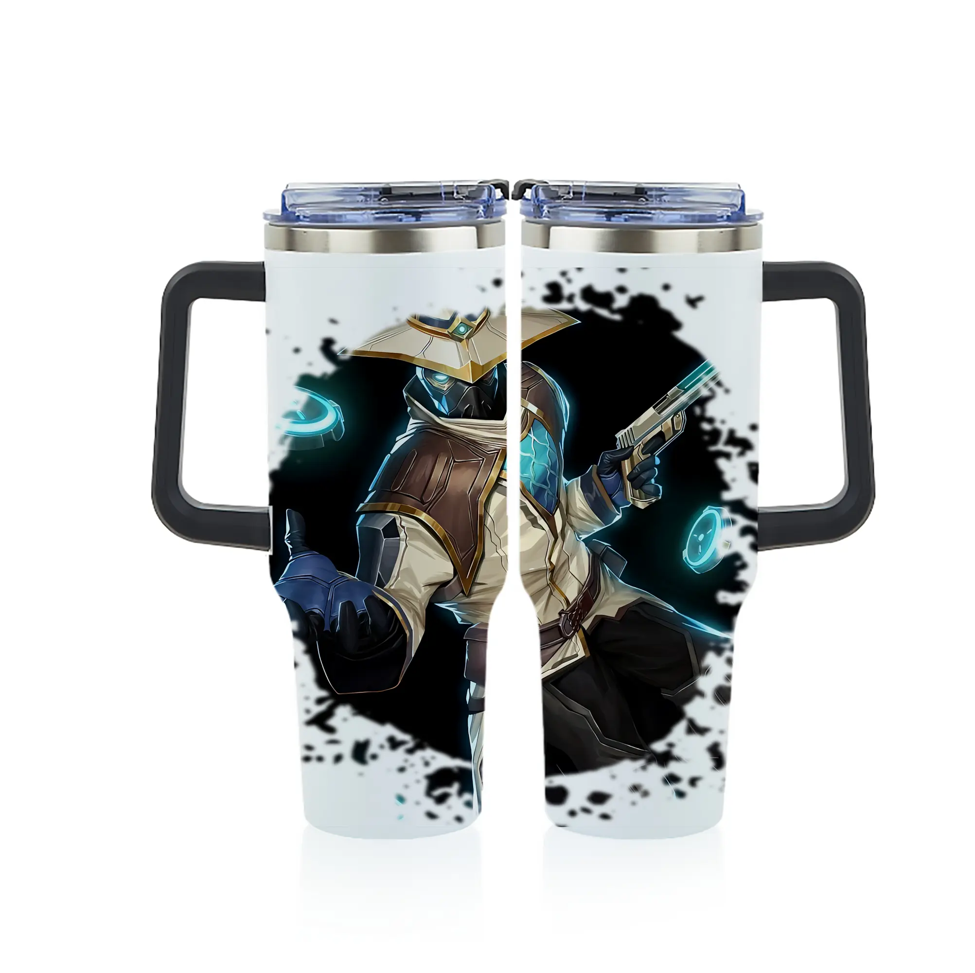 VALORANT グッズ,サイファー - 1200mL フルプリント車用タンブラー ・ 304ステンレス 内側 ・ 201ステンレス 外側 ・ 保温 保冷 ・ 通勤 ドライブ アウトドア用