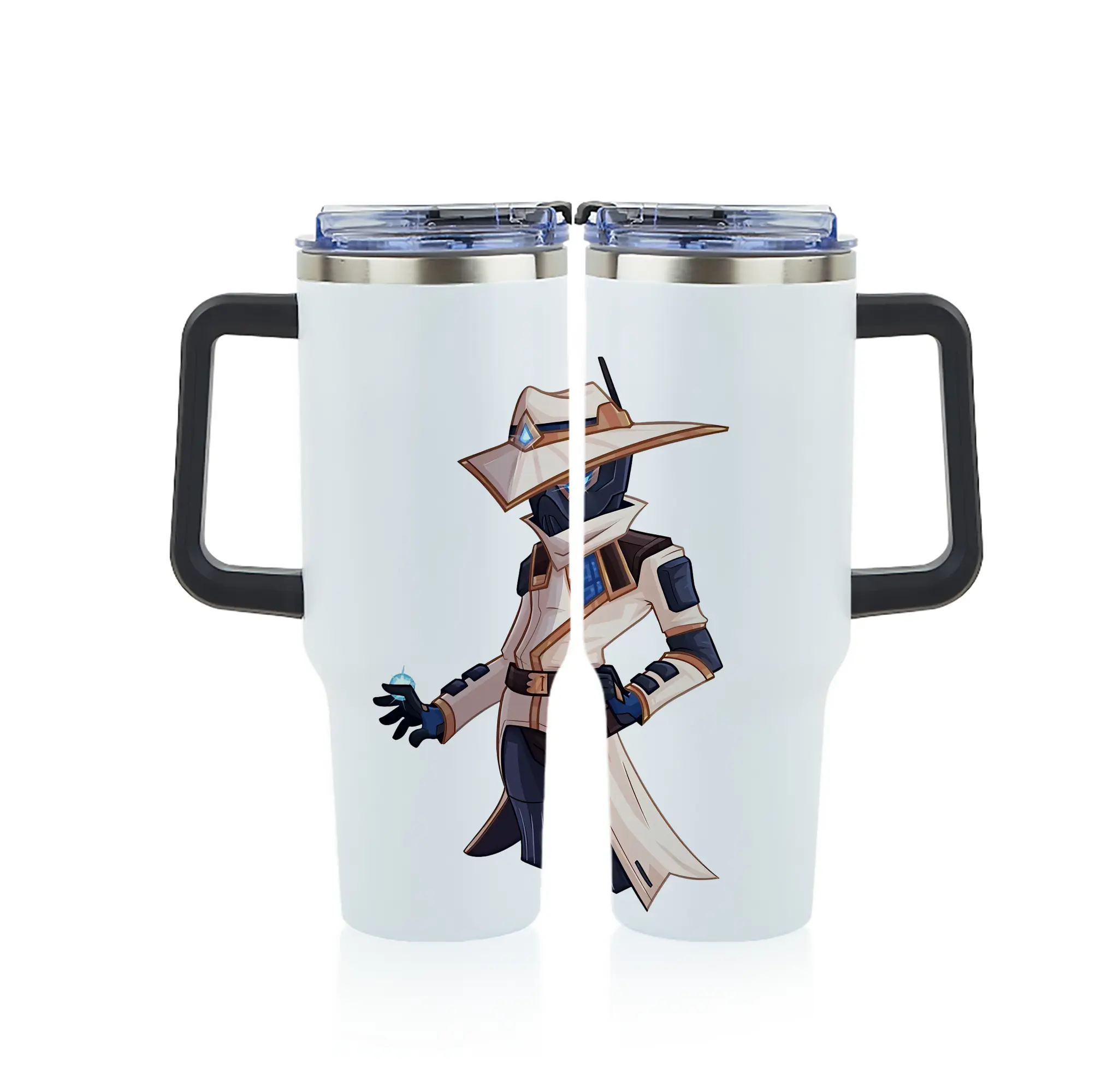 VALORANT グッズ,サイファー - 1200mL フルプリント車用タンブラー ・ 304ステンレス 内側 ・ 201ステンレス 外側 ・ 保温 保冷 ・ 通勤 ドライブ アウトドア用