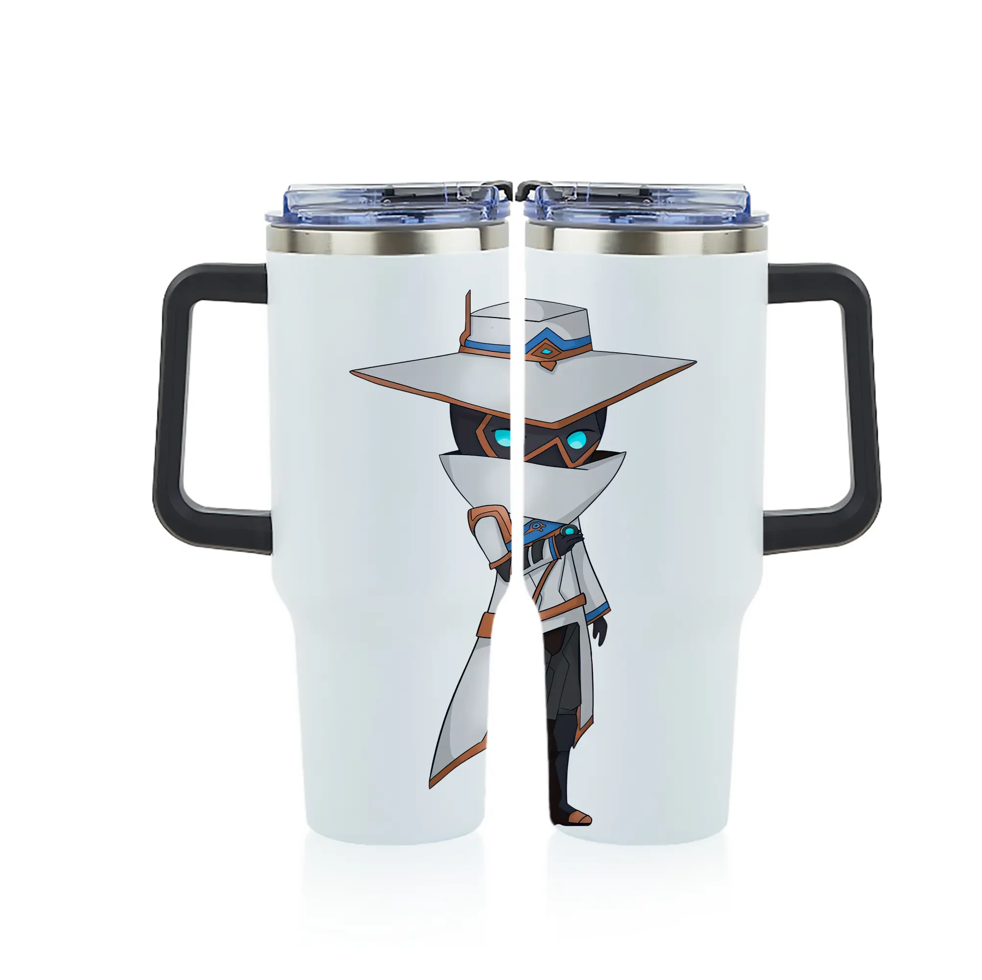 VALORANT グッズ,サイファー - 1200mL フルプリント車用タンブラー ・ 304ステンレス 内側 ・ 201ステンレス 外側 ・ 保温 保冷 ・ 通勤 ドライブ アウトドア用