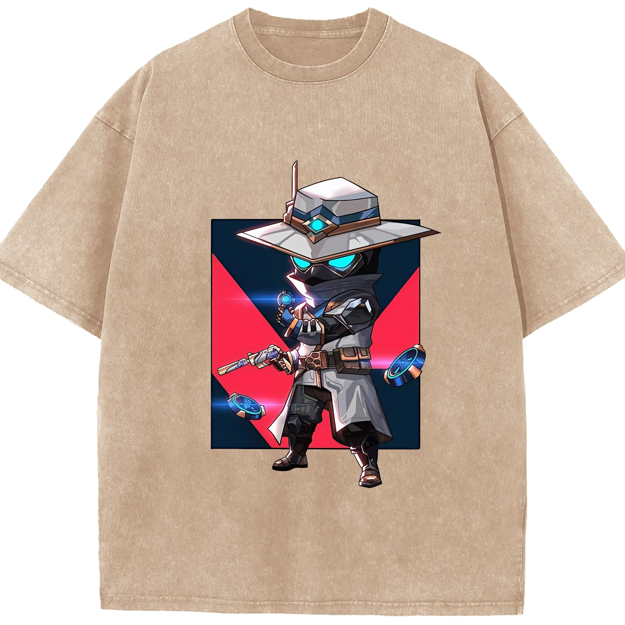 VALORANT グッズ,サイファー - 綿100% ヴィンテージ風 半袖Tシャツ ・ フロントプリント ・ 柔らか肌触り ・ 通気性 快適 ・ スポーツ カジュアル 外出用